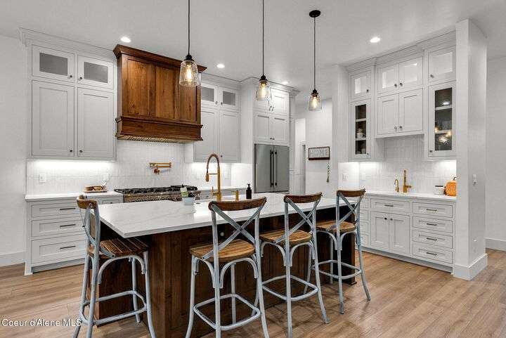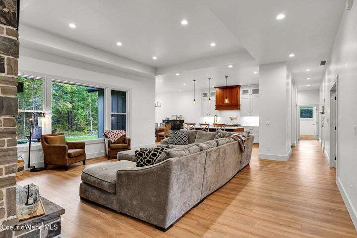 Luxurious Single Level Home on 6 acres with Shop and Bonus Room Experience refined country living in this stunning single-level home with a bonus room, set on 6 beautifully landscaped acres. The gourmet kitchen is a chefs dream, featuring dual counter-depth refrigerators, a 48-inch dual fuel range with pot filler, an expansive pantry, and reverse osmosis water treatment serving the drinking water, ice makers, pot filler and coffee bar. Enjoy high ceilings throughout, a spacious office, and a large bonus room above the heated and air-conditioned garage. The primary suite offers a spa-like retreat with a steam shower including rain, handheld, and standard head, a deep soaking tub, and separate his and her closets. The property also includes 36x48 finished shop with 14ft doors, gas heat, and a full bathroom with washer and dryer hook ups, perfect for hobbies or extra storage. The grounds are fully landscaped with irrigation and curbing. See More A 24k w backup generator and 1000 gallon buried propane tank ensure year-round comfort. Road is paved and county maintained. Paved driveway and parking. Luxury, Functionality, and meticulous attention to detail make this property truly one of a kind.