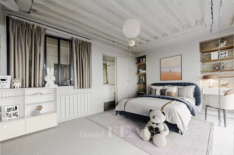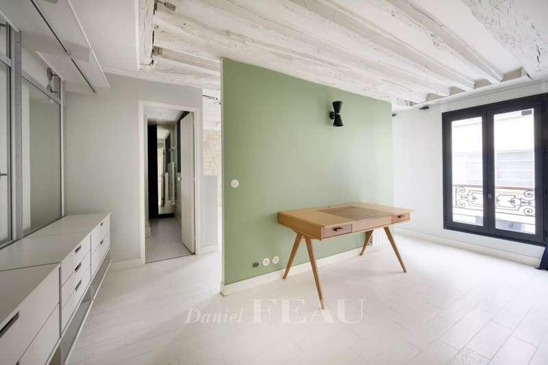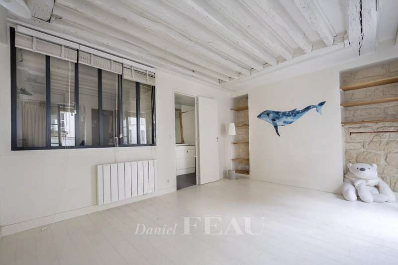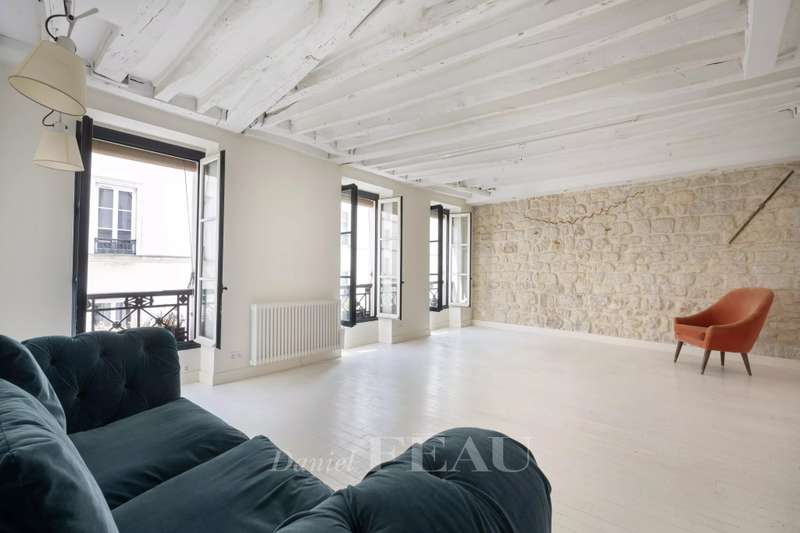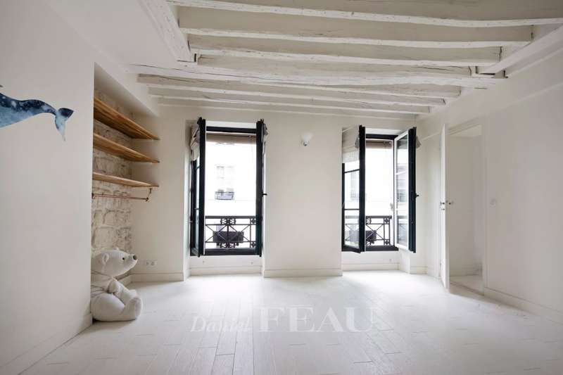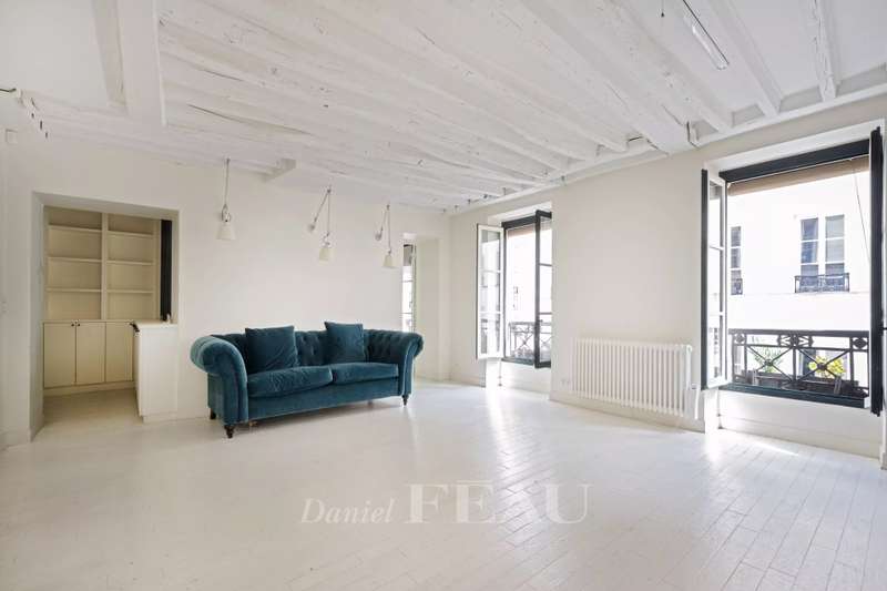 In the Haut Marais district, near the Carreau du Temple, on the third floor of an 18th-century building with an elevator, a 105.05 sq m (Carrez Law) south-facing apartment. It comprises an entrance hall, a spacious living room with three large windows, two bedrooms (one with a study area), a separate kitchen, a bathroom, a shower room, and a dressing room. Located in one of the most desirable areas of the Marais, the apartment enjoys a quiet and sought-after setting, just steps from the Rue de Bretagne with its gourmet shops, markets, and restaurants.