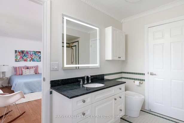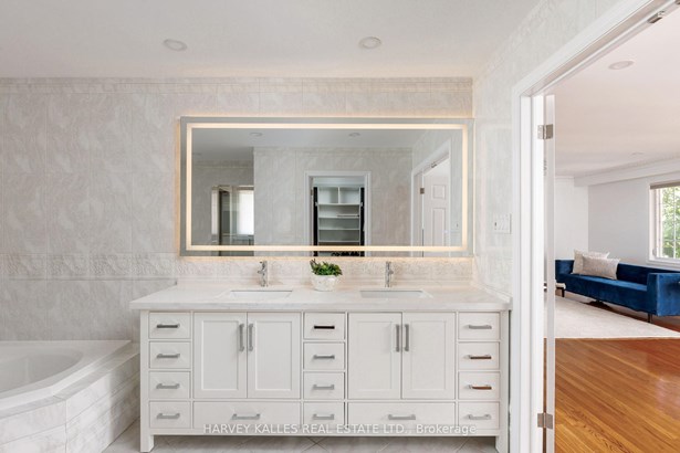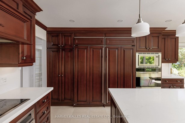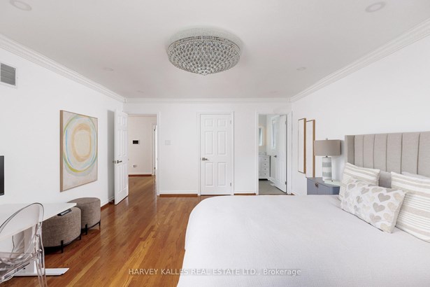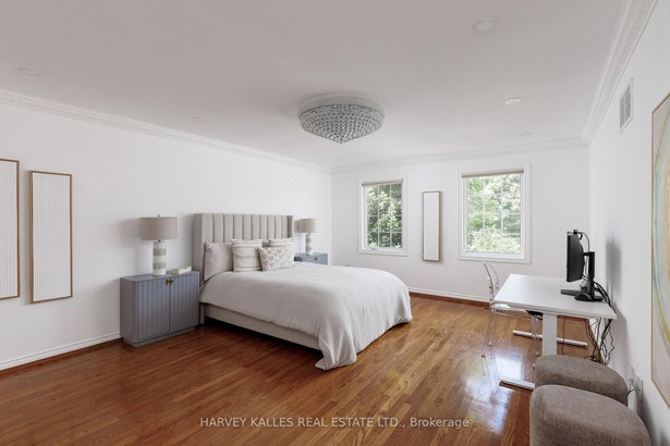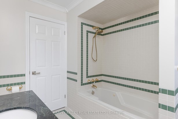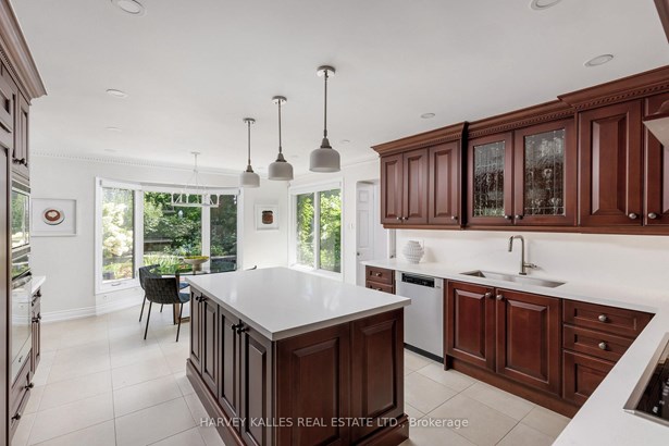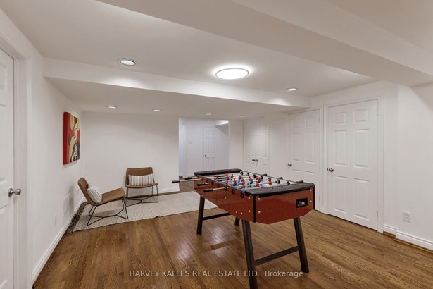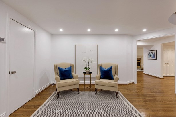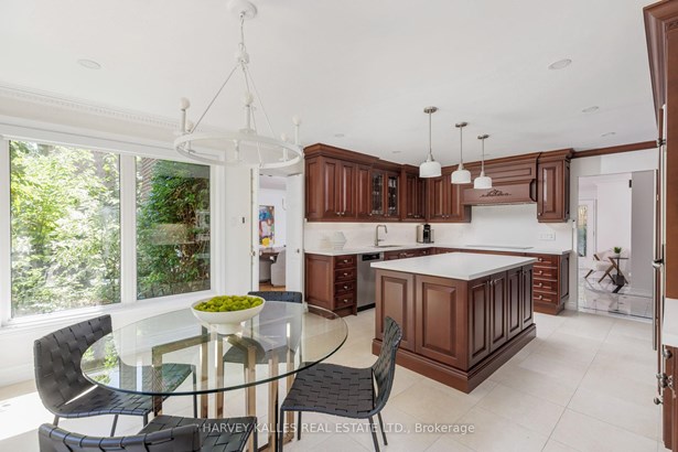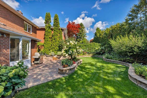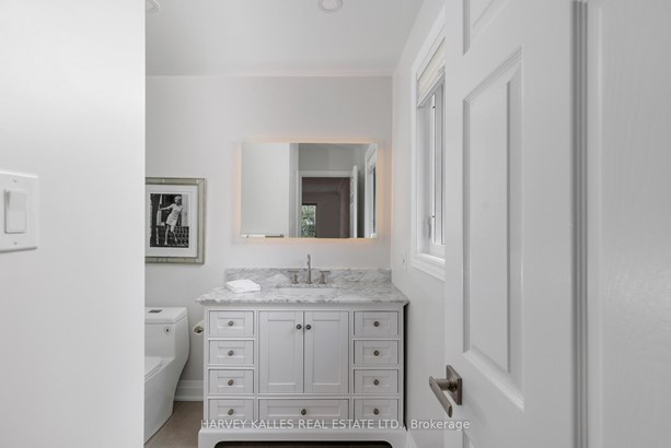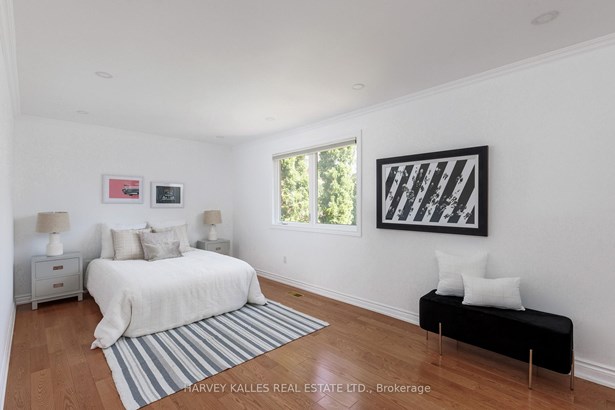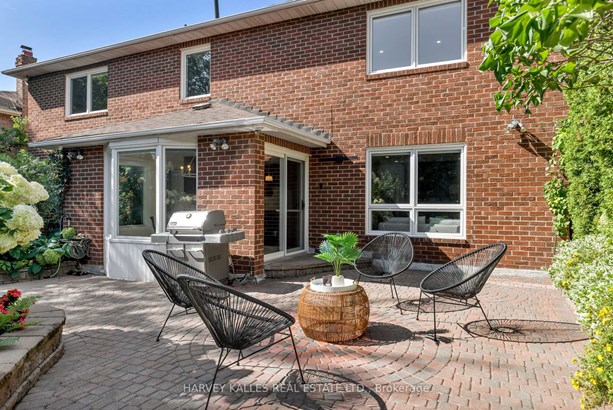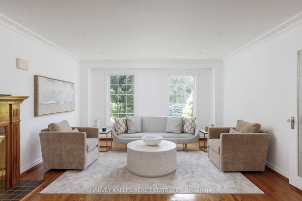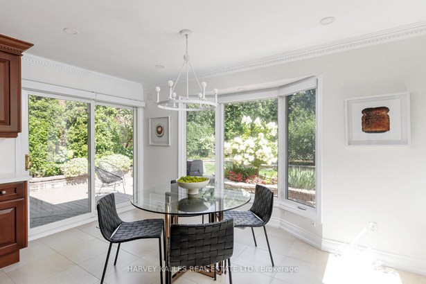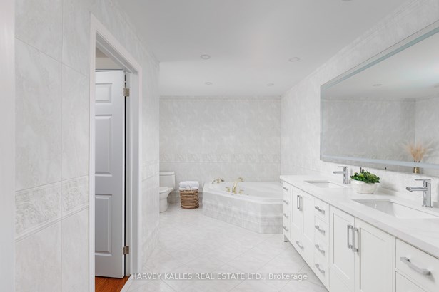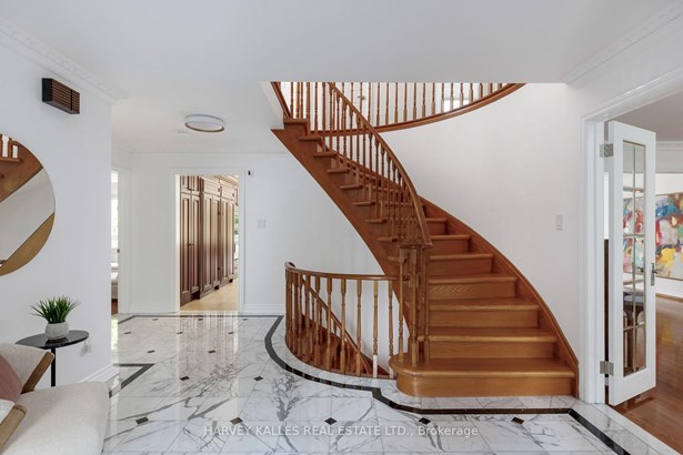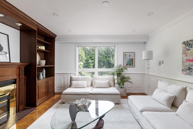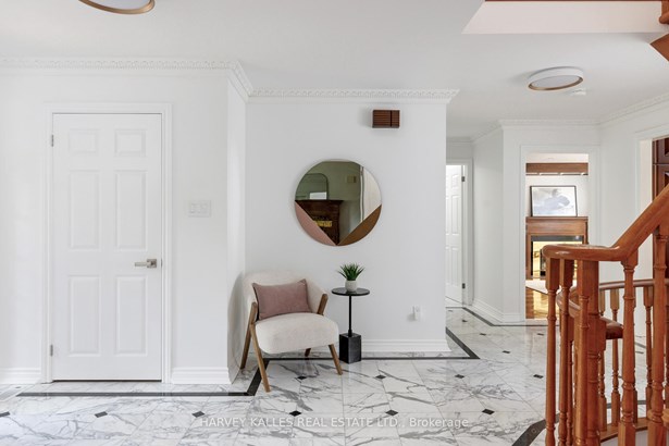 Welcome to 16 Robaldon Road, a luxurious, fully renovated Georgian home with 5,300 sq ft of living space. Nestled beside St. Georges Golf Club, this elegant 2-storey home blends timeless architecture with modern comfort. From the Parisian-inspired courtyard and landscaped lush private gardens to the sunlit Calacatta marble foyer with sweeping spiral staircase, every detail exudes elegance. The main floor features well-designed, spacious rooms with crown molding, new modern light fixtures, pot lights, hardwood floors. The chefs kitchen by Cameo has quartz countertops, premium built in appliances (Wolf, Miele..), built-in conveniences, and bright eat-in area with gorgeous garden views. The open dining and living room with a walnut fireplace, are perfect for family celebrations, entertaining and hosting guests. The cozy family room with walnut fireplace creates a warm atmosphere for the family to relax and connect. The main floor laundry adds convenience. The new smart home automation system controls lighting, climate, security, and entertainment for ultimate comfort and 24x7 security. Upstairs are four bright, spacious bedrooms. An attribute that sets this house apart is that each bedroom offers direct access to a private, fully updated bathroom. The ultra spacious primary suite has a cozy sitting area and spa-inspired 6-piece ensuite with rain and steam shower, soaker tub, large dual-sink vanity and custom walk-in closet. A second spacious bedroom, rivals the size of the primary bedroom in many homes and has a modern ensuite that includes a digital shower. The lower level includes a cozy rec room, gym, games room, guest suite, professional wine cellar, cedar closet, large storage area and workshop for the DIY enthusiast. Just steps to parks, biking/walking trails, top schools, transit and 10 min drive to airport. This luxurious home is designed for comfort and joyful livingperfect for everyday family life and entertaining alike.
