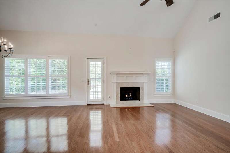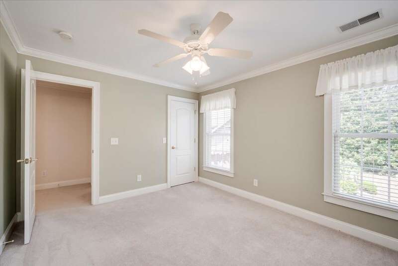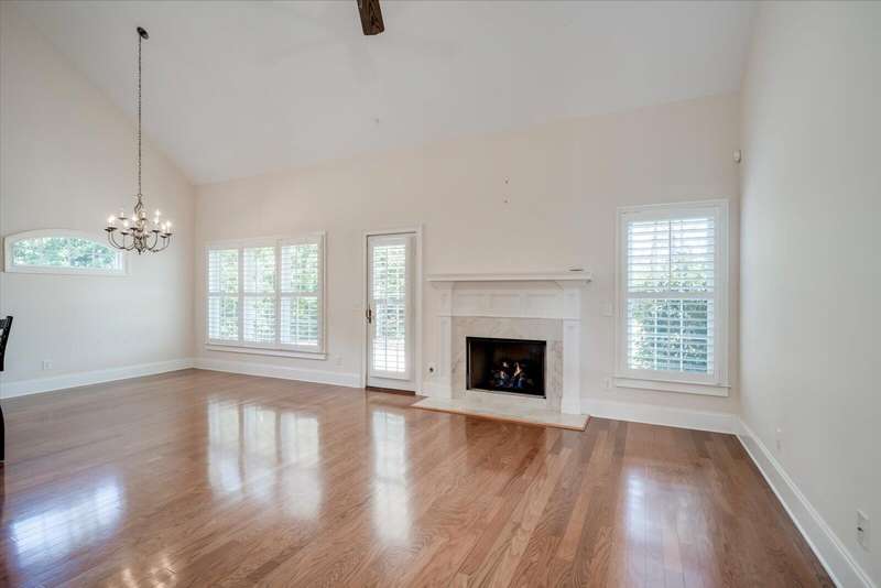 Pristine brick 3-bedroom end unit townhome, surrounded by beautiful landscaping in Houndslake Village. Foyer opens to stylish study/den. Living room with vaulted ceiling and fireplace opens to a sunny patio overlooking a large back yard. Kitchen features pantry, custom cabinetry, granite countertops, writing desk with window and sunny dining area. Main level primary suite opens to private bath with dual sinks, bathtub and shower, with walk-in closet. First floor laundry room is complete with washer and dryer. Plantation shutters in living room, dining room and primary bedroom. Upper level offers two bedrooms, full bath and large other room. Double car garage is attached. Community is bordered by attractive brick border wall for added privacy. Great location with easy walking to shops, grocery store, post office and more, and minutes from downtown Aiken.