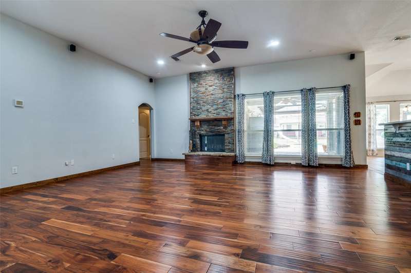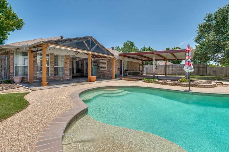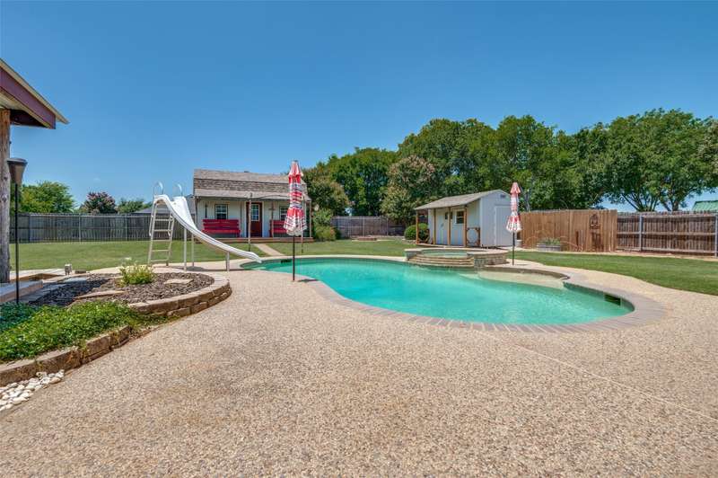 Experience comfort and style in this exceptional home featuring rich wood flooring, a dedicated office with custom built-ins, and an eye-catching fireplace. The open-concept kitchen is ideal for hosting, offering a generous island and a sunlit breakfast nook surrounded by windows. Step outside to your own private retreat with a sparkling pool, relaxing hot tub, spacious covered patio, and a wood deck perfect for entertaining. This home is a rare find and ready to impress.