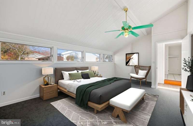 Newly refinished hardwood floors, new carpet and fresh paint throughout! This updated mid-century modern in Holly Hill Manor features open-concept living with nearly 2,000 SF. There are 5 bedrooms , 2 full bathrooms and 1 powder room. The perfect blend of style and function in an expansive and practical floor plan. The ceilings are vaulted and boast exposed wood beams. Large picture windows allow plenty of natural light. The roof is 6 years young and the garage is new. There are 3 bedrooms on the upper level and two more bedrooms on the fully finished lower level. The lower level also has a fireplace and a kitchenette - ideal for guests, a home office, or multigenerational living. Outside, a large backyard with a patio and mature landscaping offers space for entertaining or relaxing. Conveniently located near shops, parks, and transit, this move-in ready home offers flexible living and thoughtful updates throughout.