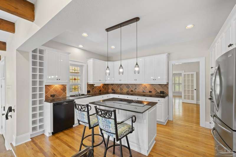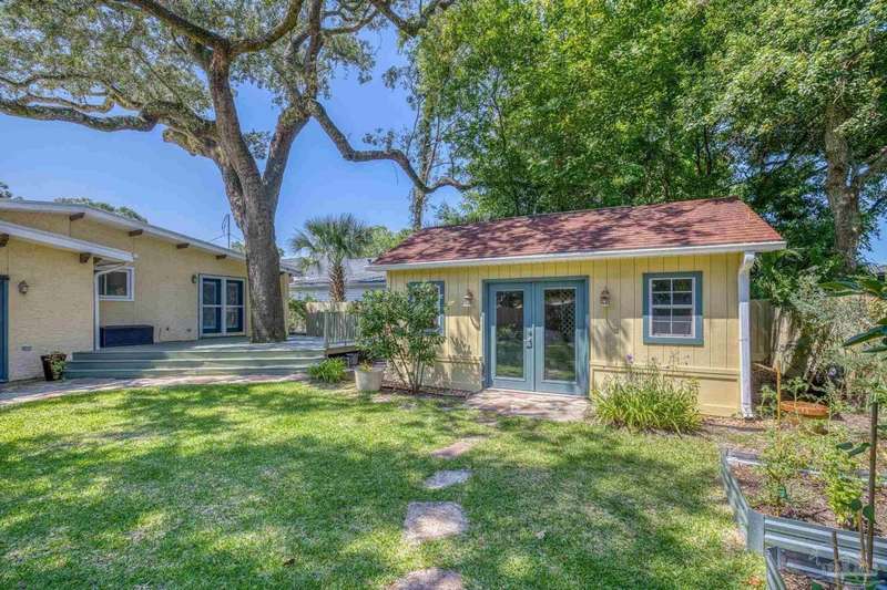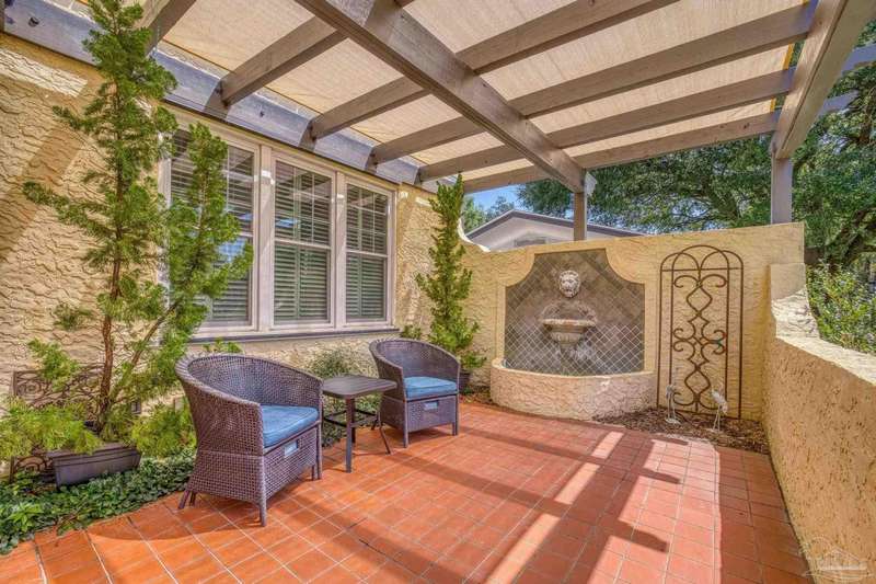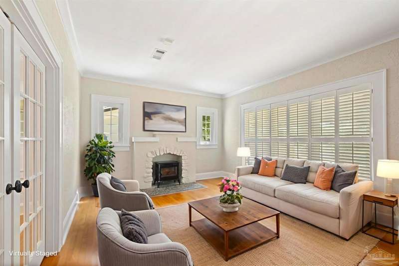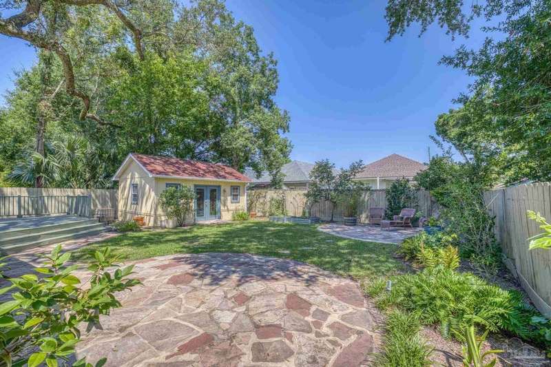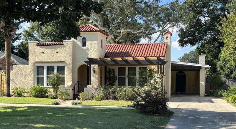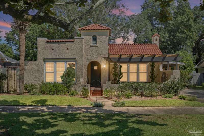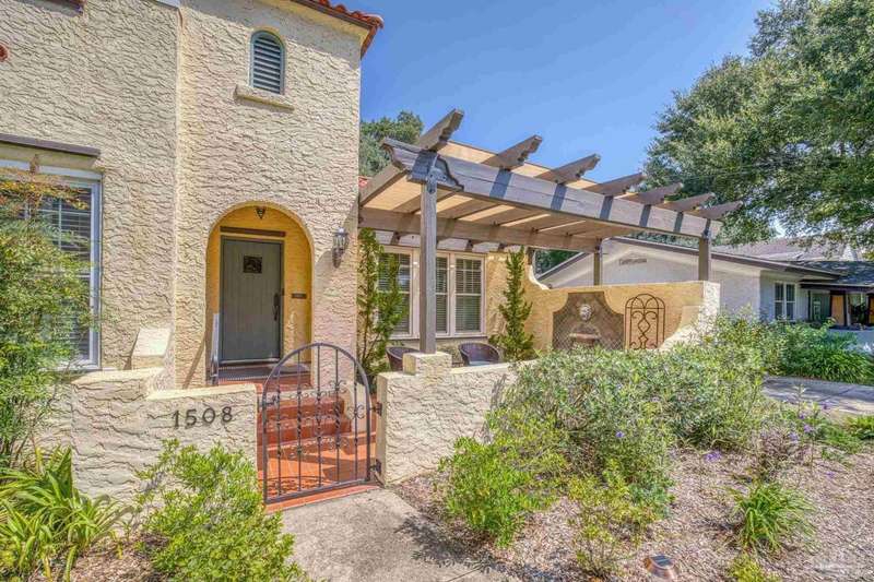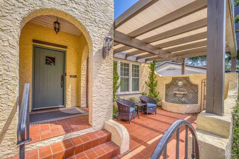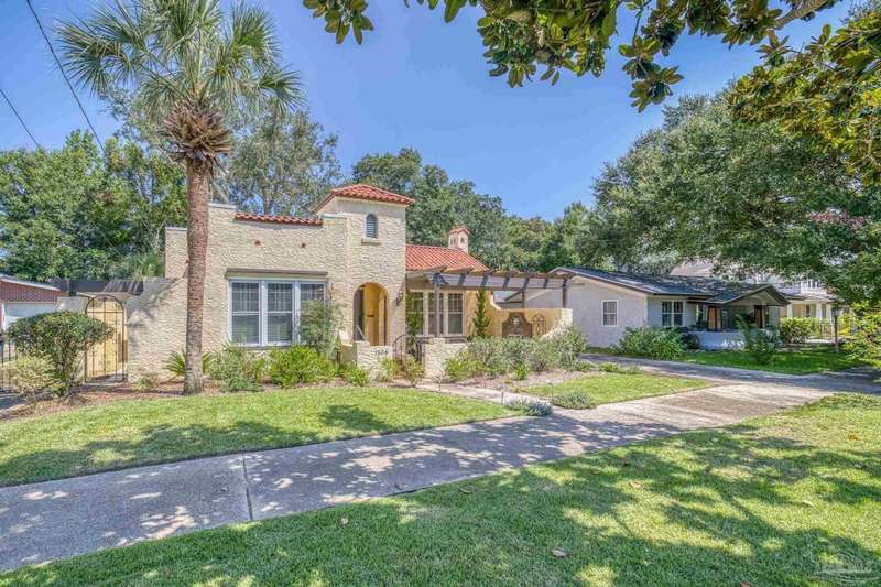 Quintessential Spanish Style Home in the Heart of East Hill, one of Pensacola's most sought after neighborhoods. Step into timeless elegance with this beautifully restored home. Blending historic character with modern updates, this residence offers the best of both worlds.The home showcases signature Mediterranean details including arched doorways, stucco exterior, and a tiled roofline. Inside, you'll find a thoughtfully renovated interior with refinished hardwood floors, updated electrical and plumbing, and designer finishes throughout. The spacious living room centers around a cozy fireplace, and leads to a large dining room perfect for entertaining. The open kitchen boasts custom cabinetry, solid surface countertops, and high-end stainless appliances, and overlooks an Oversized Family Room, with a 2nd fireplace and a wall of doors leading to the outside. The primary suite offers a private retreat with a spa-like bath, complete with a walk-in shower and double vanities. Additional bedrooms provide flexible space for family, guests, or a home office. Outdoors, enjoy a private courtyard perfect for dining al fresco, plus lush landscaping that complements the home's Spanish charm. Practice your hobbies, in a 280 Sq Ft detached building that could be the perfect artist's studio. Located in desirable East Hill, you'll love the walkability to parks, shops, and dining, as well as quick access to Downtown Pensacola and the beaches. Some of the Highlights include: Fully renovated interior with preserved historic charm, Updated systems for peace of mind, 2022 Roof, 2- 2024 HVAC systems with UV Air cleaners, 2024 Water Heater, Reverse Osmosis filler in kitchen, 2016 windows, and a whole house generator. Renovated kitchen with premium finishes, Private courtyard and landscaped yard, All in a Sought-after East Hill location. This rare Spanish Style gem is move-in ready and waiting for its next chapter.