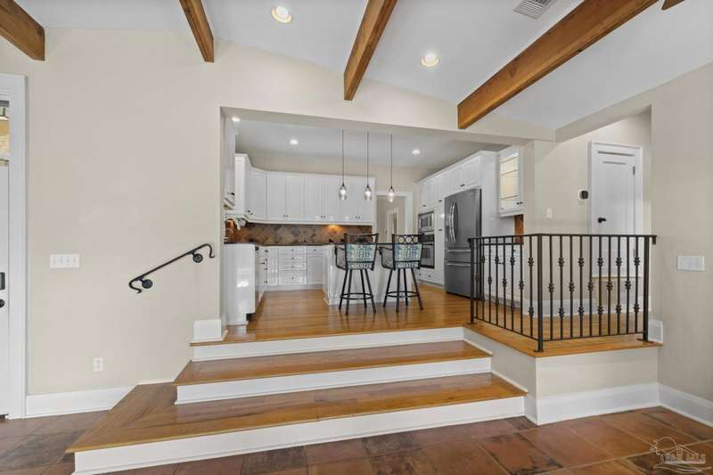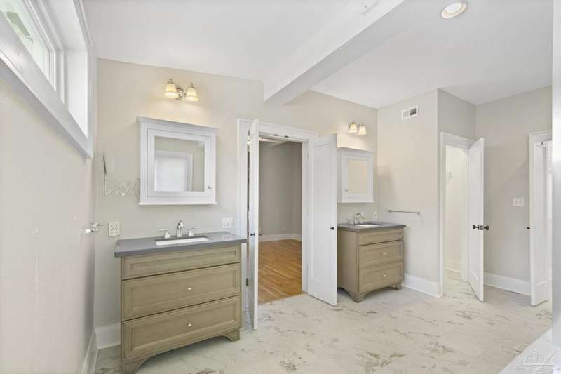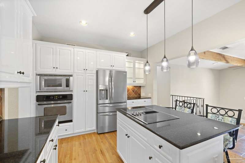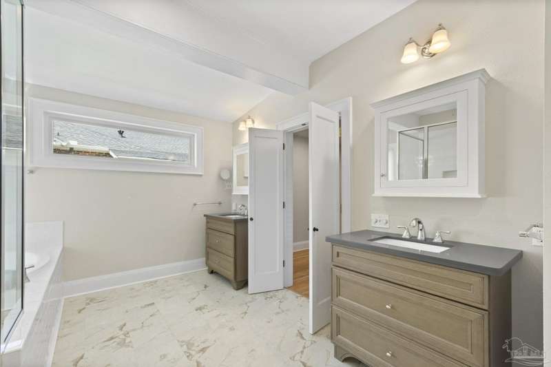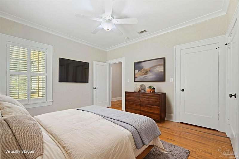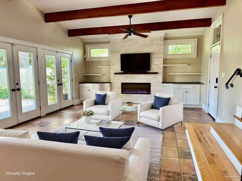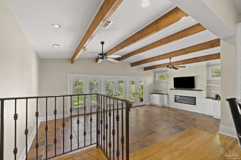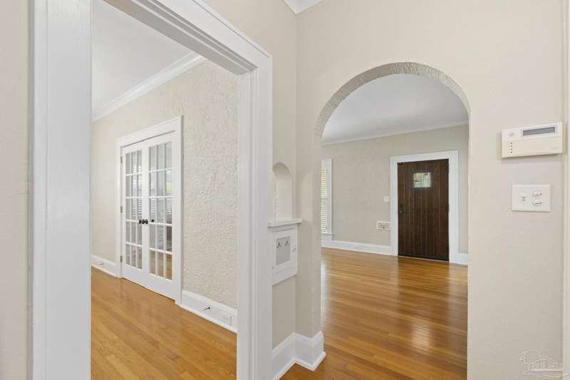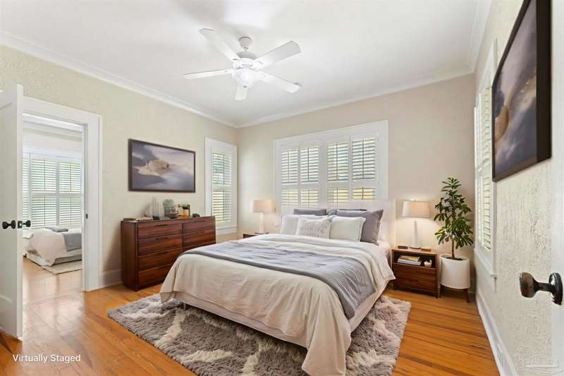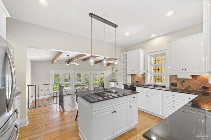 Quintessential Spanish Style Home in the Heart of East Hill, one of Pensacola's most sought after neighborhoods. Step into timeless elegance with this beautifully restored home. Blending historic character with modern updates, this residence offers the best of both worlds.The home showcases signature Mediterranean details including arched doorways, stucco exterior, and a tiled roofline. Inside, you'll find a thoughtfully renovated interior with refinished hardwood floors, updated electrical and plumbing, and designer finishes throughout. The spacious living room centers around a cozy fireplace, and leads to a large dining room perfect for entertaining. The open kitchen boasts custom cabinetry, solid surface countertops, and high-end stainless appliances, and overlooks an Oversized Family Room, with a 2nd fireplace and a wall of doors leading to the outside. The primary suite offers a private retreat with a spa-like bath, complete with a walk-in shower and double vanities. Additional bedrooms provide flexible space for family, guests, or a home office. Outdoors, enjoy a private courtyard perfect for dining al fresco, plus lush landscaping that complements the home's Spanish charm. Practice your hobbies, in a 280 Sq Ft detached building that could be the perfect artist's studio. Located in desirable East Hill, you'll love the walkability to parks, shops, and dining, as well as quick access to Downtown Pensacola and the beaches. Some of the Highlights include: Fully renovated interior with preserved historic charm, Updated systems for peace of mind, 2022 Roof, 2- 2024 HVAC systems with UV Air cleaners, 2024 Water Heater, Reverse Osmosis filler in kitchen, 2016 windows, and a whole house generator. Renovated kitchen with premium finishes, Private courtyard and landscaped yard, All in a Sought-after East Hill location. This rare Spanish Style gem is move-in ready and waiting for its next chapter.