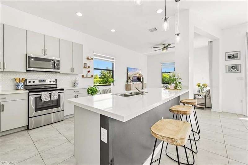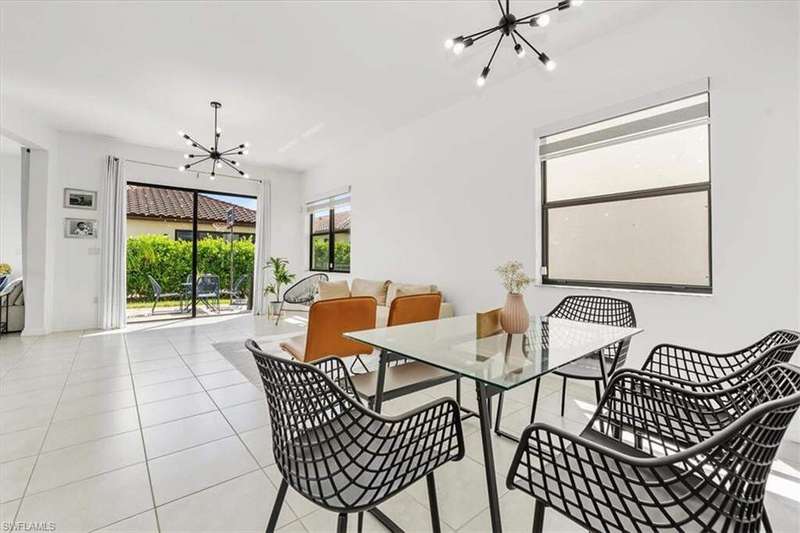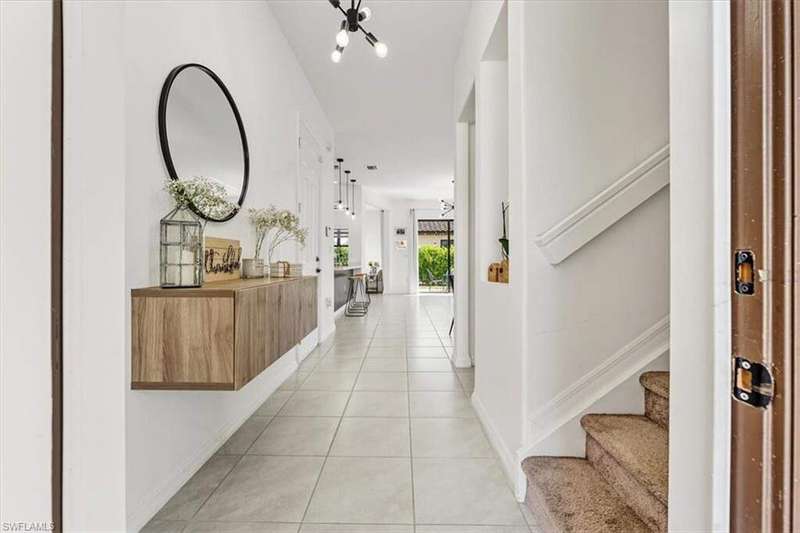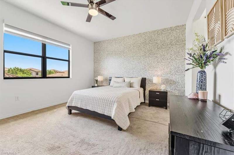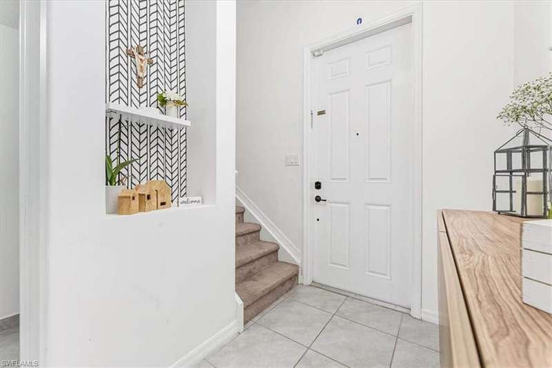 Step into this spectacular oversized corner lot home located in Coquina at Maple Ridge. This beautifully upgraded Balboa Model offers two stories of comfortable, modern living with 3 bedrooms, 2.5 bathrooms, and a 1-car garage. Inside, you'll find soaring 10-foot ceilings on the first floor and 9.4-foot ceilings on the second floor, creating an open and spacious atmosphere. The home features elegant 12x12 Dal-Tile flooring in the main living areas, 8-foot interior doors, a Mediterranean-style roof, a keyless garage entry, and an open-concept great room filled with natural light. The kitchen is designed with style and functionality in mind, offering sleek 42-inch upgraded cabinetry, quartz countertops throughout, stainless steel appliances, recessed lighting, and contemporary light fixtures. The expansive owner's suite includes dual sinks, a seamless glass shower, a walk-in closet, and an additional closet for added convenience. Enjoy stunning side lake views from your private corner lot, offering a sense of space and serenity. Located in Flood Zone X, this home requires no flood insurance, providing peace of mind. Living in Maple Ridge at Ave Maria gives you access to a wealth of amenities, including a vibrant clubhouse, entertainment spaces, walking and jogging trails, tennis, pickleball and bocce courts, a dog park, water park, soccer field, multiple playgrounds, a fitness center, and more. Don't miss the opportunity to make this upgraded and move-in-ready home yours-schedule your private showing today.
