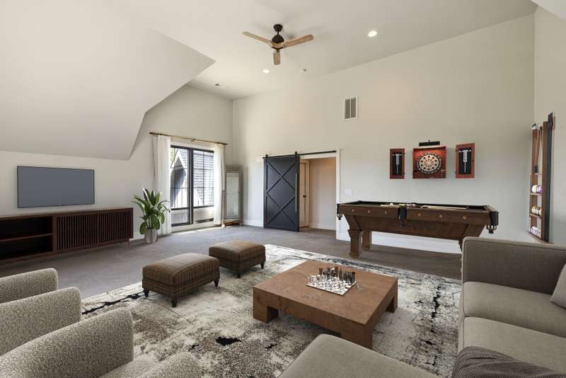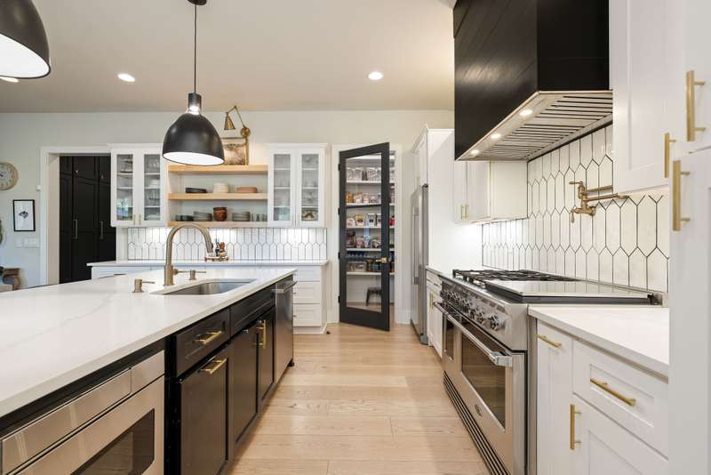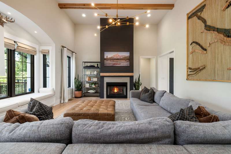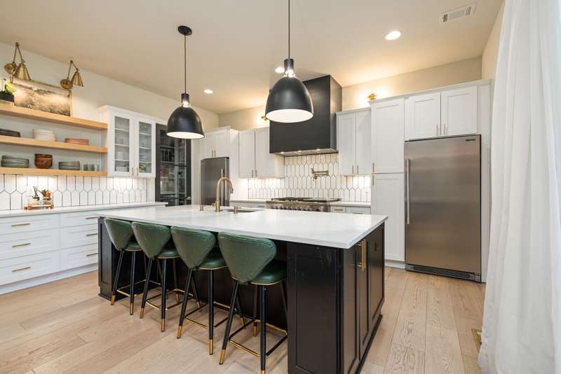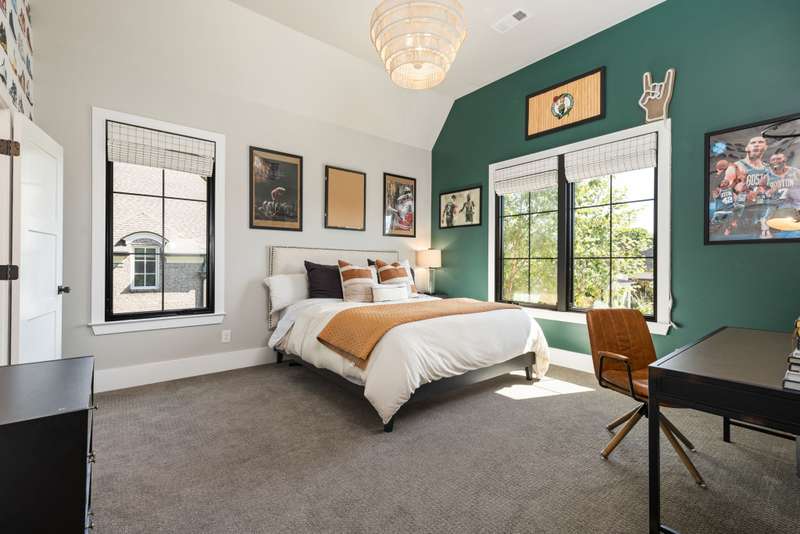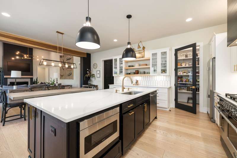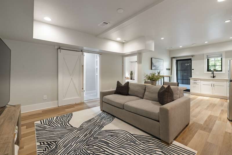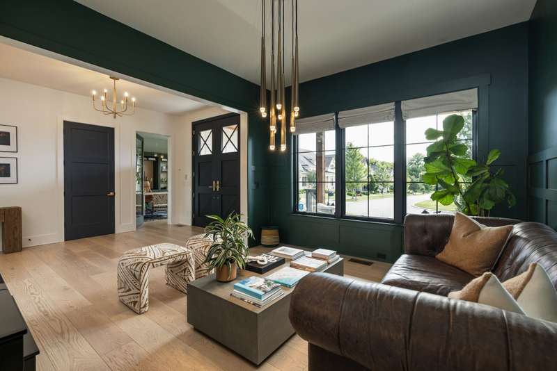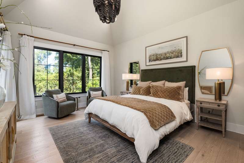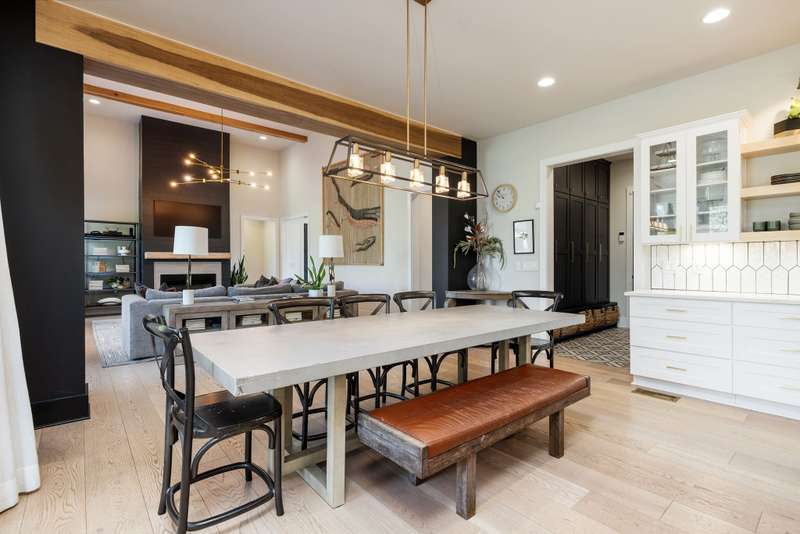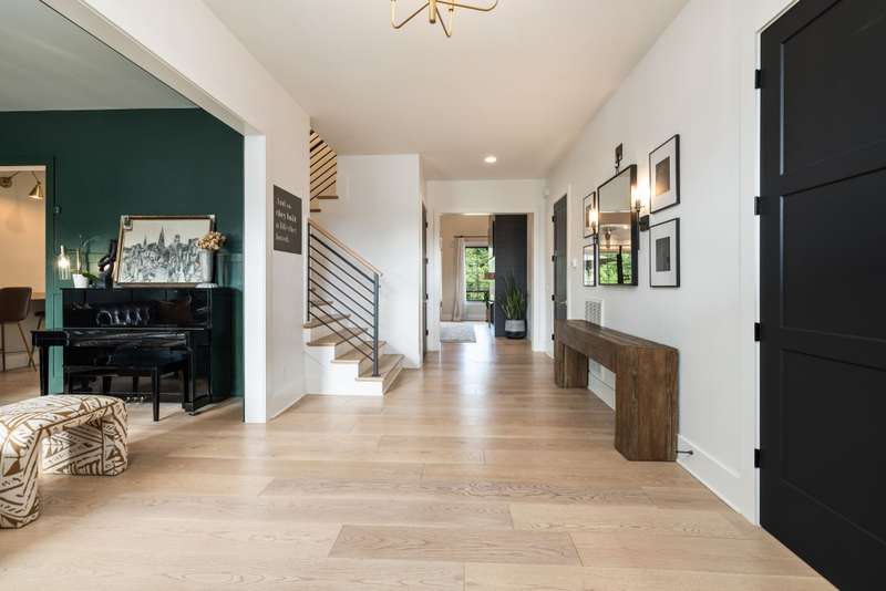 This striking Thompson's Station home blends modern elegance with warm natural accents, featuring a sleek exterior of white, black, brick, and wood finishes. Step inside to a thoughtful floor plan beginning with a moody formal living room--anchored by wainscoting and a statement light fixture--that could also serve as a formal dining space. Across the foyer, a designated office offers custom built-in shelving and cabinetry. The two-story living room impresses with wood-beamed ceilings, a shiplap and tile gas fireplace, and a cozy bay window overlooking the tranquil backyard--the perfect nook for morning coffee, a good book, or evening wine. The kitchen combines function and style with an oversized island, glass-paned cabinetry, open shelving, custom vent hood, top-of-the-line appliances, and a walk-in pantry. A spacious laundry and drop zone with custom cabinetry keeps daily life organized just off the three-car garage, which includes a versatile bay with room for an RV, trailer, or even a partial basketball court. The light-filled main-level primary suite offers a peaceful retreat with a walk-in closet, double vanities, soaking tub, and a floor-to-ceiling tiled shower. Upstairs, enjoy a media room and rec room, while the walk-out basement provides additional living space with a private apartment featuring a full kitchen, bedroom, and bath--ideal for guests. A spiral staircase connects the vaulted, screened-in deck with fireplace to the covered patio below, creating seamless indoor-outdoor living. Additional highlights include abundant unfinished storage space and a serene backyard backing to mature trees and open pasture. Located in the heart of Thompson's Station, this home is minutes from Williamson County schools, scenic parks, walking trails, and the local farmers market, with historic downtown Franklin's shopping and dining just a short drive away.