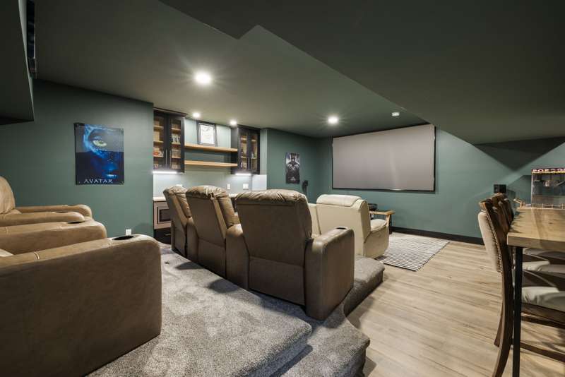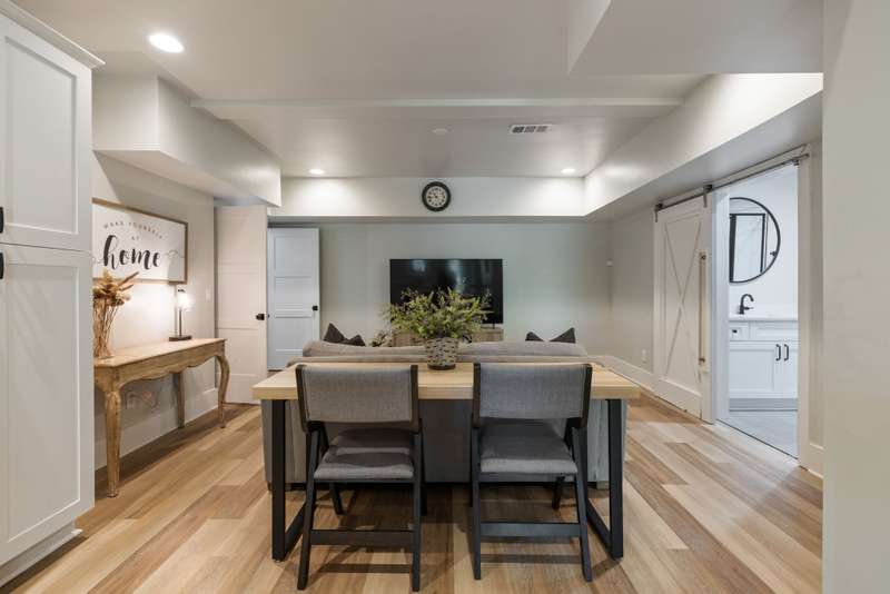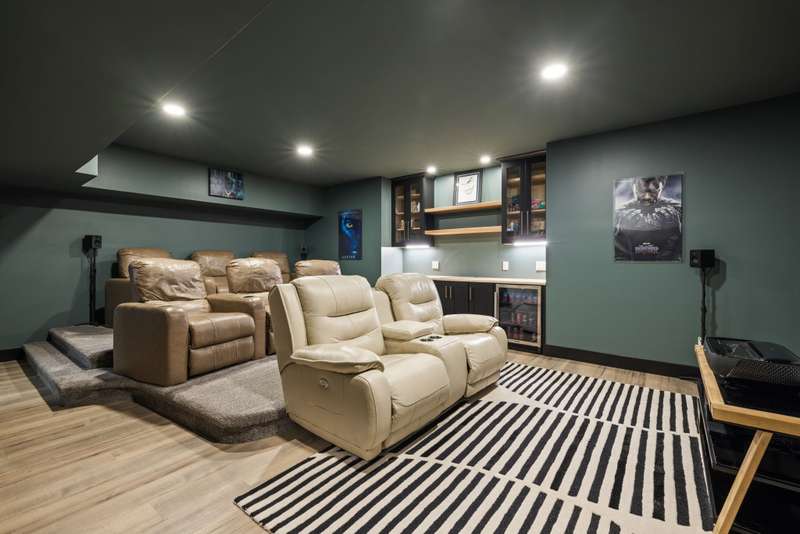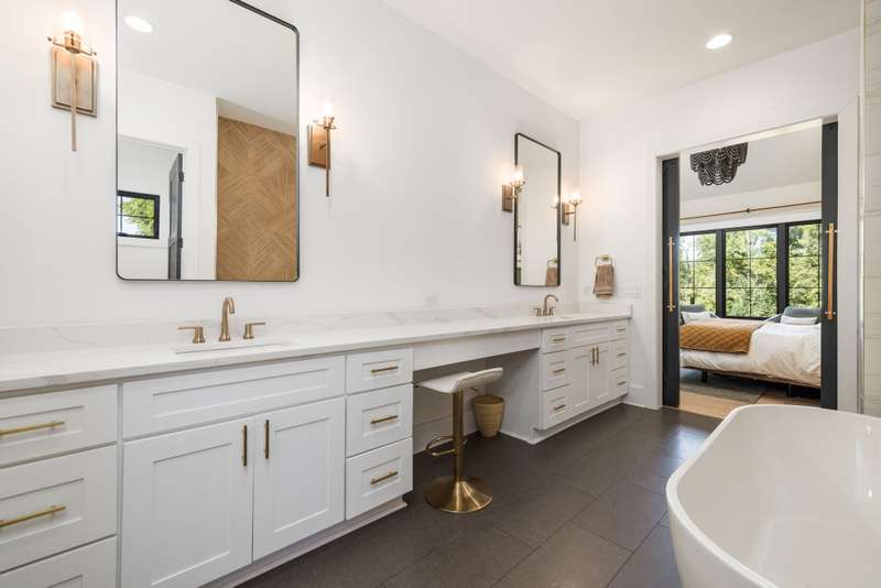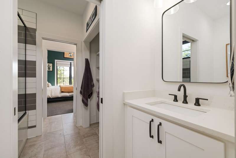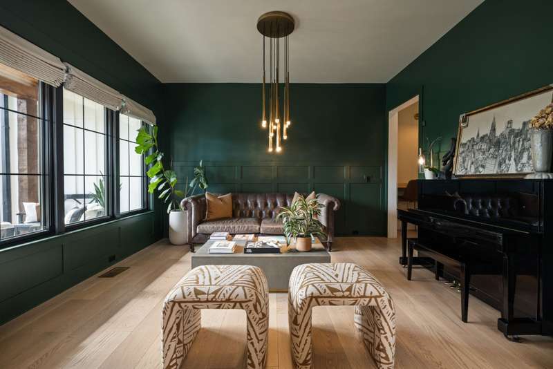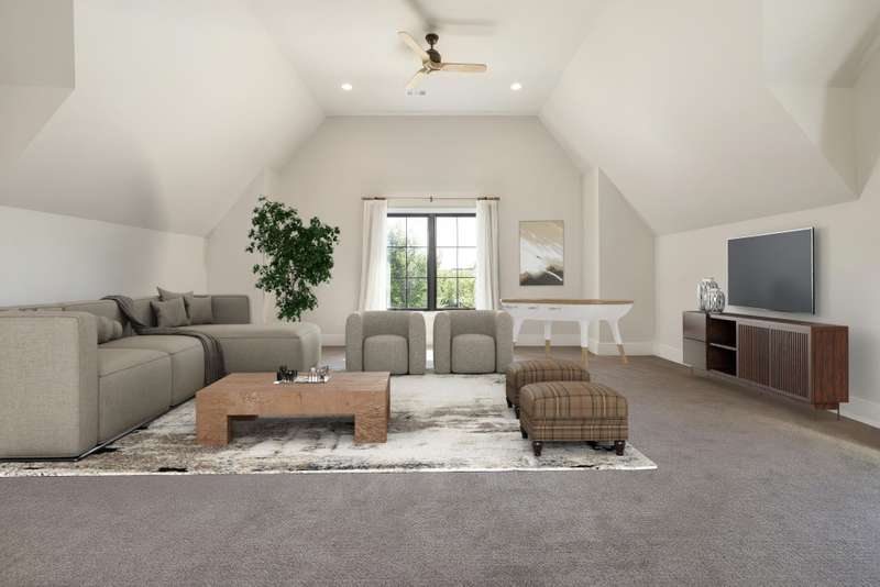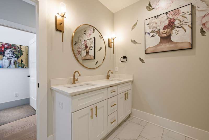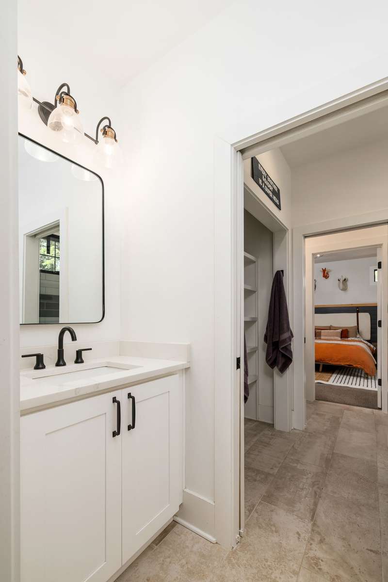 This striking Thompson's Station home blends modern elegance with warm natural accents, featuring a sleek exterior of white, black, brick, and wood finishes. Step inside to a thoughtful floor plan beginning with a moody formal living room--anchored by wainscoting and a statement light fixture--that could also serve as a formal dining space. Across the foyer, a designated office offers custom built-in shelving and cabinetry. The two-story living room impresses with wood-beamed ceilings, a shiplap and tile gas fireplace, and a cozy bay window overlooking the tranquil backyard--the perfect nook for morning coffee, a good book, or evening wine. The kitchen combines function and style with an oversized island, glass-paned cabinetry, open shelving, custom vent hood, top-of-the-line appliances, and a walk-in pantry. A spacious laundry and drop zone with custom cabinetry keeps daily life organized just off the three-car garage, which includes a versatile bay with room for an RV, trailer, or even a partial basketball court. The light-filled main-level primary suite offers a peaceful retreat with a walk-in closet, double vanities, soaking tub, and a floor-to-ceiling tiled shower. Upstairs, enjoy a media room and rec room, while the walk-out basement provides additional living space with a private apartment featuring a full kitchen, bedroom, and bath--ideal for guests. A spiral staircase connects the vaulted, screened-in deck with fireplace to the covered patio below, creating seamless indoor-outdoor living. Additional highlights include abundant unfinished storage space and a serene backyard backing to mature trees and open pasture. Located in the heart of Thompson's Station, this home is minutes from Williamson County schools, scenic parks, walking trails, and the local farmers market, with historic downtown Franklin's shopping and dining just a short drive away.