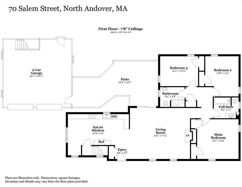 Welcome to 70 Salem St., a beautifully maintained 3-bedroom, 2-bath Ranch offering comfort, convenience, and single-level living. Features include central AC, hardwood floors, a fenced in rear yard, and a two-car garage with an unfinished second floor. The open-concept layout showcases an updated eat-in kitchen with granite countertops, stainless steel appliances, breakfast bar, and slider to a private patio, ideal for entertaining. The spacious fireplaced family room is perfect for relaxing. The main bedroom offers ample closet space, complemented by two additional bedrooms, a full hall bath, and a bath. The lower level includes laundry and a large storage area. Outside, enjoy a level fenced yard with a paver patio, shed and fire pit area, perfect for crisp fall evenings. Conveniently located near Drummond Playground, the Joseph Herman Youth Center, the Common, and the Stevens-Coolidge Estate. Move-in ready! Don't miss the chance to make 70 Salem St. your new home for the holidays!