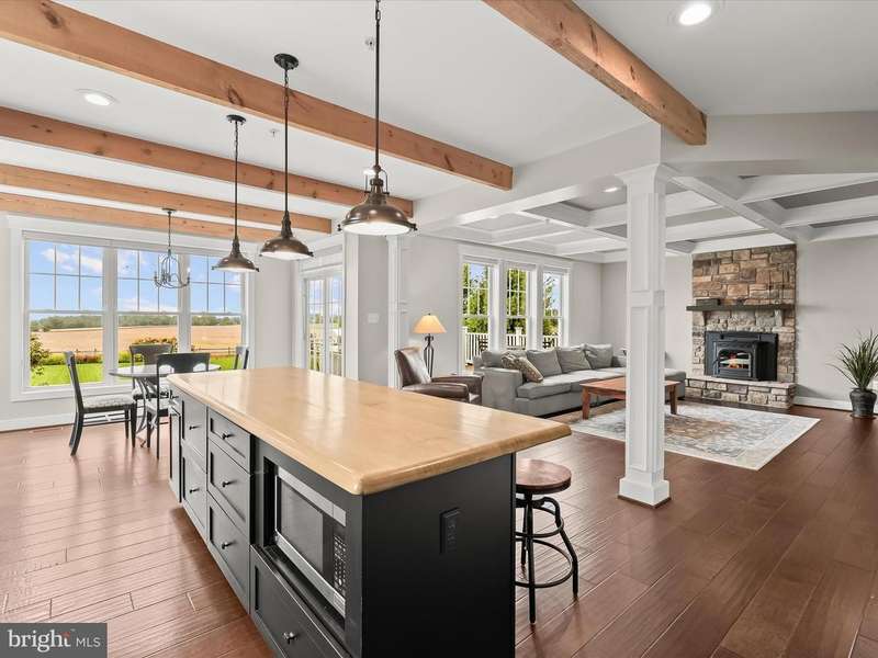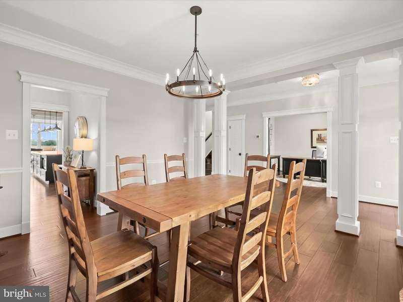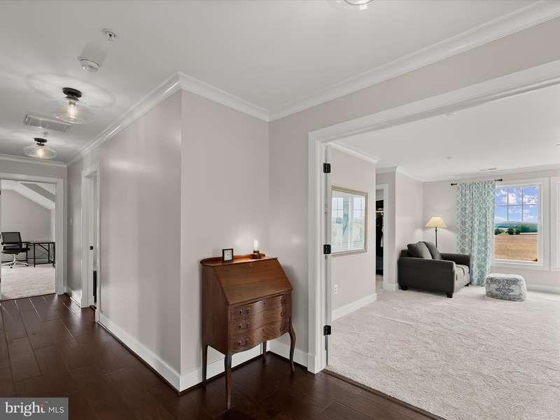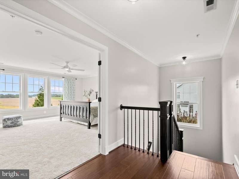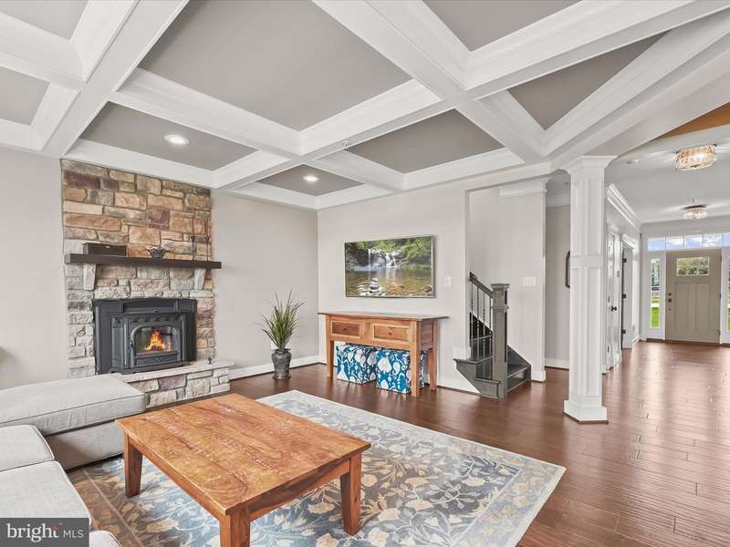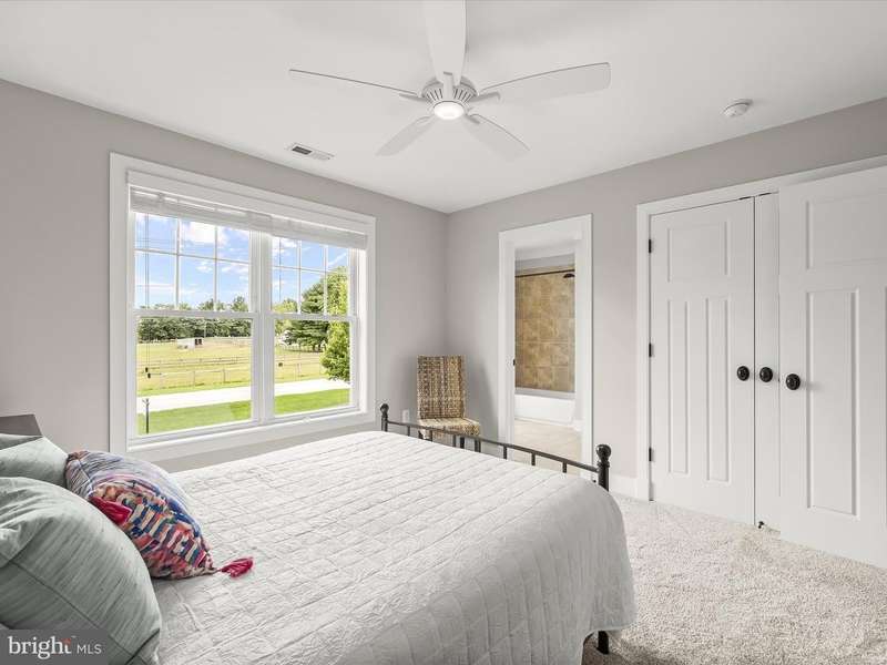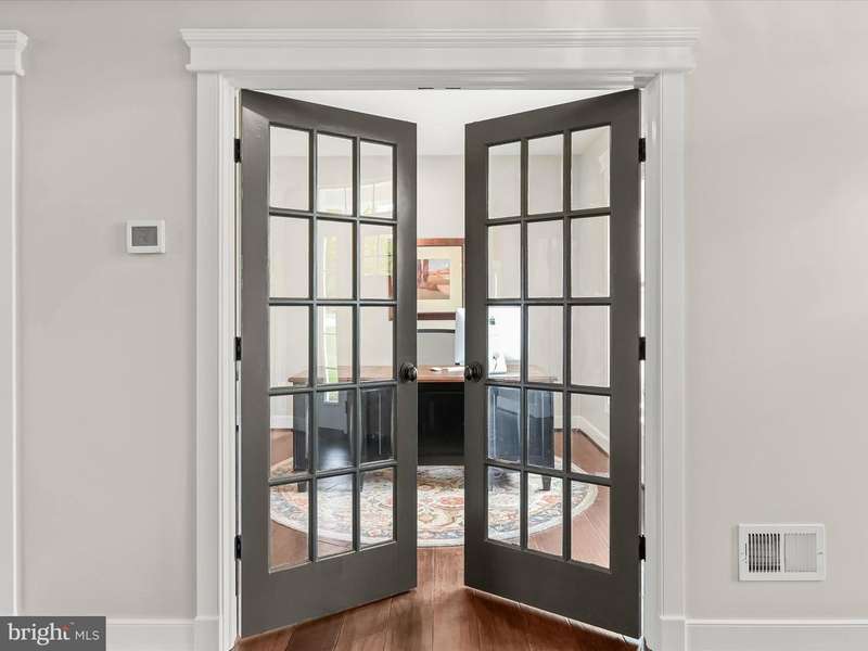 Welcome to this elegant custom-built Colonial, perfectly nestled in the prestigious Spring Hollow community of Mt. Airy. Designed for luxury living and timeless comfort, this exceptional residence backs to 84 acres of pristine preserved land, offering picture-perfect views of the countryside, while the front of the home overlooks pastoral scenes from a nearby horse farm. Inside, exquisite craftsmanship is on display with hand-scraped wide plank hardwood floors, custom ironwork and banisters, intricate trim and moldings, and thoughtful architectural details throughout. The gracious foyer is flanked by a private office with French doors and scenic views, as well as a formal dining room adorned with detailed millwork and stately columns. At the heart of the home, the chef's eat-in kitchen is a showstopper, featuring exposed wood beams, sleek appliances, granite countertops, decorative backsplash, and a center island with a maple wood breakfast bar. A gas stove with double convection ovens makes entertaining a delight, while the breakfast room provides breathtaking panoramic views of the countryside and access to the expansive deck. The family room is equally impressive, showcasing coffered ceilings, a pellet stove, and views of the beautifully landscaped backyard. A powder room and an arrival center with garage access complete the main level. Upstairs, the luxurious primary suite offers stunning views, two walk-in closets, and a spa-inspired en-suite bath with an expansive walk-in shower, dual vanities, and a private water closet. Three additional bedrooms one with its own en-suite bath along with a full hall bath and a conveniently located laundry room complete the upper level. The lower level expands the living space with a spacious game room with brand-new plush carpeting, an exercise room with rubber tile flooring, a workshop, a full bath, and abundant storage. Set on a beautifully landscaped 1-acre lot, the property's outdoor spaces are equally impressive, with a welcoming covered front porch, expansive deck, custom patio with firepit, and a fenced yard for outdoor enjoyment. An attached three-car garage and extended driveway add convenience to this exquisite offering. Combining sophistication, craftsmanship, and serene natural beauty, this remarkable home is the ultimate retreat for luxury living.