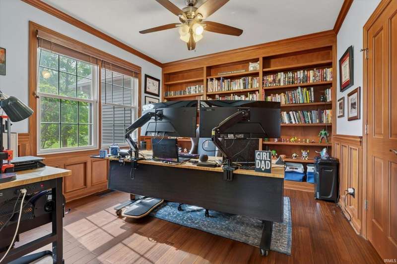 Traditional 4 bedroom nicely updated home in Granger's popular Northbrook Shores. Located in Penn Harris Madison's award winning schools. Step into the impressive two story foyer with rich bamboo hardwood flooring that runs throughout the main level. The dedicated office has french doors and built-in shelving in rich earth tones to provide an ideal home work space. The spacious living room and formal dining room with custom box molding will nicely accommodate family and friends for entertaining and holidays. The family room and kitchen will be the heart of the home with a cozy family room with built-in shelving and a gas fireplace while the kitchen will please any chef with newer stainless appliances and quartz countertops, and a newly added section with some glass front cabinetry and beverage refrigerator. Heading upstairs is a primary ensuite with dual vanity, walk-in closet and jetted tub and separate tub/toilet area. Three other nice sized bedrooms and family bath complete the second floor. The lower level has a finished flex room ideal for exercise/crafts/2nd office, a full bathroom and a spacious area for tv viewing and recreation and multiple daylight windows to brighten the area . Outside is a recently painted deck (2024) and a generous sized fenced yard ideal for kids and pets. Many recent updates including; front door (2024), Kitchen range and refrigerator (2-3 years), Dishwasher and microwave (5 years), Bamboo flooring (2023), Quartz countertops (2022), New area of kitchen cabinetry/beverage refrigerator (2024). Sellers will offer a CREDIT TOWARD NEW CARPET for 2nd floor (see attached carpet quote for amount of credit). Schedule your showing today!