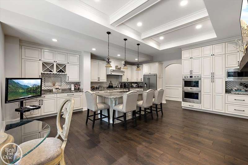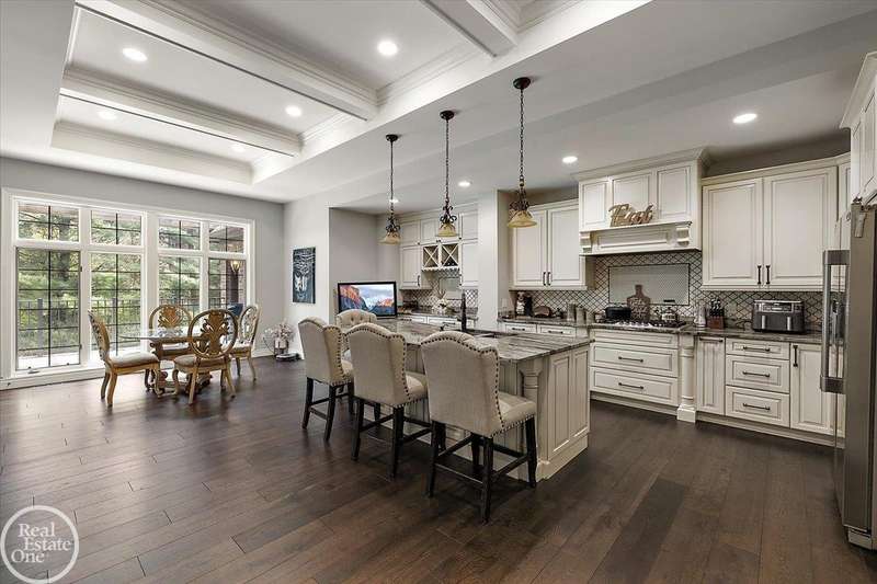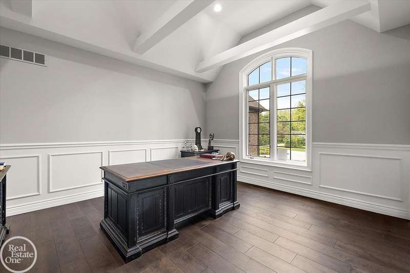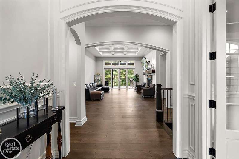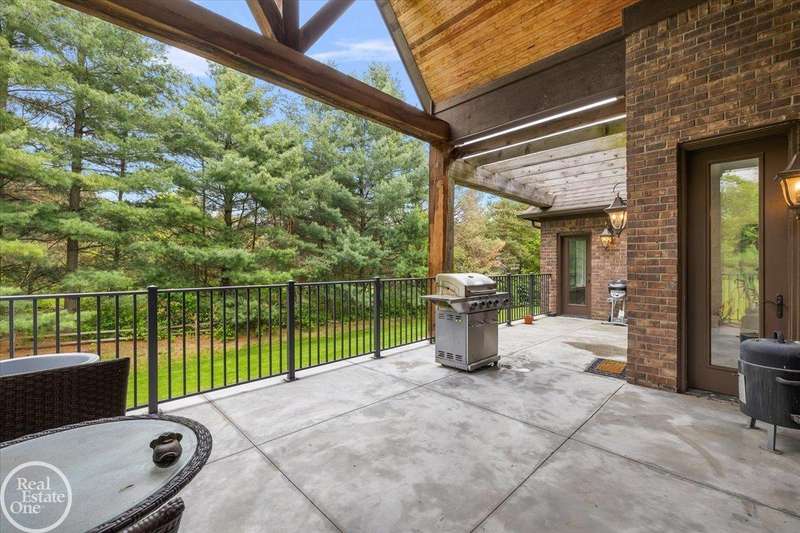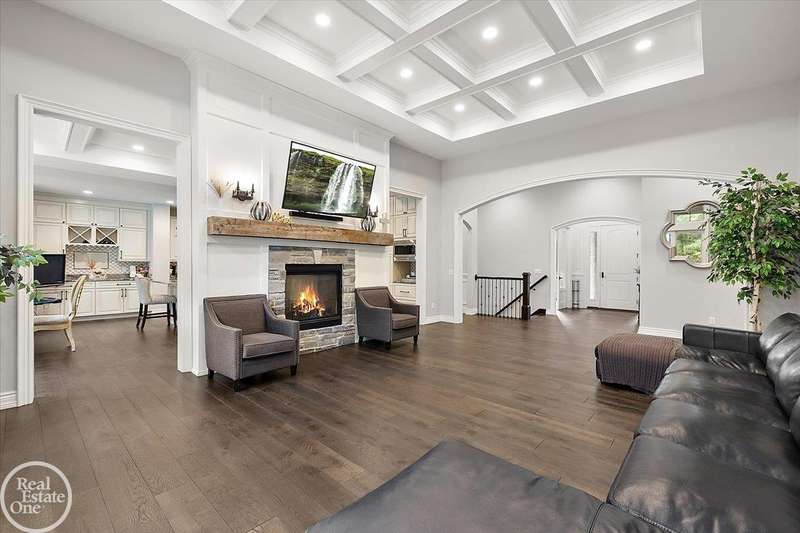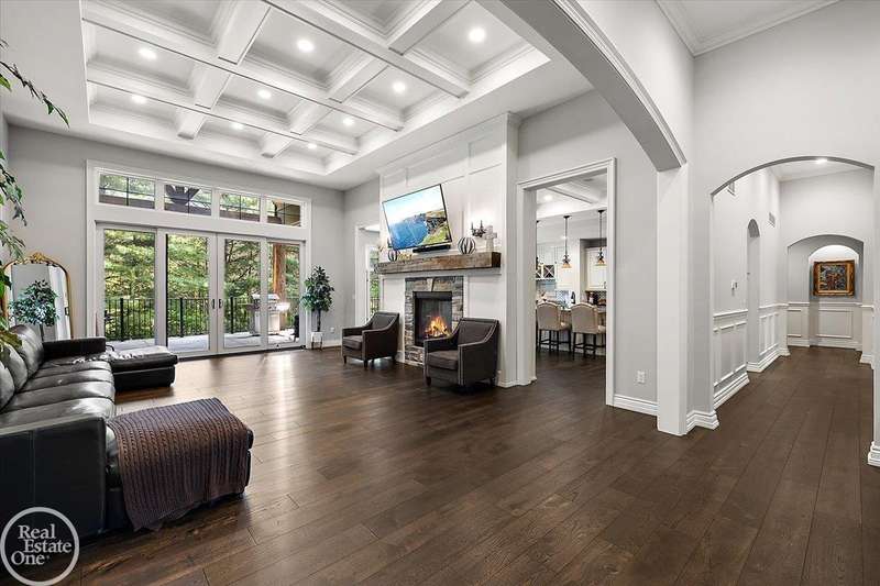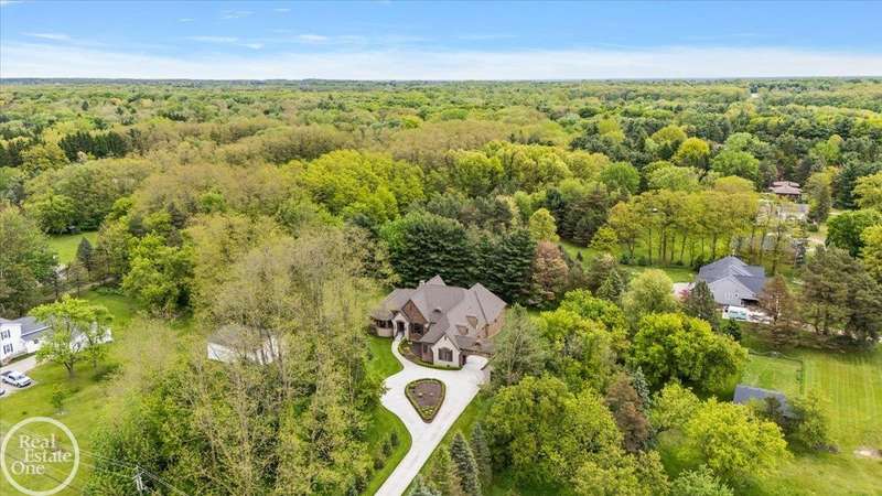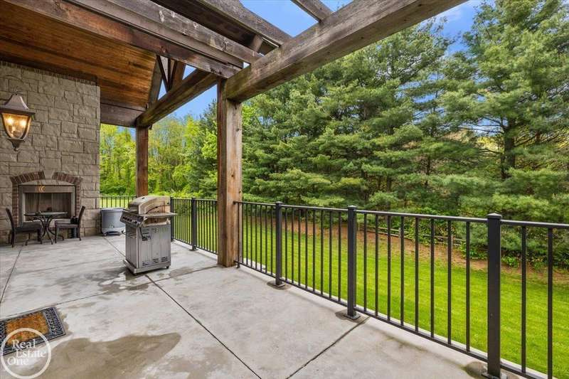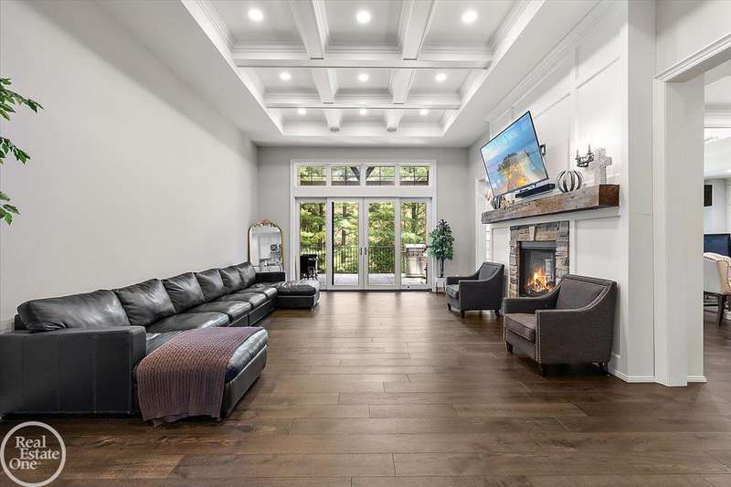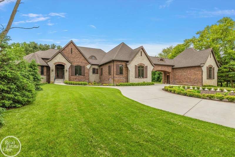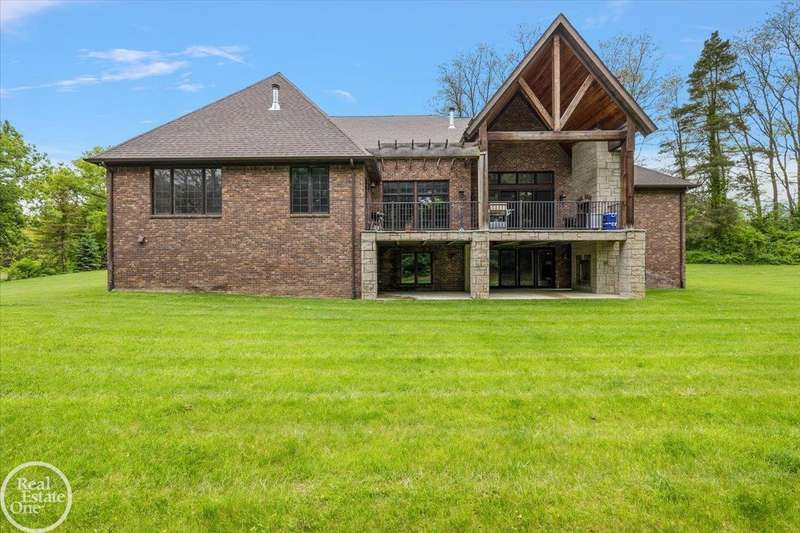 Introducing a stunning 4,600 square foot custom designer ranch situated on a secluded 2-acre lot, conveniently located near Stoney Creek Metro Park. This exceptional home features exquisite high-end finishes throughout, including beautiful wide-plank hardwood flooring covering the entire first floor. Enjoy intricately designed woodwork and elegant trim, complemented by coffered ceilings in the great room and kitchen. The gourmet island kitchen is a chef's dream with stainless steel appliances, a spacious breakfast nook, and a cozy fireplace. The impressive primary suite, nearly 1,000 square feet, comes with a sitting area and fireplace, a luxurious bathroom, and ample His and Her walk-in closets. There are also three additional bedrooms with bath access, and a second-floor suite with a full bath. The property includes garage space for six vehicles, expansive upper and lower patios with wood-burning fireplaces, and a walkout lower level with limitless potential. Enjoy the serene and private setting within the reputable Rochester Schools district.