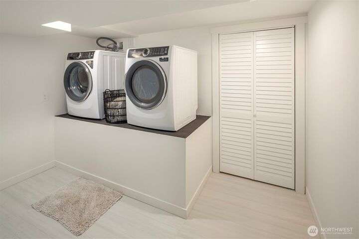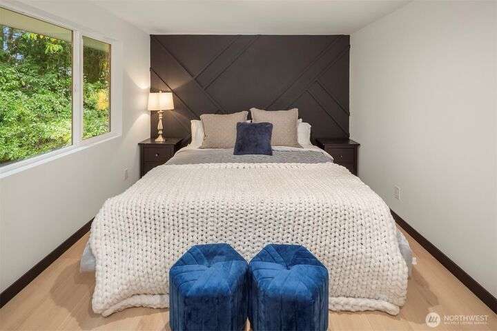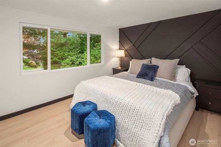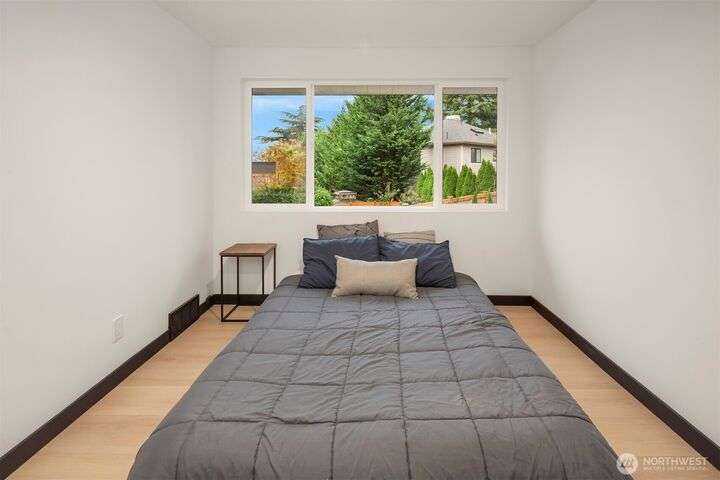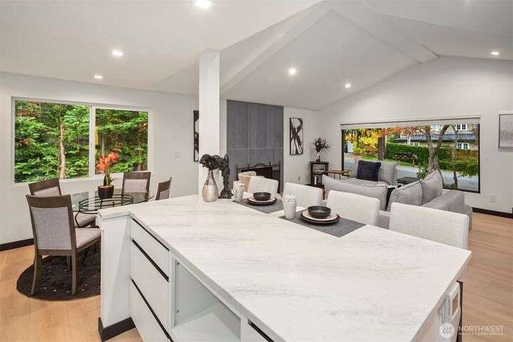 Prime location in West Bellevue, blocks from world-class dining, shopping and top rated schools. This gorgeous rambler is full of natural light with vaulted ceiling, updated open concept kitchen with quartz countertops and all new stainless steel appliances. Beautiful new laminate hardwood flooring throughout the main level, full tiled bathroom with double sink. Access to a beautiful paved patio perfect for entertianing with views of downtown form dinning room.