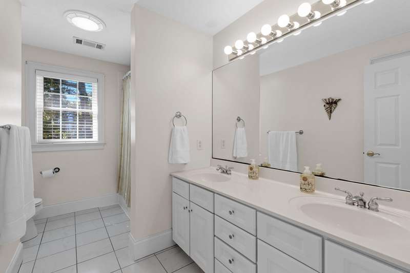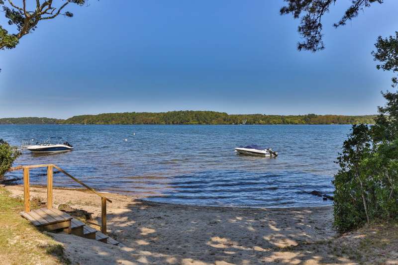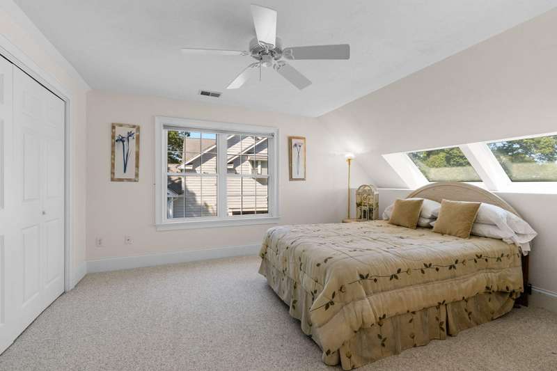 Imagine a beautifully designed home just across the street from Long Pond, offering rights to a private neighborhood beach, for swimming and kayaking. There are 2 moorings which are rotated among users in the neighborhood. This inviting home is filled with natural light, creating a welcoming atmosphere. The first floor features an open layout, including the primary bedroom suite & the laundry room, making everyday living effortless. The living and dining areas flow seamlessly into the well-appointed kitchen, ideal for entertaining. A three-season porch extends the living space, allowing you to enjoy the serene surroundings longer. The second floor boasts two large bedrooms, perfect for family or guests, along with a full bath. A sizable bonus room offers additional living space, which can be transformed into an office or family room. Outside, the proximity to Long Pond invites outdoor adventures, and the nearby bike path encourages leisurely rides.
