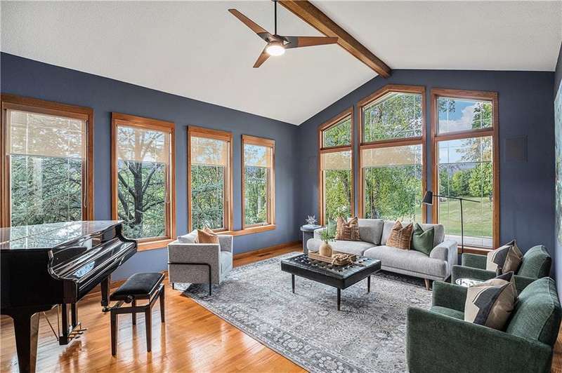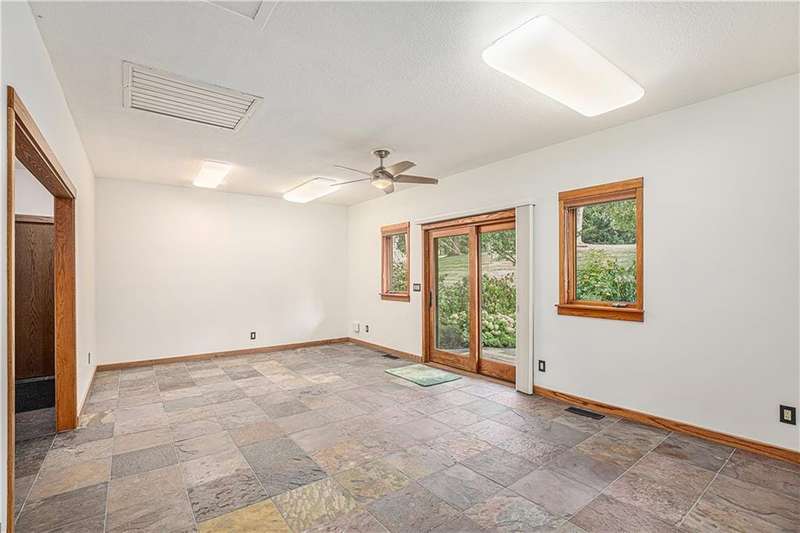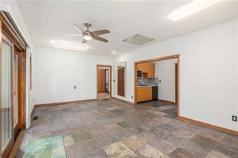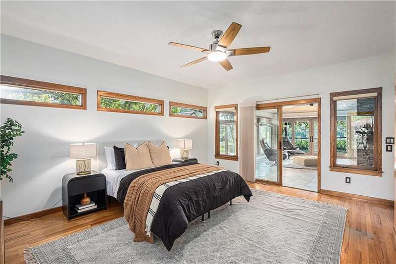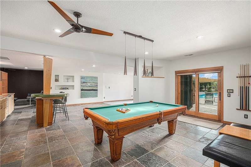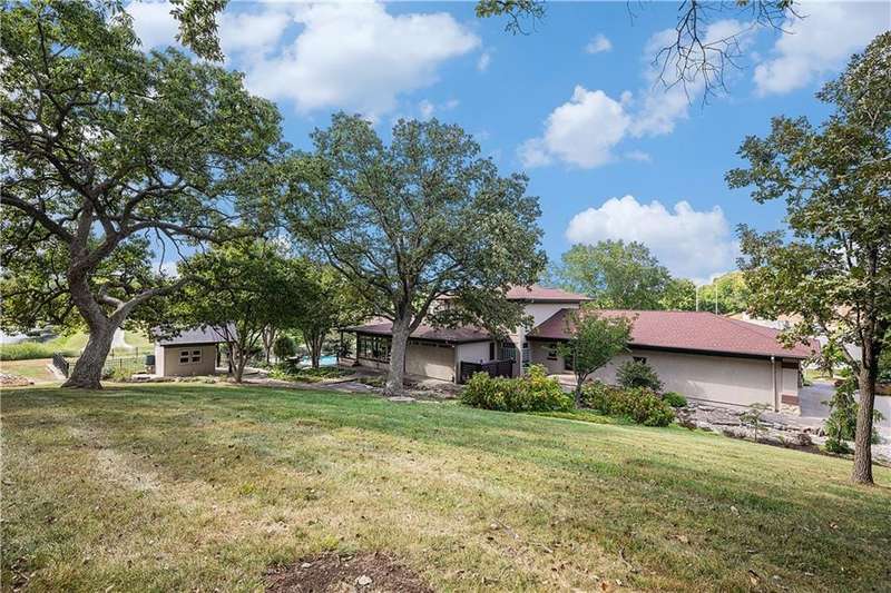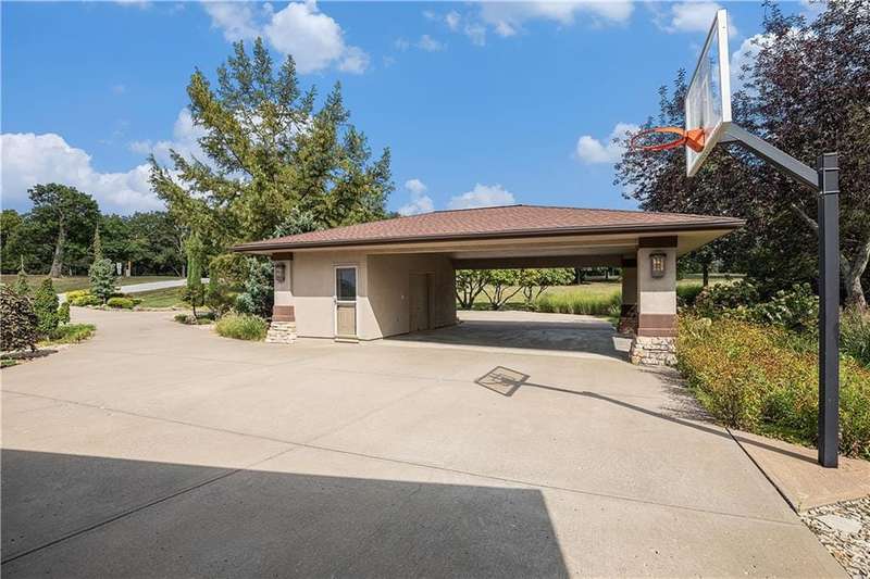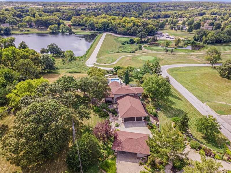 This extraordinary estate is truly one of a kindoffering a rare combination of space and luxury. With over 6,200 square feet of living space set on more than 3 acres, this home provides exceptional value and endless amenities for both relaxation and entertainment. Inside, youll find everything you need to stay active and unwind, including an in-ground pool, hot tub, indoor exercise pool, workout room, sauna, steam shower, and billiards room. This mid century floor plan features a grand entry, living room, dining room, and kitchen with built-in eat in area . Kitchen boasts fireplace, built-in fridge, island, double ovens, and plenty of cabinet space. The main floor hosts the primary suite and a second bedroom, along with a spacious office or additional family room with wet bar area. The sunroom with a cozy fireplace opens directly from both the primary suite and living area, offering a peaceful spot to start or end your day. Upstairs are two additional bedrooms with fully updated bath. Lower level is an entertainers dream with bar area, theatre room, rec room, fireplace, game area, and exercise room. Outdoors is just as impressivethe sparkling pool rivals those found in private clubs, and the grounds feature a fenced garden with shed, beautifully matured landscaping, a 3-car garage, and a matching carport with extra storage. Views of Oak Country Golf Course stretch across multiple fairways and greens, while a separate .4-acre parcel included in the sale provides additional opportunity near the 13-acre lake. Conveniently located with quick access to K-10, I-435, and Lawrence, youre just minutes from the new Panasonic plant, top-rated parks like Lexington Lake and Kill Creek Park (both expanding with miles of new trails), and a vibrant small-town downtown complete with shops, coffee, and a new brewery. Enjoy a peaceful rural setting with the benefits of modern amenities and city conveniencethis spectacular property truly has it all.