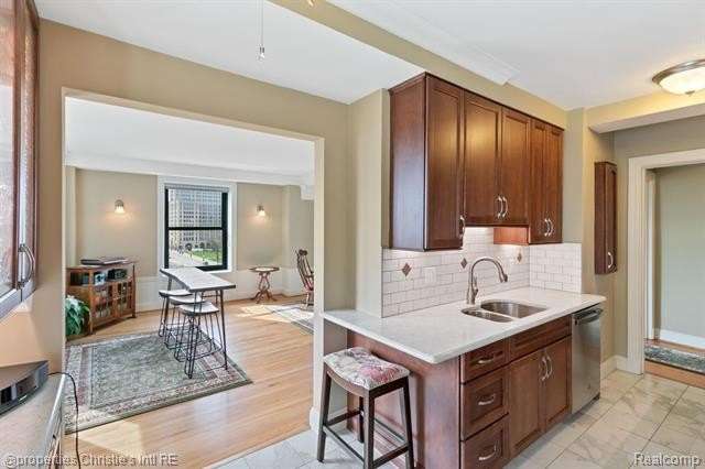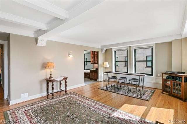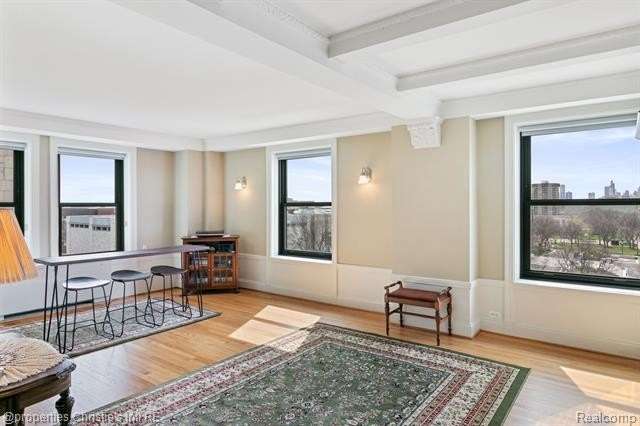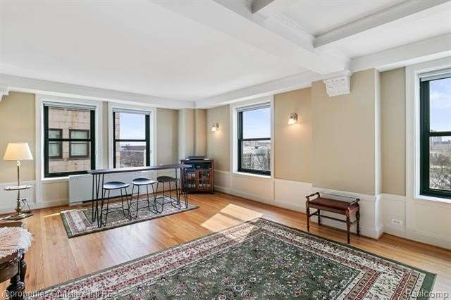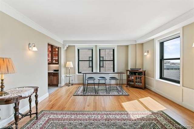 Welcome to The Park Shelton-iconic residence in the heart of the cultural district of Midtown. This renovated city skyline view condo is meticulous!!! Boasting 2 spacious bedrooms & 2 fully renovated bathrooms, offers a perfect blend of modern convenience with much attention to retaining original historic character & detail. Step inside to find hardwood floors that flow seamlessly throughout all living spaces, enhancing timeless appeal. The large primary bedroom is a true retreat, featuring generous closets for ample storage with a full sized in unit washer. The heart of the home, the kitchen, has been thoughtfully remodeled to meet the high standards. Elegant Pewabic tile accented backsplash, Silestone quartz countertops, & soft closure on all cabinet doors complement the stunning visual. Under-cabinet lighting illuminates, plus a lit glass side cabinet w/ counter provides for added storage. Built-in bench seat w/ storage provides cozy seating, perfect for dining or entertaining. Custom roll away island with flip top extensions that work perfectly for added counter space &/or eat-in space. The primary bathroom is a spa-like sanctuary w/ a custom walk-in shower, custom vanity & lighting, while the second full bathroom features a stylish tub-shower combo, catering to all your bathing preferences. The bathroom updates ensure a modern & comfortable living experience. All inside doors were stripped & re-stained like original finish. Convenience is key w/ a full-size washer in the primary walk-in closet, making laundry very accessible. Move right in w/out the need for major renovations, as every detail has been carefully curated for immediate enjoyment. Experience urban living at its finest with breathtaking city views from your new home at The Park Shelton. Don't miss this rare opportunity to own a piece of Midtown's vibrant cultural scene. Schedule your private tour today & prepare to fall in love w/ your new home! 2 Deeded covered parking spaces included w/ sale. NEZ- Rehab through 12-30-2028.