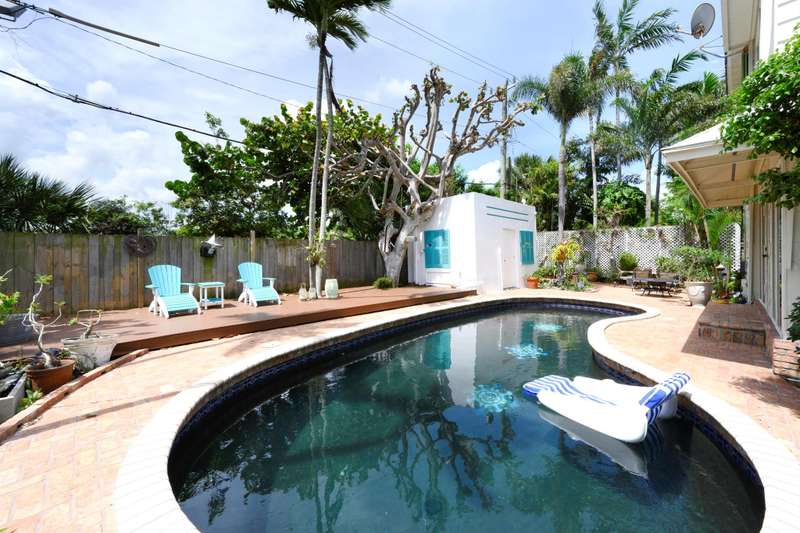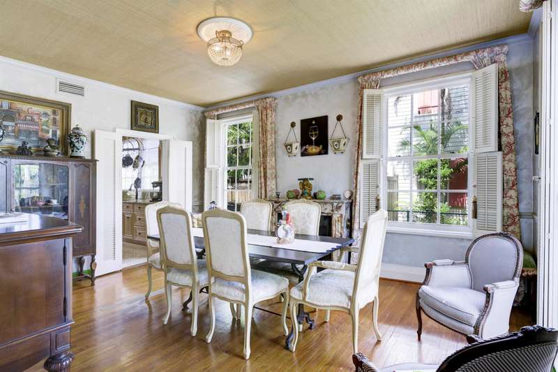 Timeless charm meets comfortable elegance in the heart of West Palm Beach. This Georgetown-style two-story pool residence blends timeless character with thoughtful upgrades, creating the perfect setting for relaxed living and effortless entertaining.Inside, Miami Dade Pine hardwood floors, elegant crown molding, and soaring 9-foot smooth ceilings set the tone. Custom built-ins offer both beauty and function throughout. Gather in the formal living room around the decorative fireplace or take in garden views from the bay window and adjacent home office. First floor features bedroom with wall-to-wall built-in shelving and pool view. Full downstairs bath with counter height vanity, tiled countertops imported from Bali, and a walk-in shower with glass doors and tiled flooring.