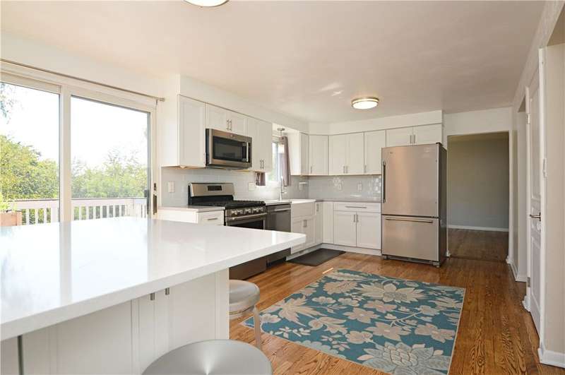 Absolutely STUNNING 4 bedroom - MUST SEE!!! This wonderfully maintained, & fully updated - true 4 bedroom, is 100% move-in-ready. Gleaming hardwood floors throughout, large eat-in-kitchen w/ stainless appliances, high-end cabinets, & hard surface counters. Enjoy the summers on your back deck overlooking the wooded setting!! Tastefully updated bathrooms on main level, & upper level. Lower level is finished, w/ walk out to back patio, & additional half bath! Large bedrooms, spaced out well to give the top floor a great flow. You will not get the crammed felling here!! Great managable backyard, w/ new fence in shed. 2 car integral garage, & plenty of extra parking on driveway. Close to 376, 79, downtown, airport, restaurants, & shopping.