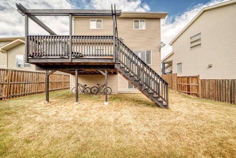 Welcome to the desirable community of Sagewood! This charming and well-kept home offers over 1,550 sq. ft. of developed living space and combines comfort, style, and practicality — perfect for growing families. The main floor welcomes you with a large entry and mudroom off the double attached garage, leading into a bright and spacious living room complete with a cozy fireplace — ideal for relaxing or entertaining guests. The kitchen features ample cupboard space, laminate countertops, and a great layout for everyday cooking. A 2-piece powder room completes this level. Upstairs, discover three generous bedrooms, including a primary bedroom with a 4-piece ensuite bathroom and an additional 4-piece bath for family or guests. Step outside to enjoy the finished back deck, perfect for summer BBQs, surrounded by low-maintenance landscaping in both the front and backyard. The partially finished basement has large windows and offers excellent potential for the new owner to personalize. Additional updates include a new roof (2021) and a new furnace (January 2023). Situated in a quiet, family-friendly community, this home is close to schools, parks, shopping, and public transit. A wonderful opportunity to own a beautiful family home in Sagewood — book your showing today!