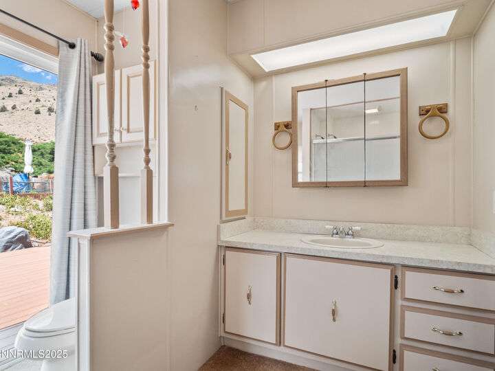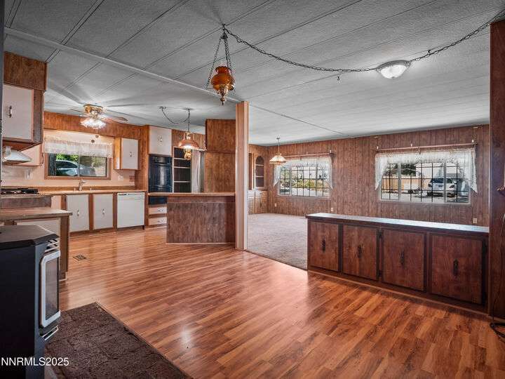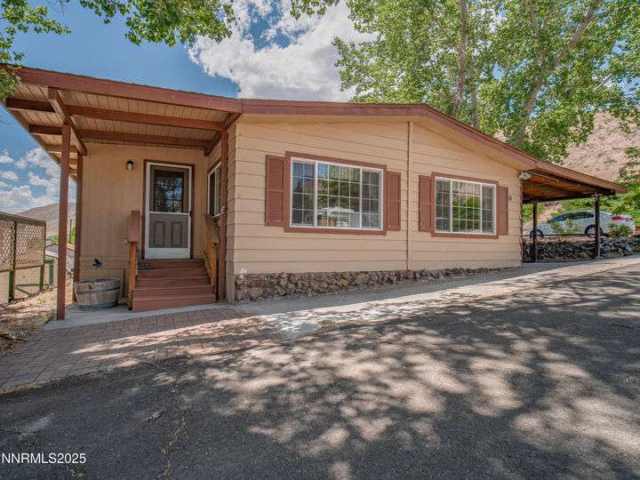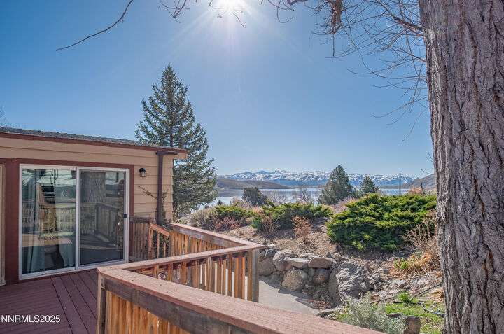 Enjoy affordable lake living at its best with gorgeous views from this 3 bedroom, 2 bath home with carport. The main suite bedroom features excellent views of the mountains and lake with slider to trex decking. Relax in the living room with a gas fireplace, new gas stove, spacious kitchen and a double oven. Lots of storage, workshop area and additional storage area and room off of the living room. Current space rent is 650 a month and includes water, sewer, trash, and access to the boat launch., Only 20 minutes to Walmart and town of Gardnerville where you will find more ametrines and restaurants. Topaz Lake is a reservoir located on the California-Nevada border, about 75 miles south of Reno. It is an excellent lake for year around fishing and fun boating sports in the Summer. This park consists of 16 units and includes boat launch, trash, water and sewage for the space rent. It's a well-maintained mobile home ready for a new owner.