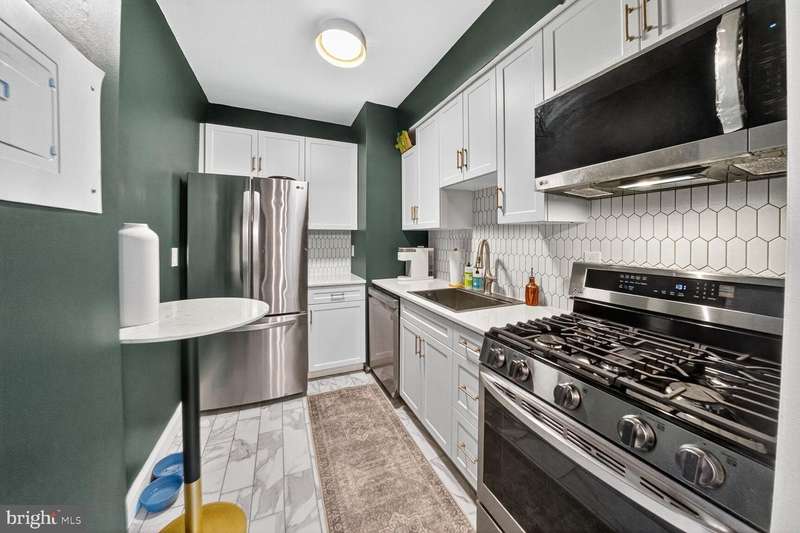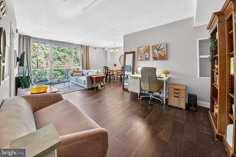 NOT A FIRST FLOOR ! This is one gorgeous fully renovated 812 sq ft condo with pleasant green views of trees and Porter street on the quiet back side of the building! Wonderful layout with nice entry foyer leading to a large spacious living room with sliders to a huge balcony and a dedicated dining space off the fully updated kitchen. Large and bright bedroom with good closet space and a clean newly renovated hall bath. Other fine features include warm wide plank flooring, an open lay out, high ceilings, a chef's kitchen and a location to dream about! Literally steps to a multitude of shops, restaurants, the metro, & so much more! Condo fee includes all utilities and the owner tells me she parks on Porter street which is not zoned for parking and walks right into the building! Priced to sell so don't delay!