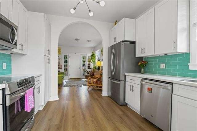 You'll fall in love with this absolutely adorable home in the heart of Old Arabi! Thoughtfully updated, this charming pink cottage perfectly blends historic neighborhood character with modern updates. Relax on the welcoming front porch, unwind under the covered carport, or enjoy outdoor living in the spacious backyard — perfect for pets, gardening, or gatherings with friends. Step inside to find a brand-new kitchen, bathroom & floors, fresh finishes throughout, and bright, inviting spaces that feel instantly like home. The 2023 roof replacement and location in Flood Zone X offer both peace of mind, and insurance savings, while the home’s efficient layout makes every square foot count. On a quiet street, it's also close to neighborhood favorites, local restaurants, riverfront views, and just a short drive from downtown New Orleans. The only thing this dream home is missing is you!