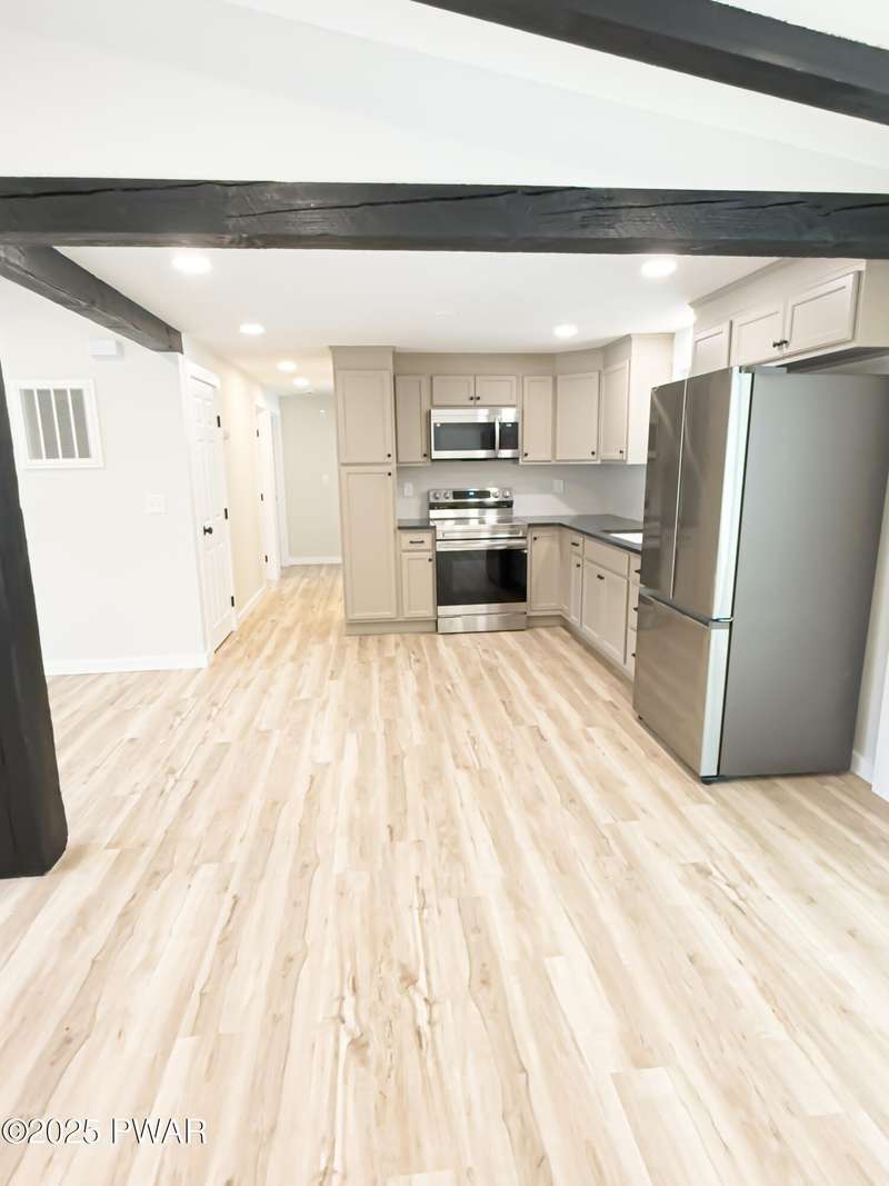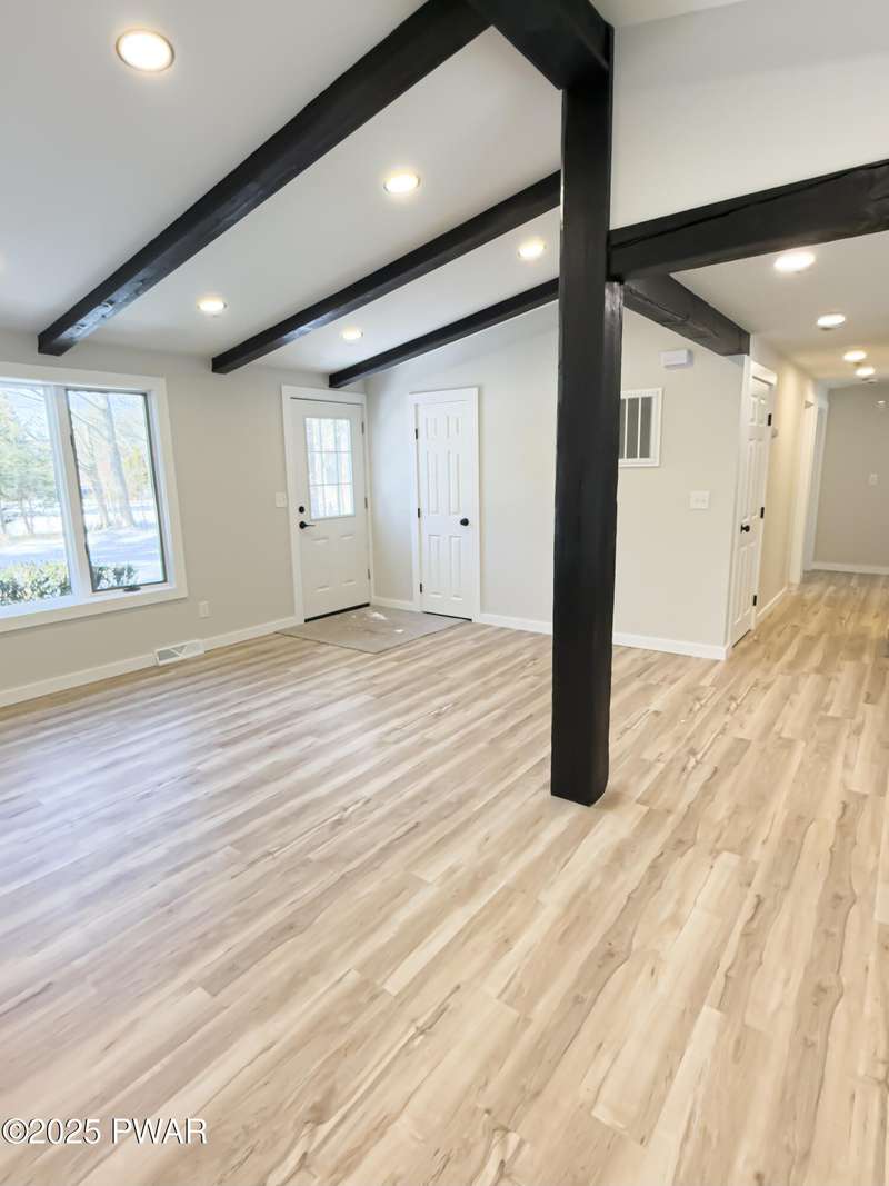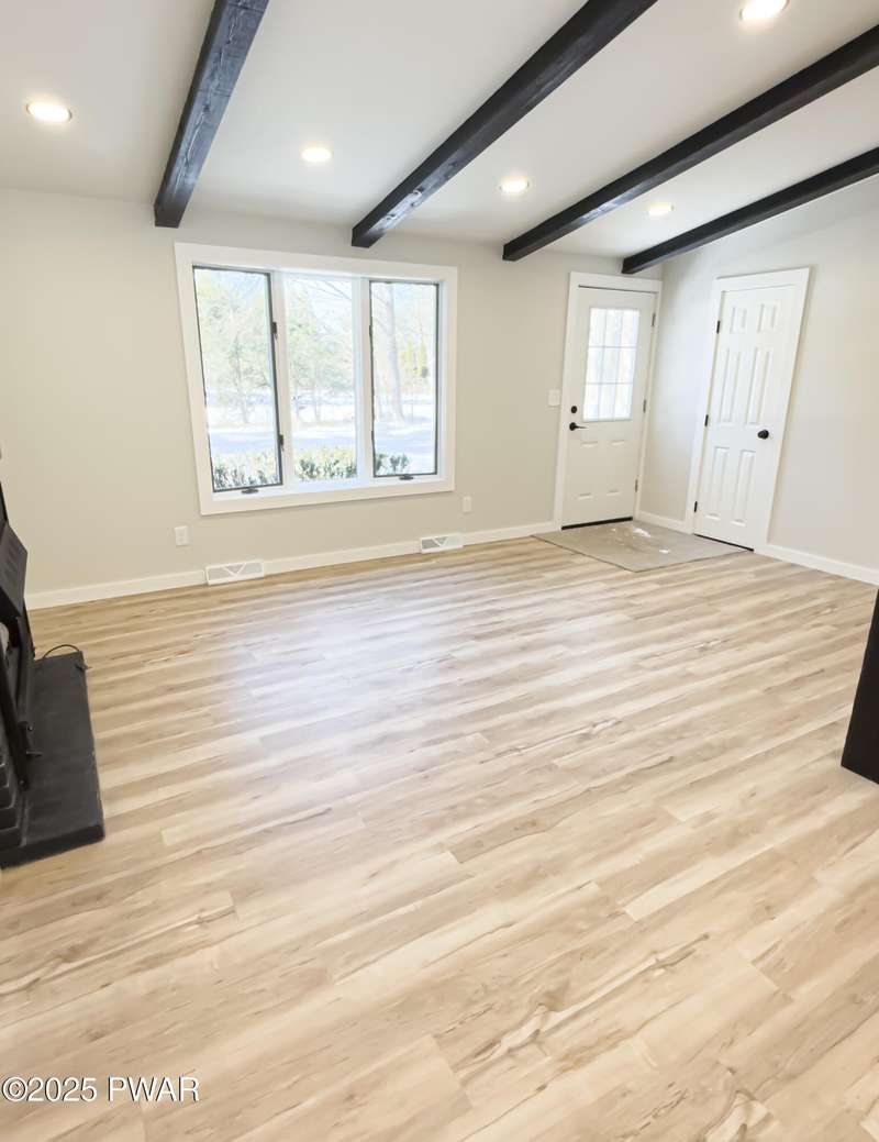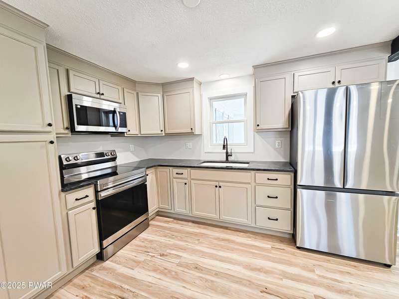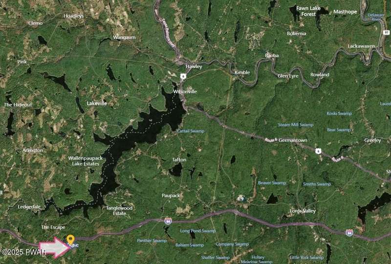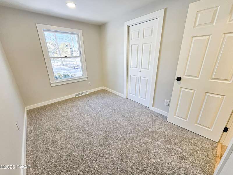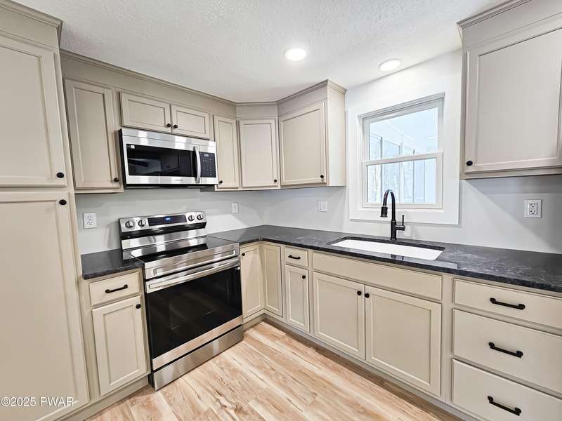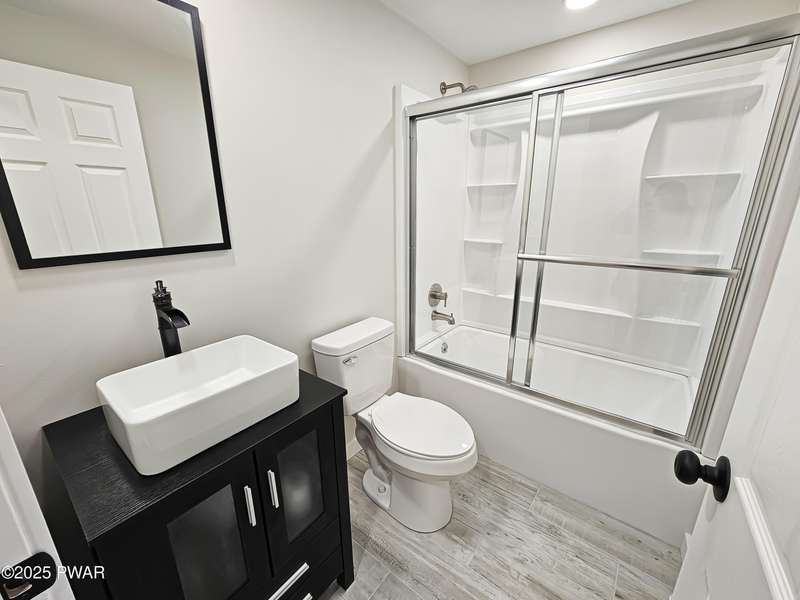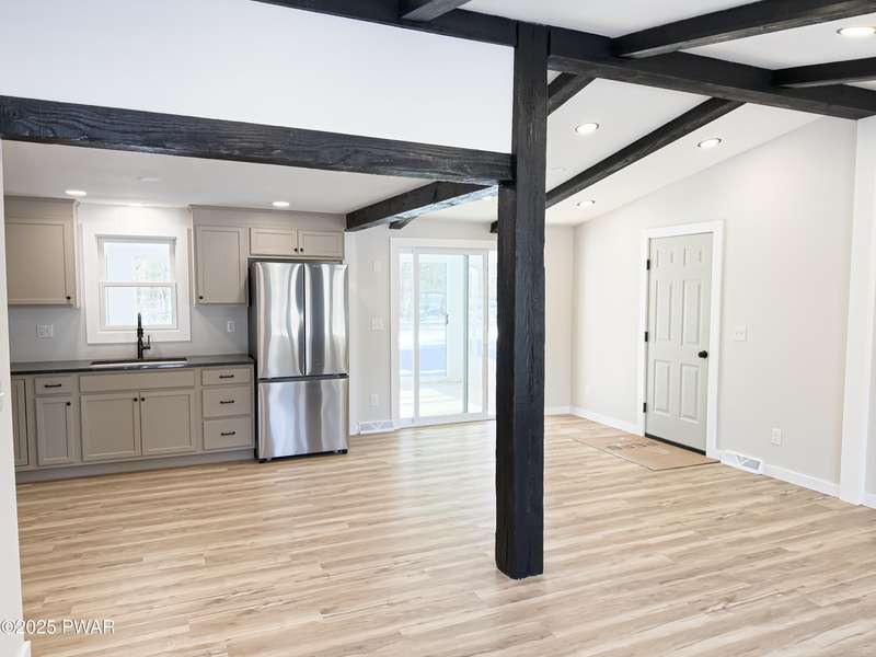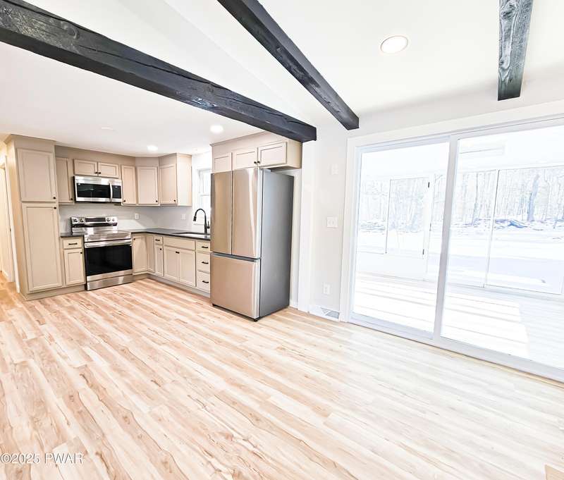 PRIVATELY SET + ALL NEWLY RENOVATED 3 Bedroom, 1 bath, 1 car heated and sheetrocked garage, on 2 lots totalling nearly an acre of property and BACKS TO STATE LAND! This home sweet home has been completely gutted and remodeled! Light & bright open floor plan w/ vaulted beamed ceilings, eat-in kitchen w/ beautiful modern cabinetry and black granite counters, spacious dining area, propane living room fireplace, trendy bath w/ glass shower doors, and HUGE 3-Season sunroom to enjoy your completely private back yard! Natural stone walls border the back of the property near the state land. Storage shed for additional space AND BRAND NEW SEPTIC SYSTEM!!! NEW 200 AMP ELECTRIC SERVICE meter and panel also. Nothing left to worry about except when to move in. Sweetly set down a quiet country road, yet minutes to grocery, gas and the highway. Close to Lake Wallenpaupack Ledgedale access area, Promised Land State Park, and all local Poconos activities. Realtor owned.