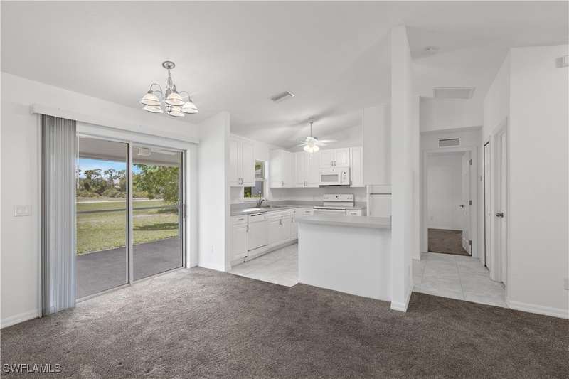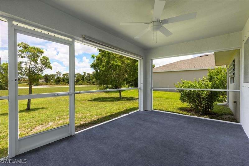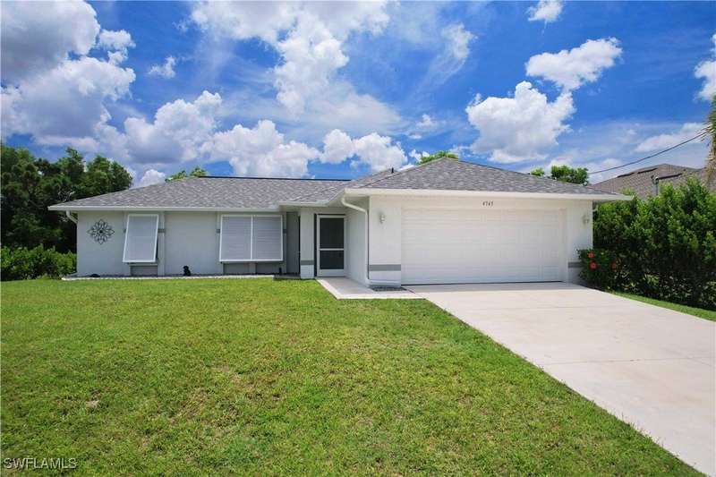 Located in a peaceful section of Northwest Cape Coral, this 3-bedroom, 2-bath home built in 2018 offers a great opportunity for first-time buyers, seasonal residents, or anyone seeking a simple Florida retreat. Features include a newer roof (2024), fresh paint, an enclosed front porch, screened back lanai, hurricane protection awnings on the front windows, and manual storm shutters for all windows. The landscaping is nicely maintained, and the home is clean, well-kept, and move-in ready. This quiet area offers easy access to Pine Island Road for shopping and dining, I-75, and Punta Gorda Airport. Nearby highlights include community parks, the newly opened Kismet Lakes Park, and Burnt Store Marina just minutes away, offering waterfront dining, golf, and marina access open to the public. With more development on the horizon, including the future Seven Islands project, this location combines affordability, privacy, and long-term potential in one of Cape Coral's most promising areas.