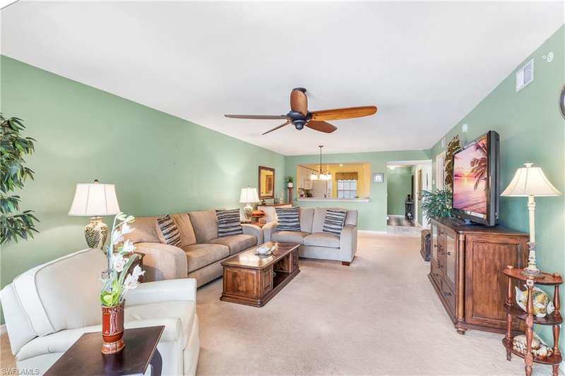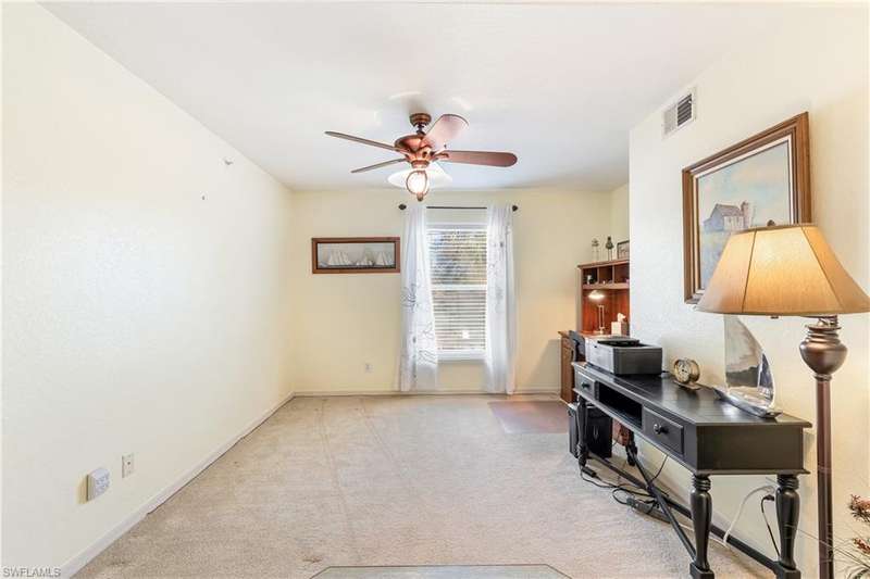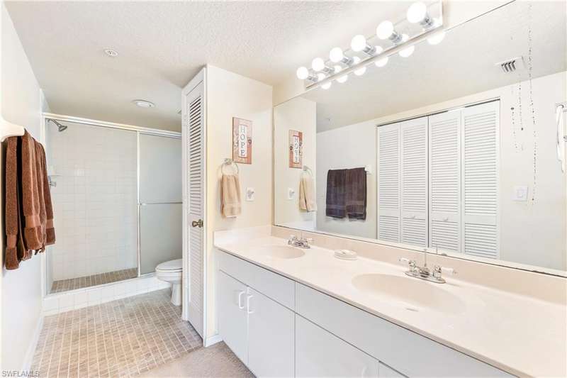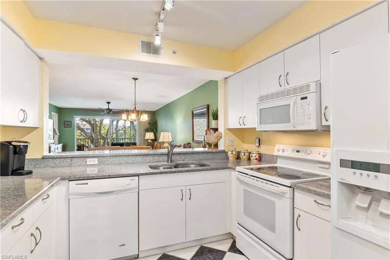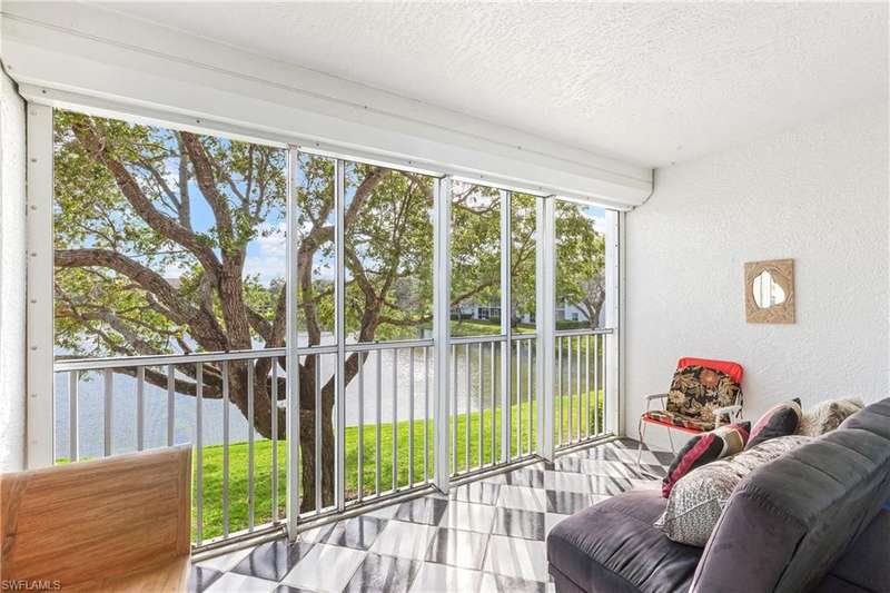 Spacious END unit with lots of windows and light, 2 Bedrooms & DEN (easily transformed into a 3rd bedroom) 2 full Bathrooms. Peaceful South facing lake view from large screened in lanai. Second floor (Elevator). Great view of pool from all bedrooms, Condo in Great location in North Naples and within Victoria Lakes. Rare vintage chic and retro aesthetic classic black and white checkerboard flooring on lanai and kitchen. Washer & Dryer insdie Condo. Common elevator available. Minutes to the beach, shopping and dining.