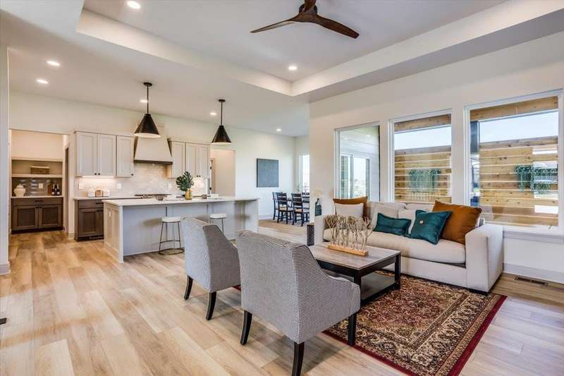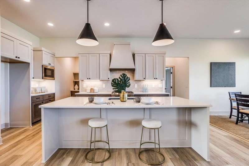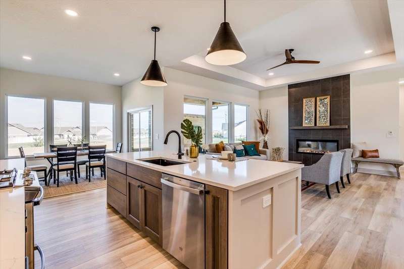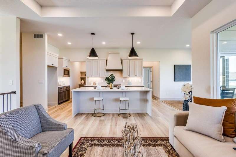 Welcome to Socora's Pine Grove Plan featuring zero entry access for effortless living. The open concept main floor offers an inviting living space, perfect for entertaining. The spacious kitchen boasts quartz countertops, ample cabinetry, a large island, walk-in pantry and stainless appliances. A walkout patio extends the living space to the outdoors, ideal for family gatherings. Retreat to the primary suite with an en-suite bathroom featuring dual vanities, fully tiled shower, and a large walk-in closet conveniently connected to the laundry room. Two additional bedrooms, and a bath complete the main floor, ideal for family or guests. The daylight basement is fully finished with a large family room, walk-up wet bar, two more bedrooms, and bath. Fontana offers a zero-entry pool with splash pad, playground, walking paths and lakes. It's also minutes away from NewMarket Square for all your shopping and dining needs. A $175 mailbox key fee is collected at closing. LOWER SPECIALS, LOWER TAXES AND MAIZE SCHOOLS. All information deemed reliable and not guaranteed. OPEN THURS - MON 1:00-5:00 OR ANYTIME BY APPOINTMENT.