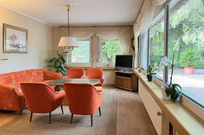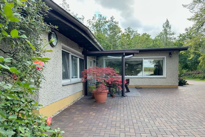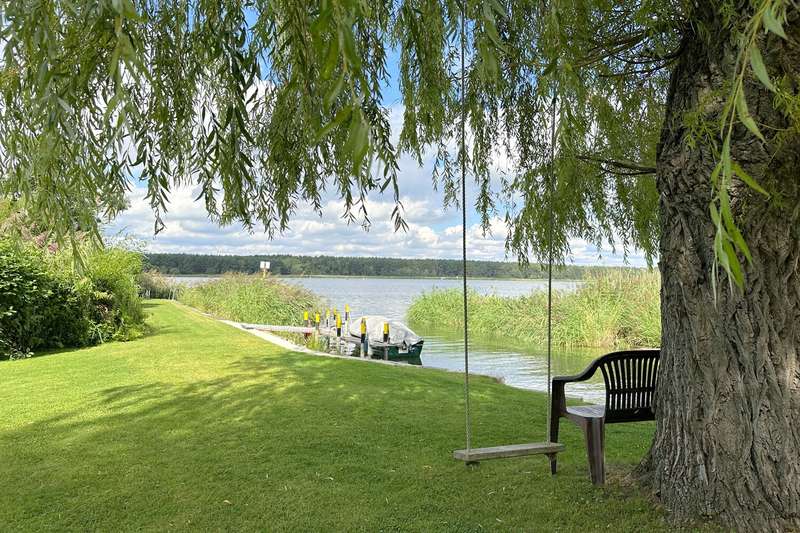 Located directly on the Havel, this extraordinary property combines living, relaxing and investing in a unique way. With its own beach, jetty and boathouse, this exclusive offer leaves nothing to be desired. Living with a view: The house was built around 1988 and has always been very well maintained. It welcomes its residents with a bright and friendly atmosphere. Generous window areas let in plenty of daylight and open up views of the countryside. Four rooms are spread over approx. 84 m² of living space, offering a well thought-out room concept. The open-plan living and dining area with room divider is the heart of the house - perfect for socializing or quiet moments with a view of the park-like garden and the adjacent Havel. A modern fitted kitchen, a bathroom with bathtub and another bathroom with shower provide contemporary comfort. A large bedroom offers enough space for peaceful nights. The practical vestibule with adjoining storage room and a combined wood and gas heating system round off the harmonious overall picture. Vacation idyll on the Havel: The second highlight is the vacation home built around 1959, which was extended by a massive extension in around 1972. With approx. 58 m² of living space plus 14 m² of usable space, it combines functionality and comfort. The light-flooded living room with access to the covered terrace immediately conjures up vacation feelings. Here you can enjoy a direct view of the water, protected by an awning. There are two cozy bedrooms on the top floor - ideal for family or guests. A bathroom with shower and efficient gas central heating make the vacation home a real retreat for all seasons. The vacation home is suitable both for your own use and for lucrative rental to vacation guests - an ideal opportunity to elegantly combine living and income. A property straight out of a picture book: The 5,658 m² private property is a paradise for nature and water lovers. With around 25 meters of shoreline, a private beach, its own jetty and a stable boathouse, it offers a rare opportunity directly on the Havel. Whether it's a morning swim, relaxed sunbathing or boat trips - living here blends with quality of life. The park-like garden impresses with spacious lawns, stylish planting and plenty of space for rest and relaxation. A separate barbecue house, a double carport and a historic air raid shelter underline the individuality of this property. This extraordinary ensemble of residential house, vacation home, extensive grounds and direct access to the Havel offers a rare opportunity. Whether as a stylish main residence, an idyllic weekend home or a multi-generational family estate - nature, comfort and waterfront location combine here to create an incomparable overall picture. At the same time, the vacation home opens up the option of generating additional income through vacation rentals and using the property in an economically viable way. Note: Once you have completed your contact details, the exposé will be sent out fully automatically. Please contact us for further information and a viewing appointment. To get an impression of the property, we cordially invite you to take our virtual 3D tour. Offer procedure: This property is being marketed as part of an offer procedure. Further information on the procedure and the modalities is available on request.
