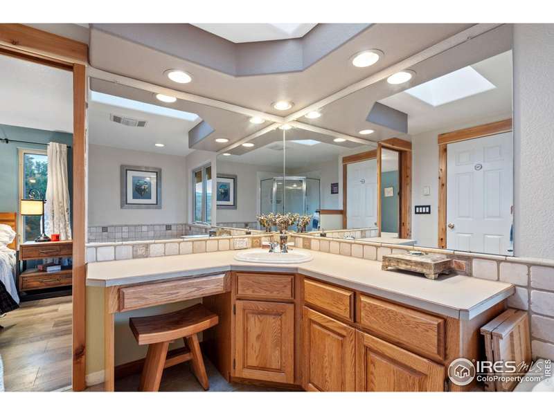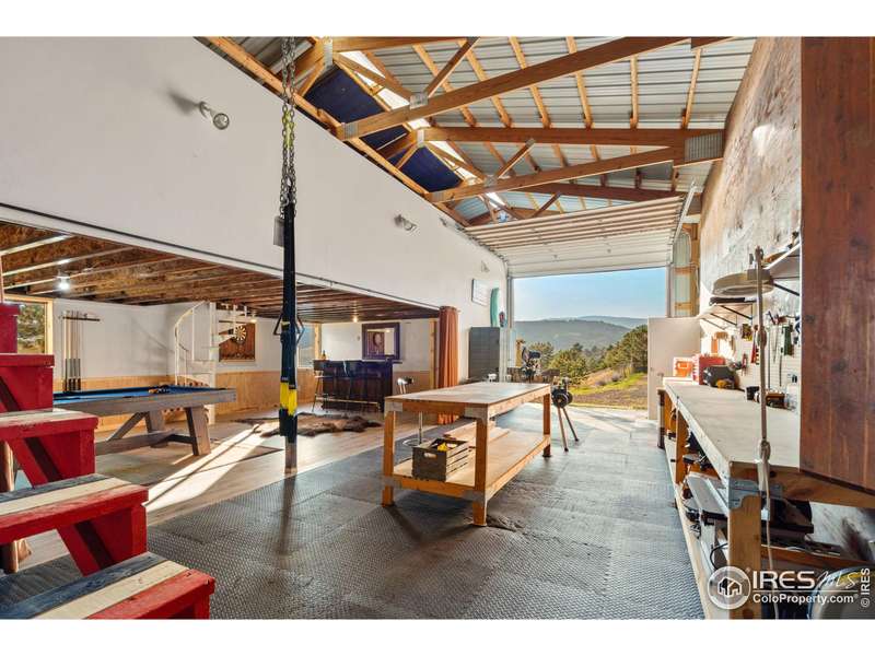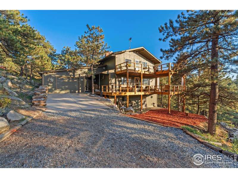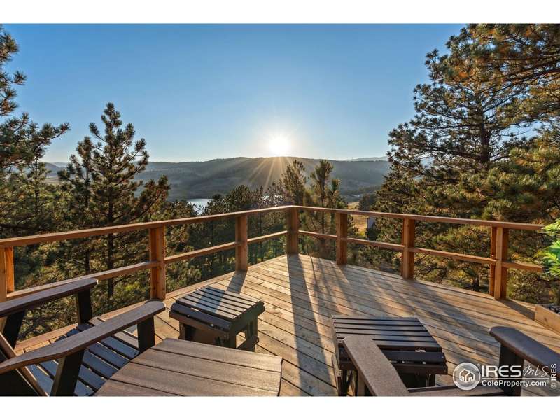 Nestled in a serene setting just 25 minutes from downtown Loveland, this unique property offers privacy, mountain views, and a lifestyle designed for both comfort and versatility. Zoned for horses and surrounded by mature trees and landscaping, the home is perfectly positioned to capture sweeping views of Pinewood Reservoir and the surrounding foothills. With multiple kitchens, entrances, and living areas, this residence is ideal for multi-generational living. Bedroom 3 is a detached in-law apartment, offering independence while staying close. Inside, you'll find multiple office spaces (one easily convertible into a 4th bedroom), abundant storage, and several fireplaces-both indoors and out-for cozy gatherings year-round. Outdoor living shines with expansive decks and patios on multiple levels, winding paths throughout the property, and a welcoming outdoor fireplace. Whether entertaining or simply soaking in the peaceful surroundings, every corner invites connection with nature. Car enthusiasts, hobbyists, or those in need of serious workspace will love the oversized garage complex featuring a recreation room, shop, craft room, loft, carport, and patio. Additional detached garage space provides even more storage and flexibility. Close to Carter Lake and Pinewood Reservoir recreation areas and trails, this property is the perfect balance of retreat and convenience-offering room to spread out, work, play, and live the Colorado lifestyle to its fullest.