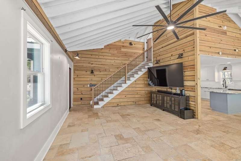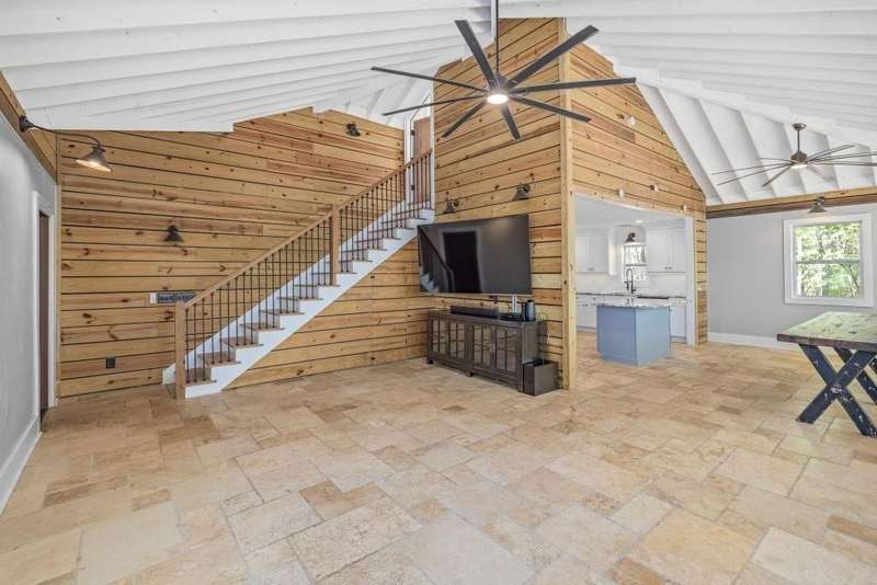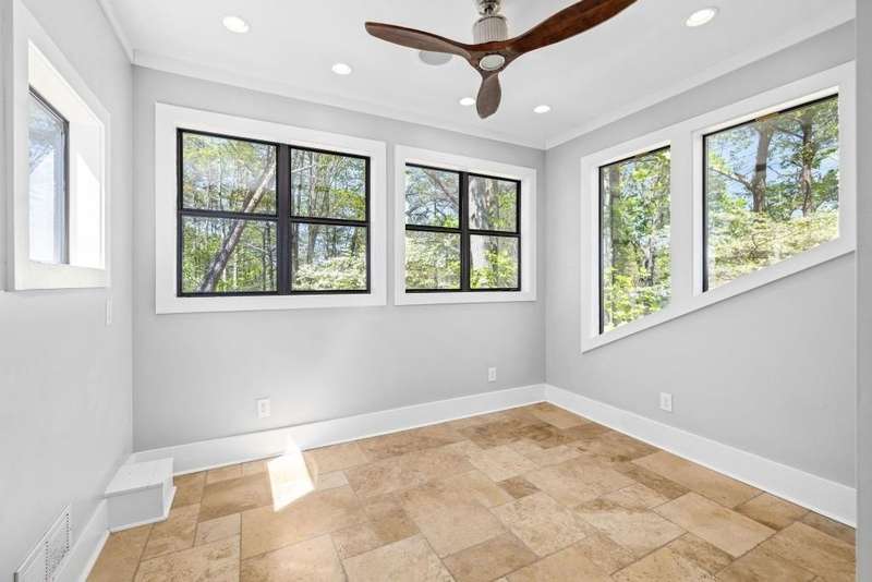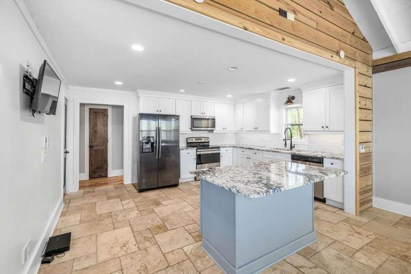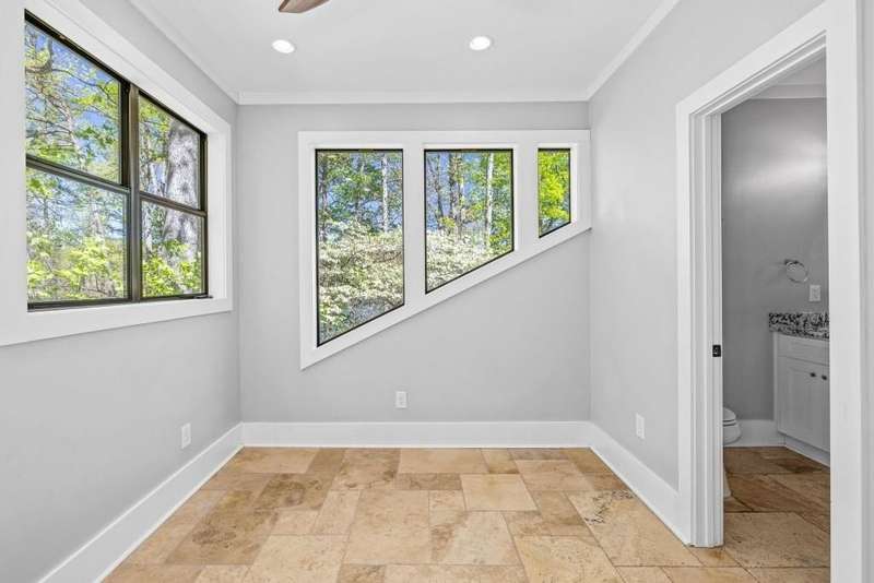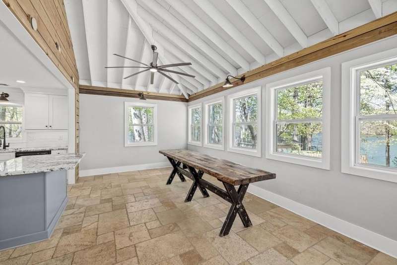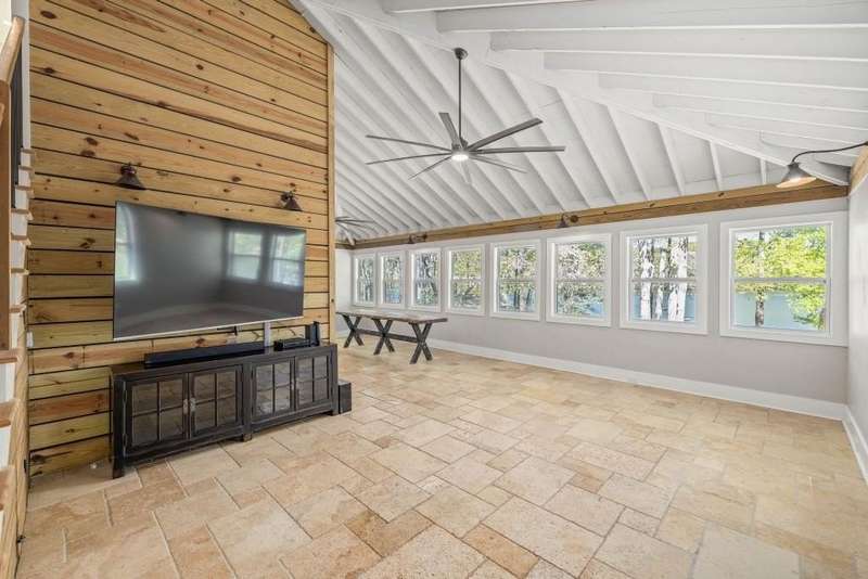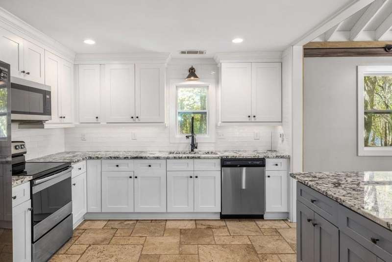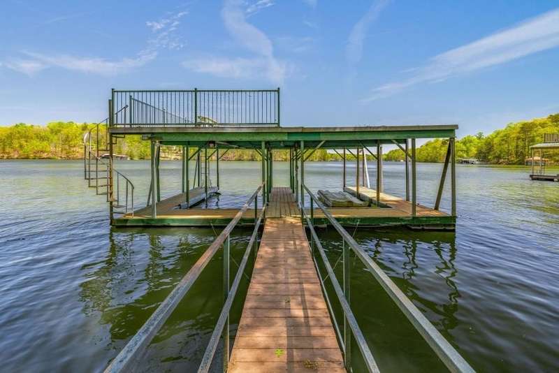 Beautifully renovated and inviting, this lakefront home is situated along the shores of Lake Lanier, offering breathtaking big-water views and a gentle, short walk to a deep-water double-slip dock. Located on a peaceful private road, this serene retreat blends comfort and style with a vaulted, beamed ceiling and luxurious heated tile floors. The open-concept kitchen features granite countertops, a spacious island, and ample cabinetry and workspace-ideal for entertaining or quiet evenings at home. An abundance of windows flood the home with natural light and frame the stunning lake views, seamlessly bringing the outdoors inside. The main level offers two bedrooms and a full bath, while the entire upper level is dedicated to a private primary suite featuring a beautifully renovated en-suite bath with a custom-tiled shower. Just a short drive or boat ride to Chattahoochee Golf & Country Club, grocery stores, and only 5 miles from downtown Gainesville dining and entertainment.