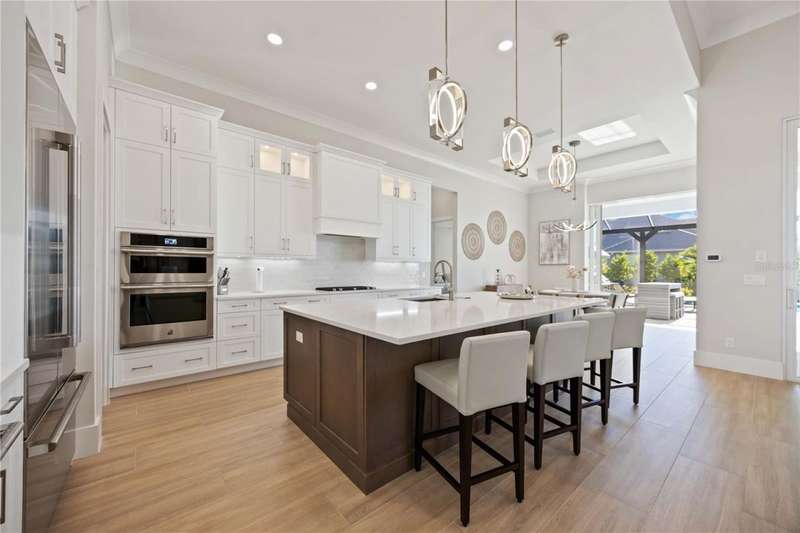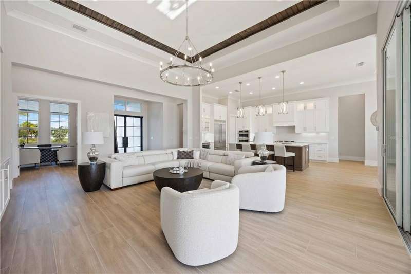 TURNKEY FURNISHED MODERN LUXURY HOME IN WATERSIDE AT LAKEWOOD RANCH...ON THE BIG LAKE!!From the moment you step inside, this home feels extraordinary, where timeless elegance meets modern design in one of Lakewood Ranch's most sought-after communities. Perfectly positioned in Waterside's premier lakefront enclave. This meticulously furnished 4-bedroom, 4.5 bath home furnished residence captures the essence of resort-style living with refined details, natural light, and seamless indoor-outdoor flow.The open-concept great room is anchored by a gourmet chef's kitchen featuring custom cabinetry, quartz countertops, premium stainless-steel appliances, and a stunning oversized island that invites both casual gatherings and elegant entertaining. Designer lighting, elevated ceilings, and porcelain tile floors create a bright, welcoming ambiance throughout. The primary suite is a private sanctuary offering spa-inspired finishes, dual vanities, a freestanding soaking tub, and two expansive walk-in closets. A separate home office/den provides flexibility for work or relaxation, while the additional bedrooms offer comfort and privacy for guests. Step outside to your private outdoor oasis, where a spacious covered lanai, summer kitchen, and sparkling pool with a spa make every day feel like a vacation. Whether hosting dinner under the stars or simply unwinding by the water's edge, this space embodies the Florida lifestyle at its finest. Additional features include impact-rated windows and doors, a tankless water heater, a three-car garage, and an interior laundry suite. Residents of Waterside at Lakewood Ranch enjoy an array of resort amenities such as pickleball and tennis courts, a fitness center, dog park, kayak launch, playgrounds, and vibrant community events...all within moments of Waterside Place's waterfront dining and entertainment. A home that feels as good as it looks, inspiring, and move-in ready. Schedule your private tour today and discover the true essence of luxury living.