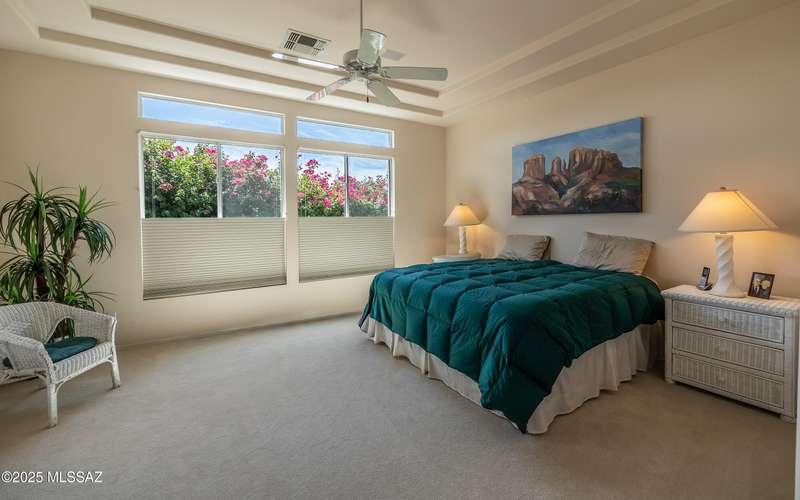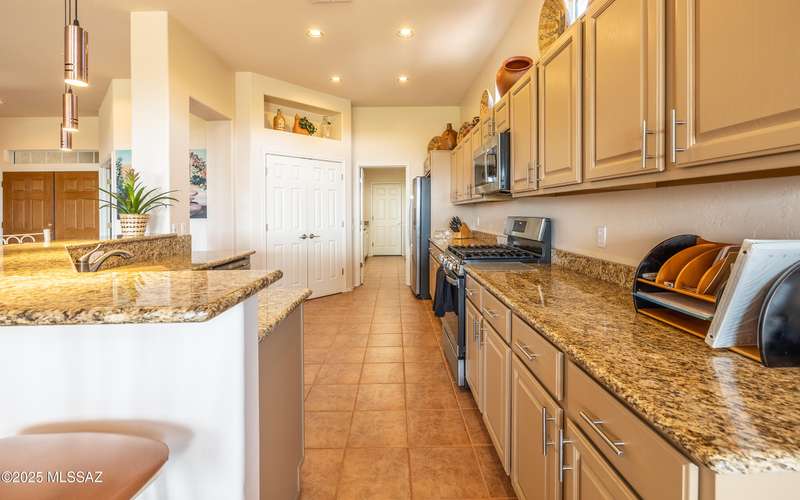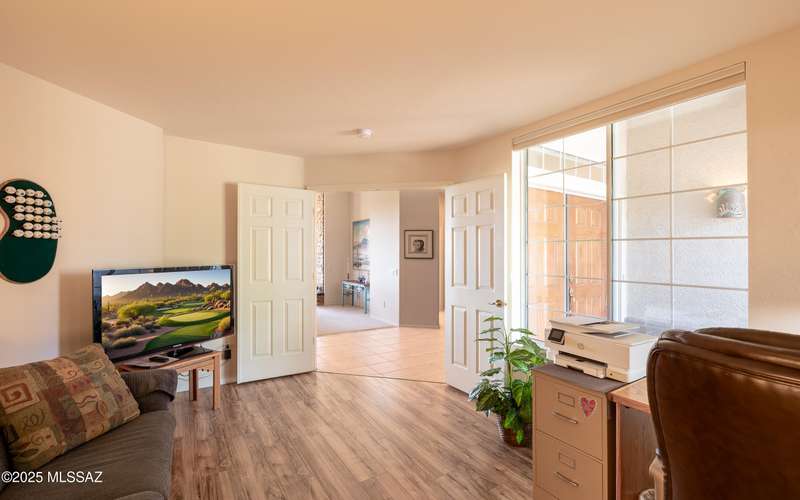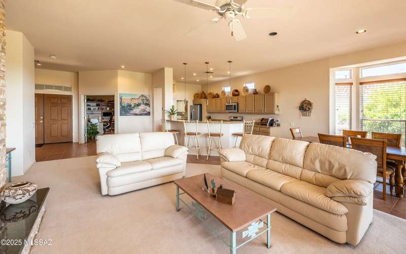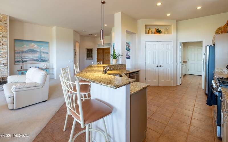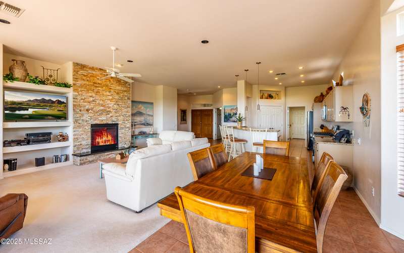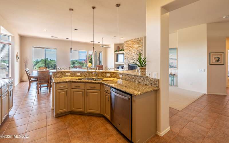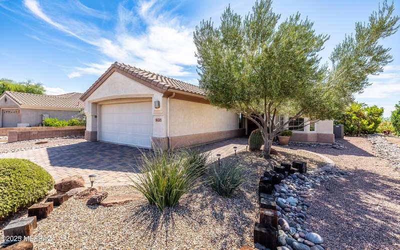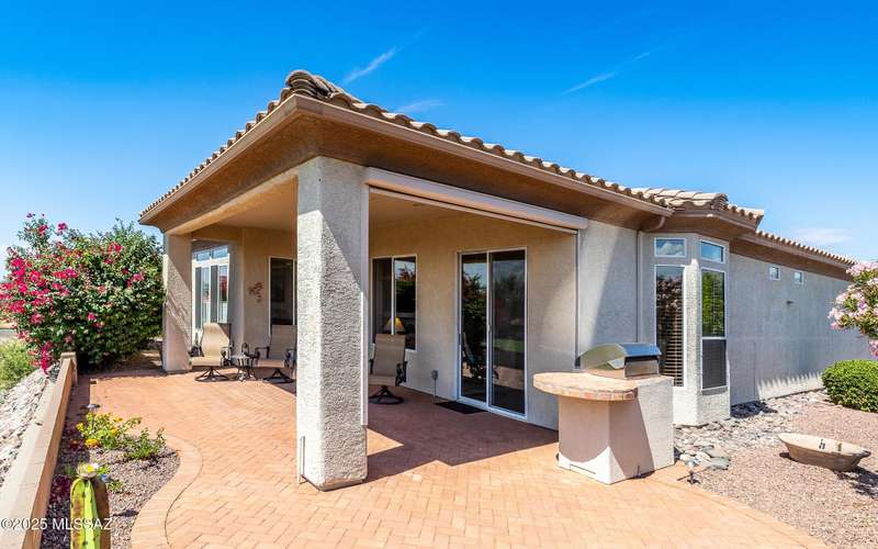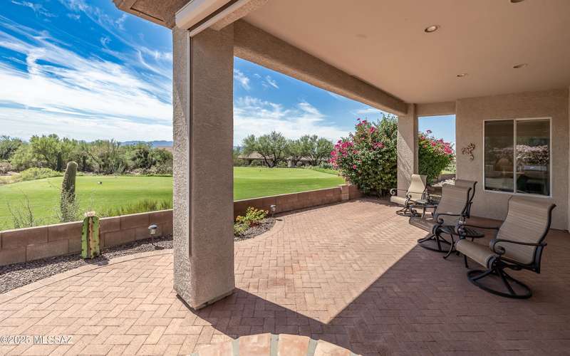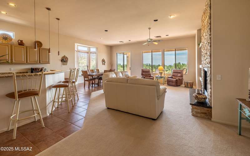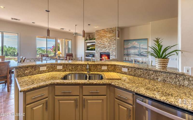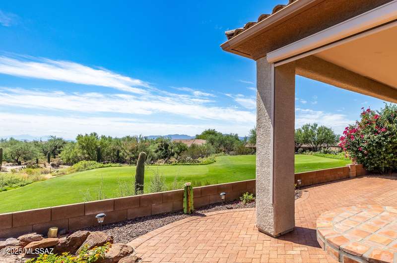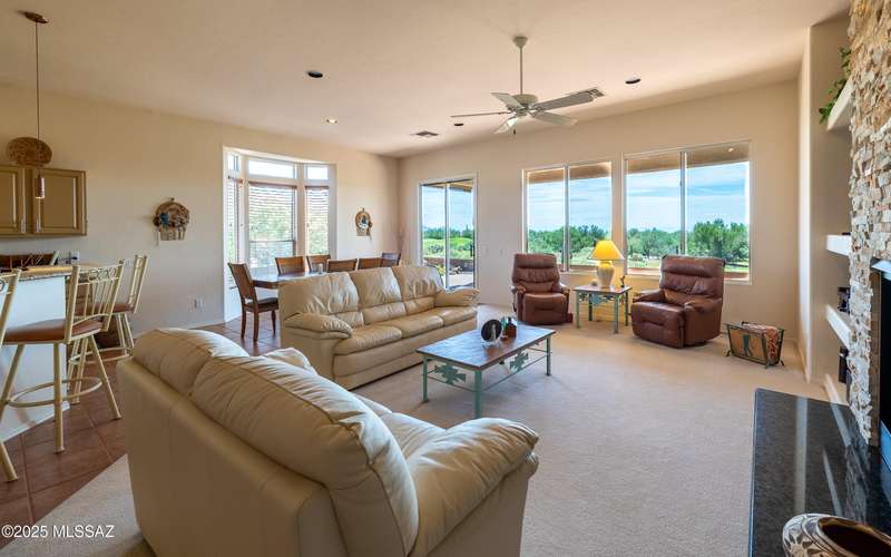 Beautiful golf course (7th tee boxes) & mountain views at this extended Hillsboro model. Extended laundry room & oversized den/office + extended dining area w/bay window. Guest bedroom also has bay window. Kitchen has lovely granite counters & stainless appliances. Lovely modern stacked-stone fireplace front - floor to ceiling. New roof underlayment installed roughly 2 years ago. HVAC systems replaced 1 year ago. Expansive brick paved patio/porch area w/outstanding views. Center post has been removed to enhance panoramic views. In 2024 all window screens were replaced. In 2025 drip irrigation box & valves all replaced. New wood-look flooring added in den/office. Home is well maintained. One of the most popular models - nicely extended - great views - new roof - new HVAC! Great Value!