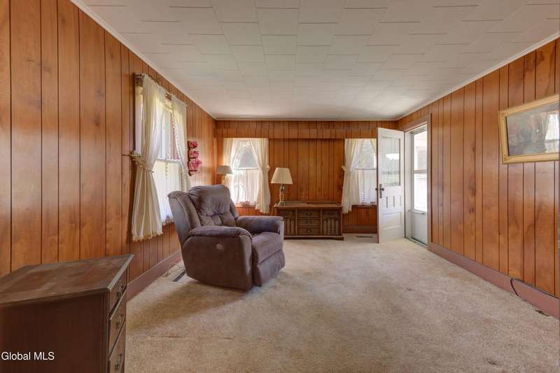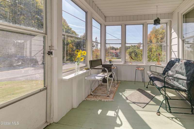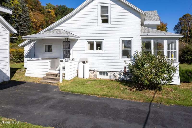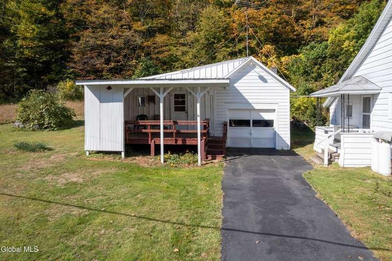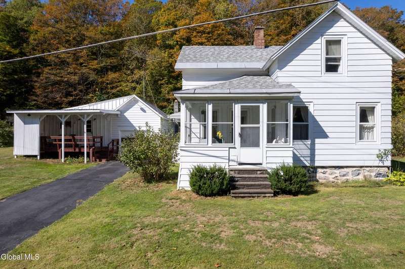 Discover the charm of country living in this lovingly maintained farmhouse on just under 5 acres in Mayfield. Nestled against a backdrop of mature trees, rolling hills and a trout stream, this inviting home offers peace, privacy, and room to roam-all just minutes from Great Sacandaga Lake.Step inside to find a cozy, light-filled interior where vintage character meets comfort. The welcoming kitchen features classic cabinetry and space for casual dining, while the living and dining rooms highlight warm wood accents, and built-in storage. The 3 seasons glass enclosed front porch fills the space with natural light.- perfect for enjoying morning coffee or unwind with friends while taking in views of the open meadow and wooded hillside.Upstairs offers three comfortable bedrooms, each with its own unique charm, and the spacious bathroom and laundry area provide ample built-in storage. Outside, you'll love the wide lawn, stone fireplace, and the detached garage with covered sitting area-ideal for hobby space or enjoying the fresh country air.Whether you're seeking a year-round residence or a peaceful weekend retreat, this home captures the best of simple living with a touch of nostalgia. Schedule your showing today and come see the charm and potential this home has to offer! Includes 3 parcels.