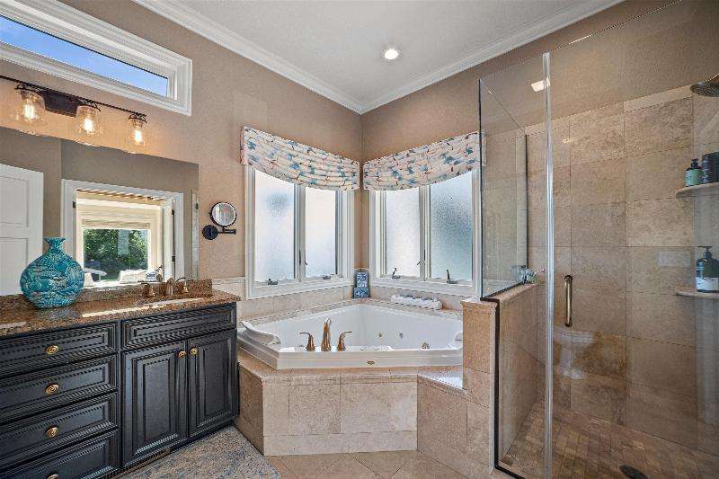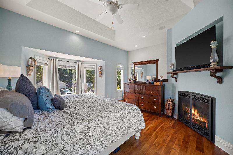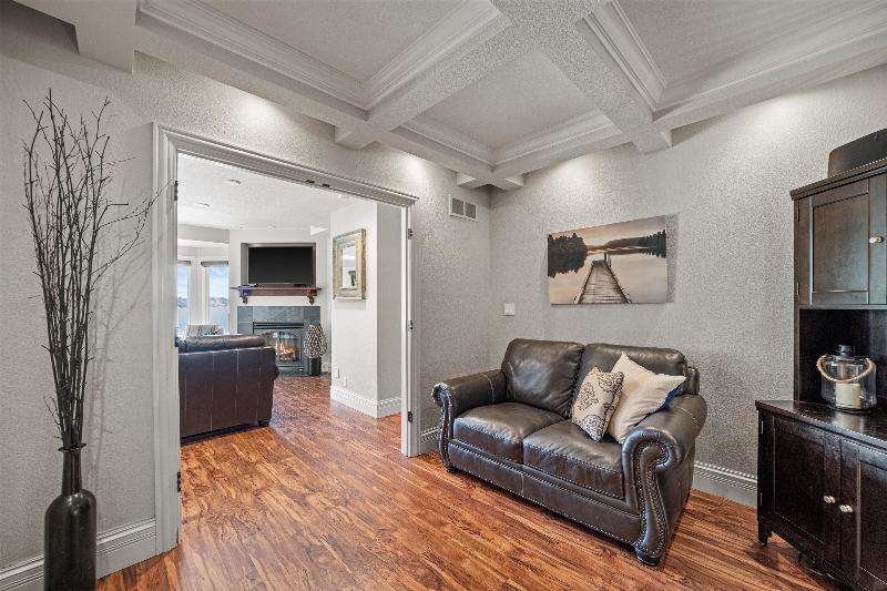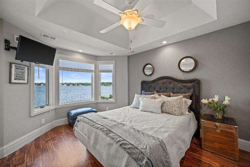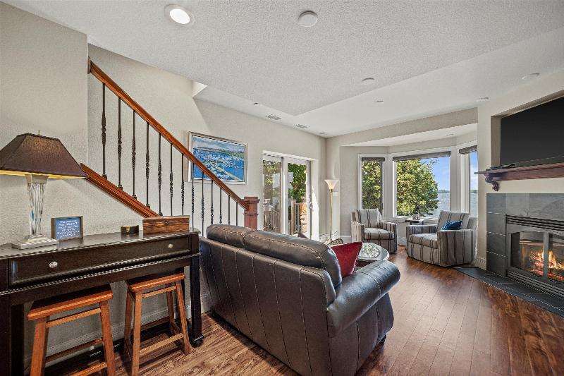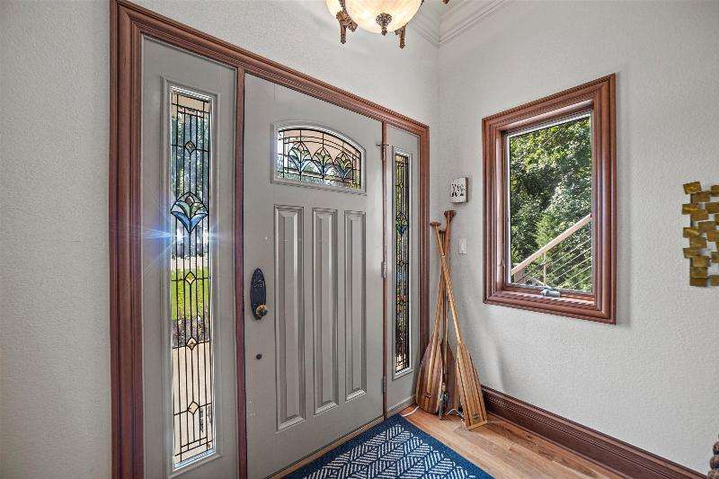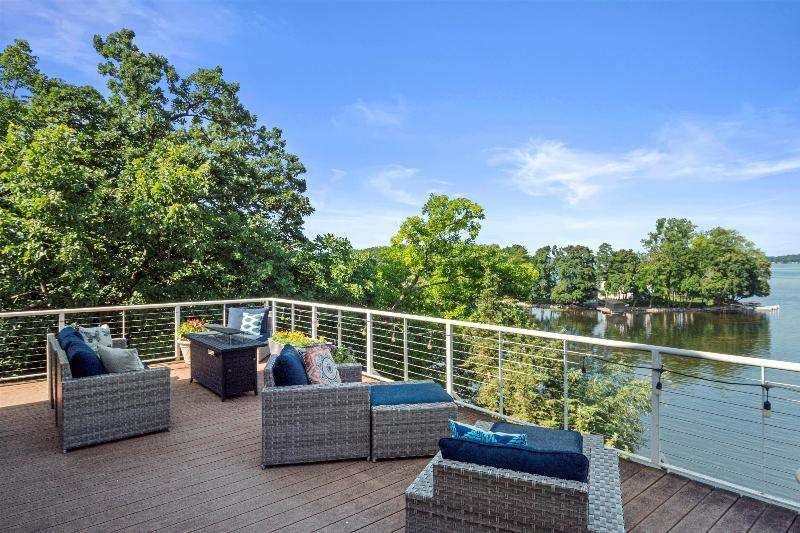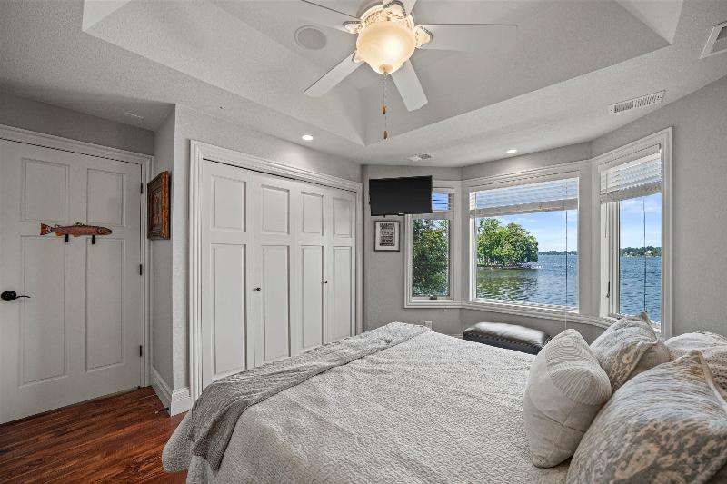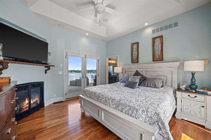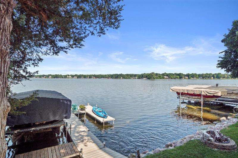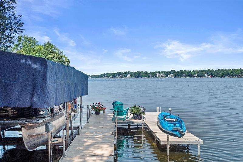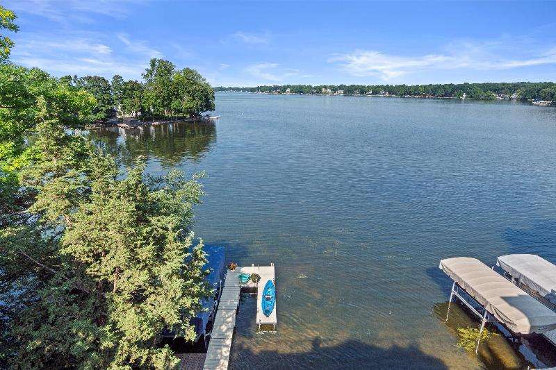 Okauchee Lake - breathtaking sunsets await! This beautifully maintained home offers 50 ft of swimmable frontage, 3 bedrooms, 2 full and 2 half baths, and a heated extra-deep attached 2.5-car garage with extra parking for up to 7 cars. The primary suite features a rooftop deck, on one of the highest viewing points on the lake, ensuite with walk-in closet, laundry, and glass walk-in shower. The walkout lower level includes heated floors, a gas fireplace, 2 bedrooms, full and half baths, and a second laundry. The kitchen impresses with custom cabinets, crown molding, updated appliances, and a dinette overlooking the lake. Wired inside and out for sound, with central vac, and a private pier included--all in low Town of Merton taxes and top-rated Arrowhead schools!
