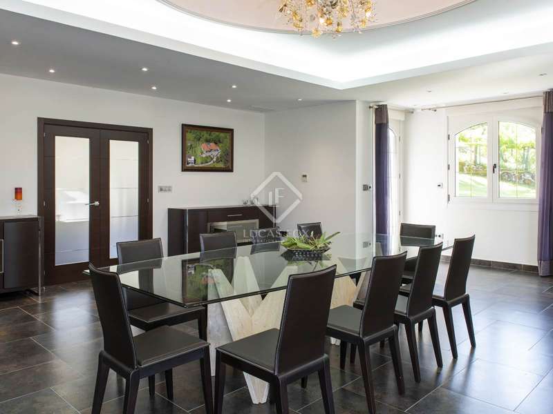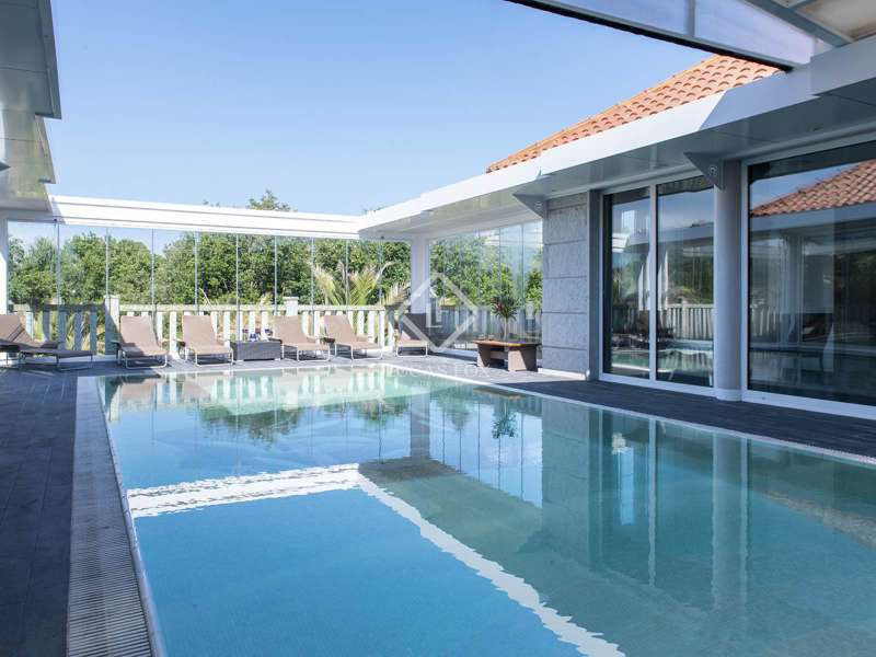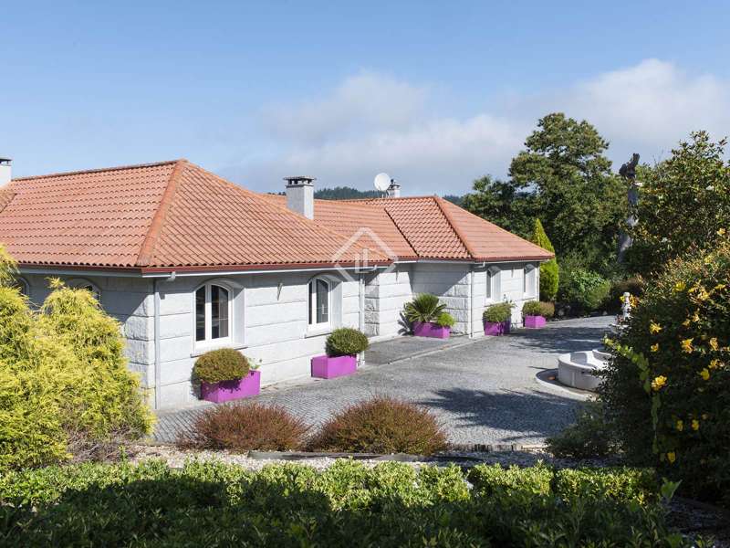 In the rural area of Noguiera de Ramuin, we find this fantastic well-built villa for sale with a unique design and an excellent layout. The property is located between the Ribeira Sacra and the city centre of Ourense. This villa was built in 2009, measuring a total of 883 m² with a private mature garden measuring a total of 2,886 m² in a natural and rural environment with beautiful views. The construction was finished with top quality materials and this property has solar panels, electric blinds, a centralized vacuum system, and surround sound throughout the interior of the home. The property consists of two floors, on the main floor we find the entrance hall which leads to the living area, to the left-wing we find the fully equipped eat-in kitchen, finished with good quality carpentry and well-maintained appliances, features plenty of natural light and views of the garden and direct access to it. In the same area, we access the dining area and living room, separated by a double-sided fireplace and featuring a unique design. From the living room, large sliding glass doors give direct access to a beautiful indoor swimming pool. The swimming pool is equipped with a motorized sunroof for the summer months. Towards the right-wing, we find the sleeping area, with three ensuite bedrooms and another bedroom. All feature direct access through sliding glass doors to the swimming pool. The built-in swimming pool is totally integrated into the house and has direct access from all the rooms and at the same level. It offers a changing area and bathroom. The floor beneath there is a large, well-finished parking area, a recreation area with a games room, a laundry room as well as a dressing room and a bathroom, and also the machine room. In the machine room you will find all the machinery for the solar panels and water reserves. The villa can be suitable for a family or a growing family looking to live in an area with a relaxed lifestyle and close by to the nice historic city of Ourense. The area known for its proximity to hiking trails, large lakes and is considered a natural paradise. Please contact us for further information.