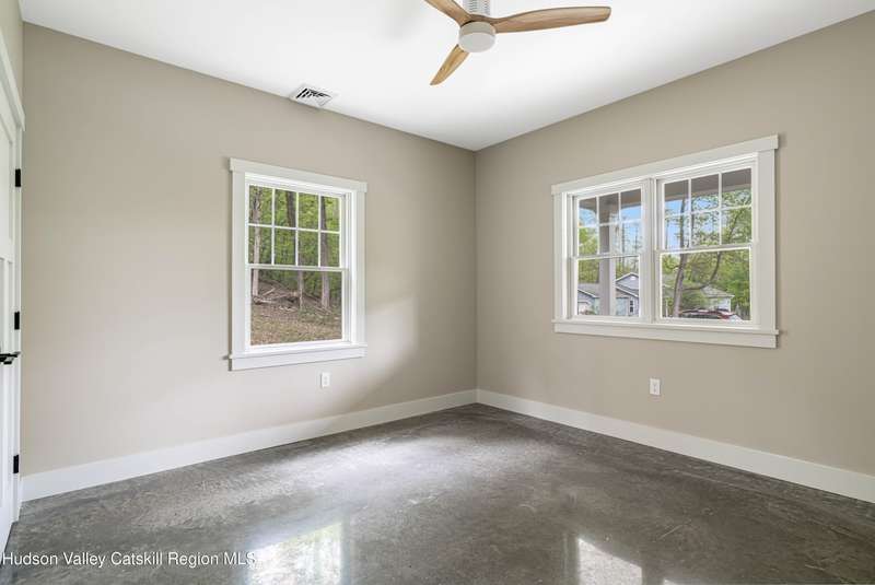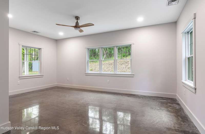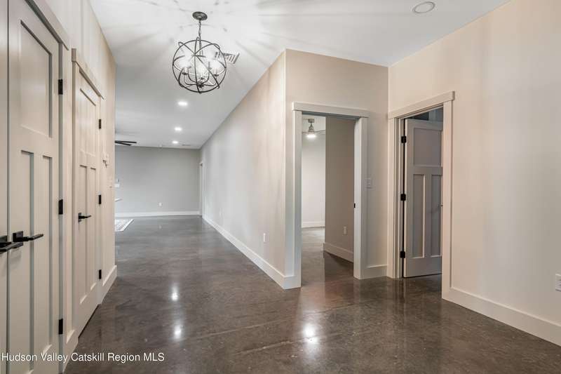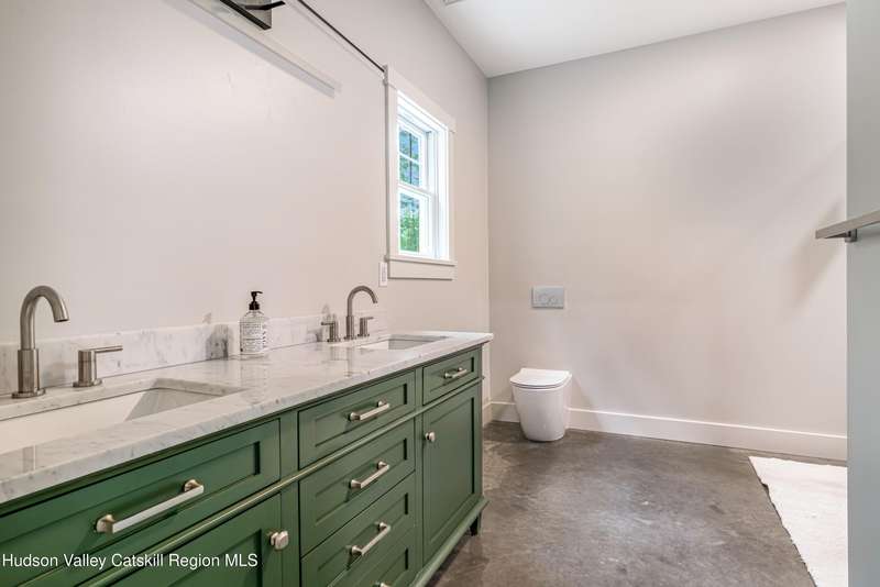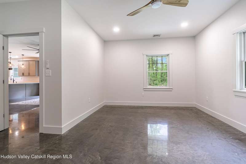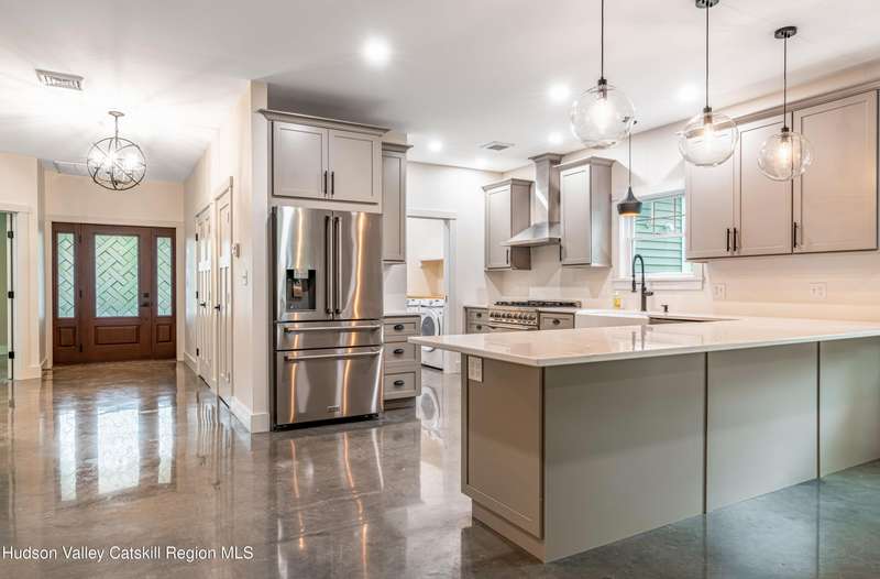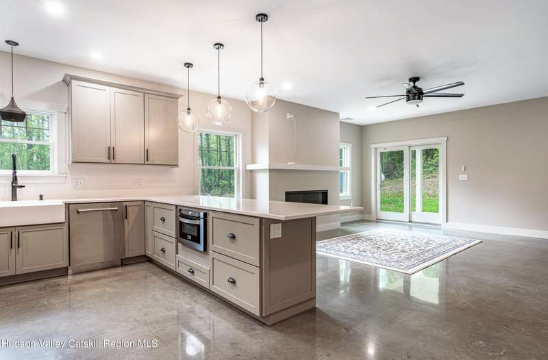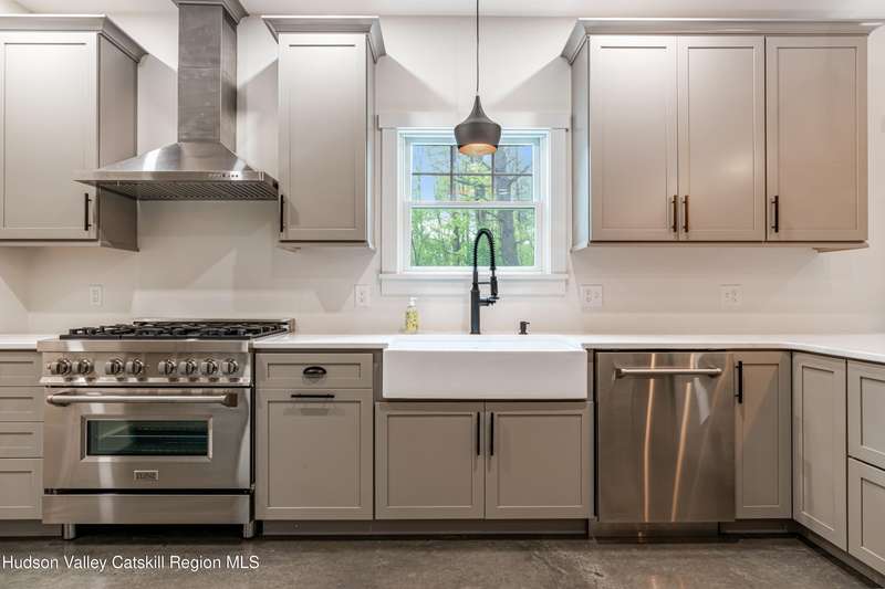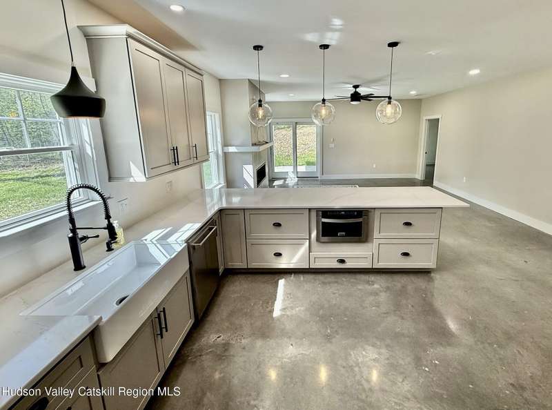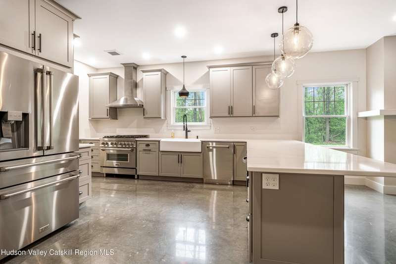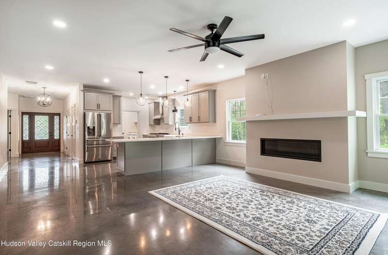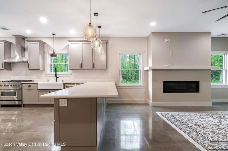 Traditional meets modern in this brand-new custom-built home nestled in the heart of Sleepy Hollow Lake, a perfect blend of high-end craftsmanship and relaxed lake living. From the inviting rocking chair front porch to the premium finishes throughout, no details were overlooked in this meticulously designed three bedroom, two bath property that stands head and shoulder above the rest. No expense was spared in the chef's kitchen, showcasing quartz countertops, a large island, farmhouse sink, and professional grade ZLine stainless steel appliances. The 36'' range has 6 burners and a convection oven. The sleek under-counter microwave is easy to access yet hidden from sight. Top-of-the-line custom solid wood shaker cabinetry includes a clever fold-out pantry, and an abundance of drawers provides unrivaled convenience. A separate laundry and mudroom features a front loader washer and dryer. An expansive great room with high ceilings centers around a built-in, modern linear gas fireplace, ideal for cozy evenings or entertaining guests. The open-concept layout is filled with natural light from oversized windows that bring the lush surroundings indoors. Sliders lead out to a covered back patio. Radiant-heated polished concrete floors throughout offer a sleek, modern look with cozy warmth underfoot. The spacious primary suite features a luxurious, modern ensuite bath with a custom tiled walk-in double shower and dual sinks. Two additional bedrooms share another modern full bath with a deep soaking tub and rainfall shower. Step outside to enjoy your oversized, level double lot, a serene half acre. There's plenty of room for a pool! The paved driveway leads to a two-car garage and utility room, all with radiant heated floors. This quieter section of Sleepy Hollow features larger lots and a more open feel. Lake access is right nearby, or take a quick ride to the main lakefront recreation area, where a sandy beach, diving dock, marina, expansive pool, clubhouse, and decks overlook the lake and the Catskill Mountains. Built to last, the home features state of the art heating and cooling, Navien condensing boiler provides radiant heat throughout while the Heil AC heat pump provides energy efficient central air as well as a redundant heat source. All the Shaker-style doors are solid wood. Energy-efficient windows are solid wood interiors with aluminum clad exteriors. Sleepy Hollow Lake is more than a destination, it's a lifestyle. Enjoy amenities such as multiple clubhouses, tennis courts, hiking trails, playgrounds, and year-round community events in a peaceful, resort-like setting. Don't miss your opportunity to own this exceptional home in one of the Hudson Valley's most sought-after lake communities.