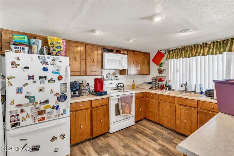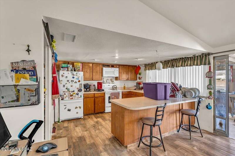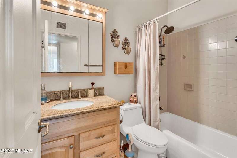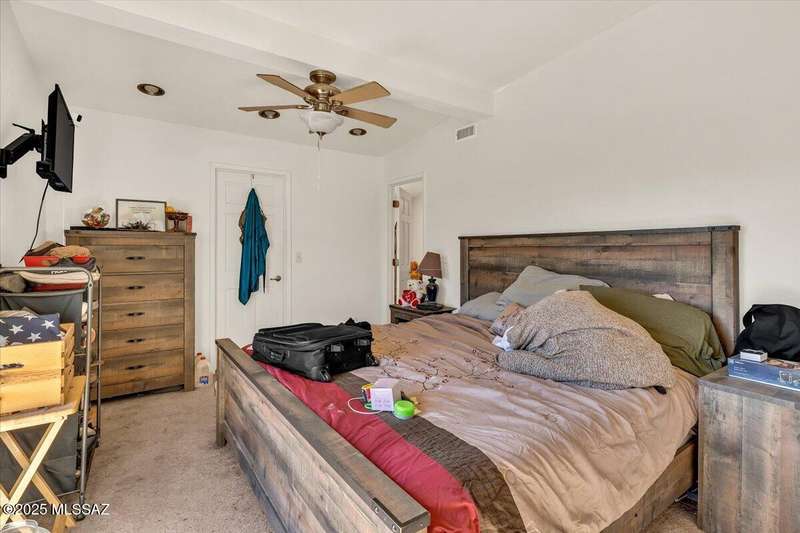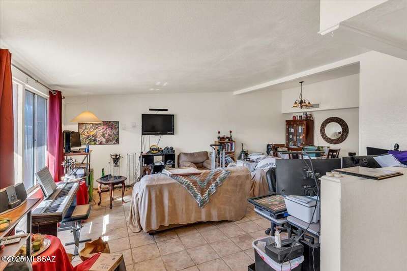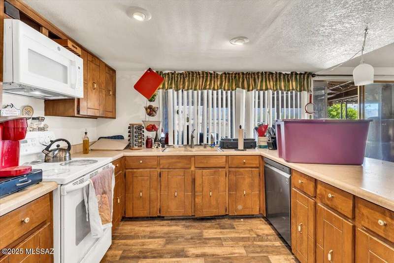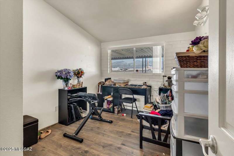 Discover this 3-bedroom, 2-bathroom home nestled on a large lot in the sought-after Hidden Hills neighborhood of Tucson with no HOA. Enjoy beautiful mountain views from your backyard featuring a pool, screened-in patio, and built-in bar -- perfect for relaxing or entertaining. The primary suite offers a jetted tub for unwinding after a long day. With ample storage sheds and plenty of outdoor space, this property has room for all your needs. Home does need some TLC, giving you the opportunity to add your own personal touch and create the home of your dreams. Pool will need to be replastered.