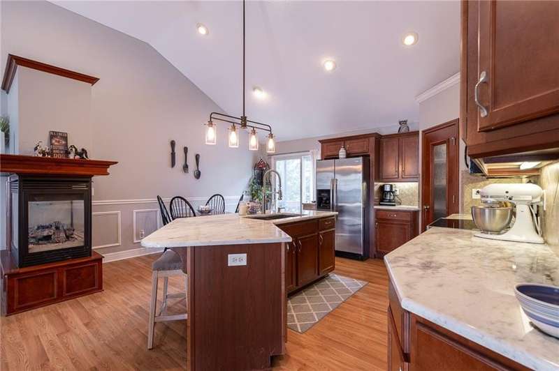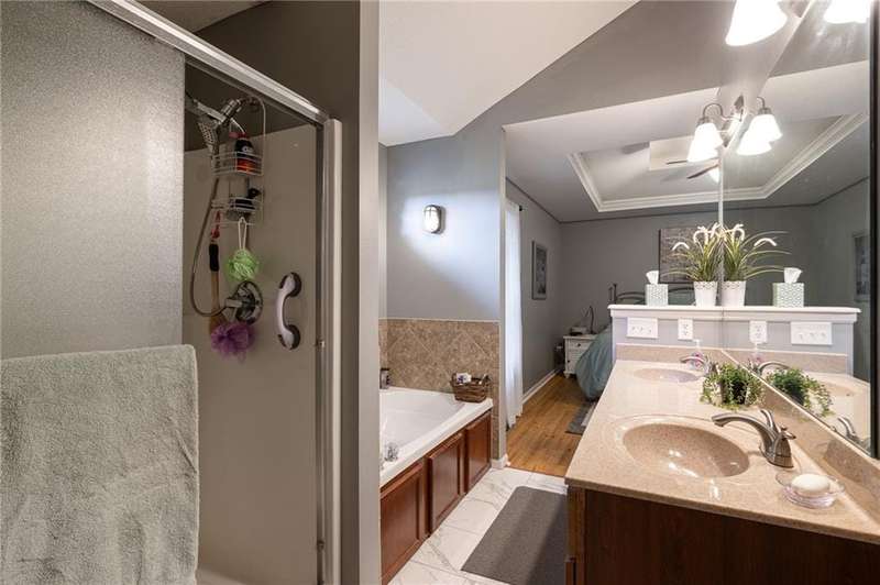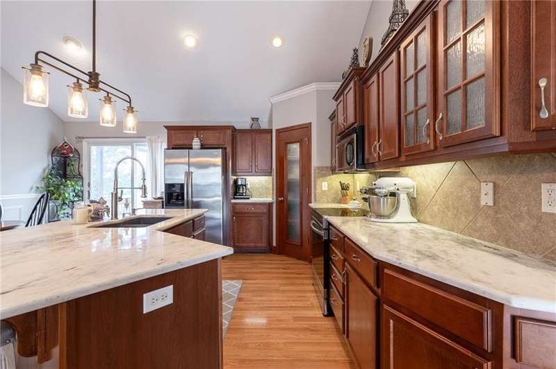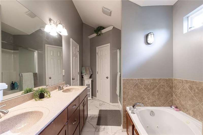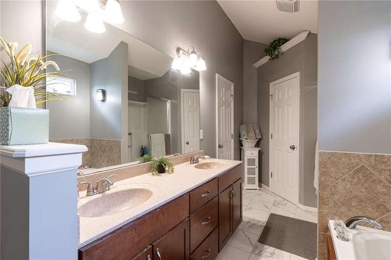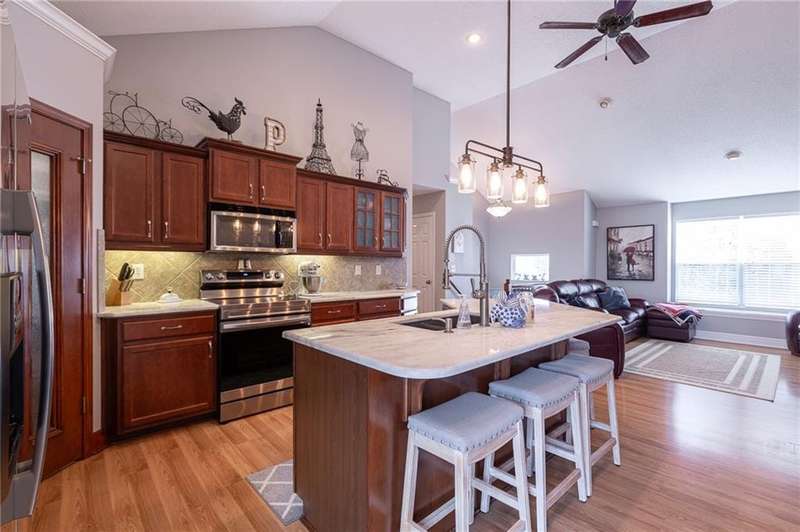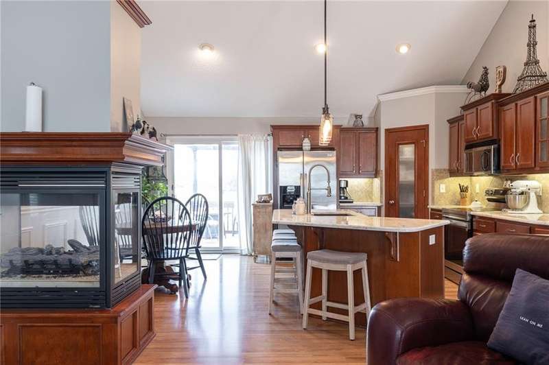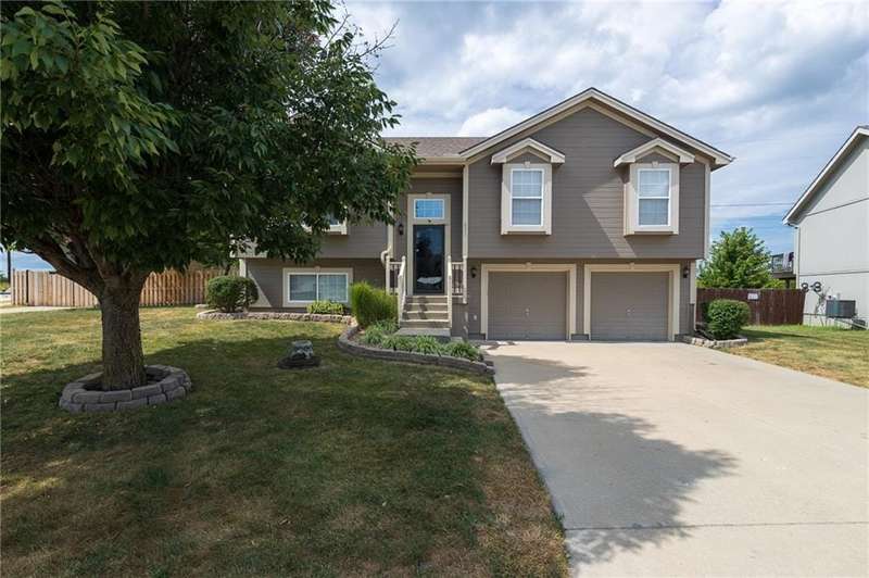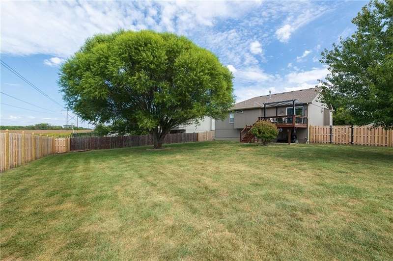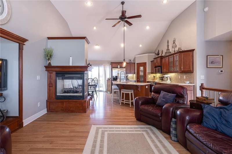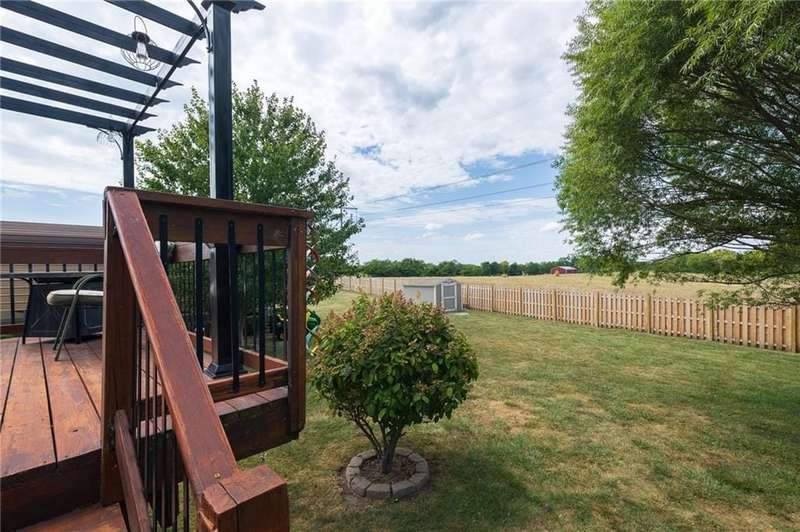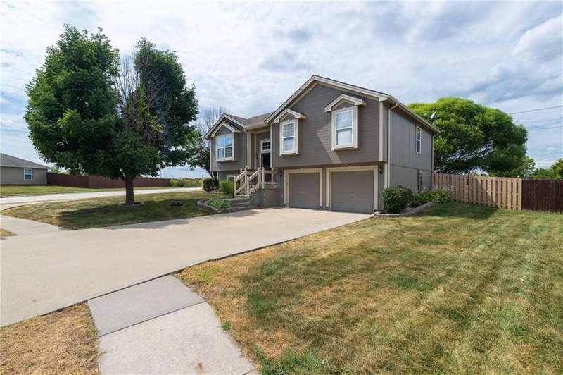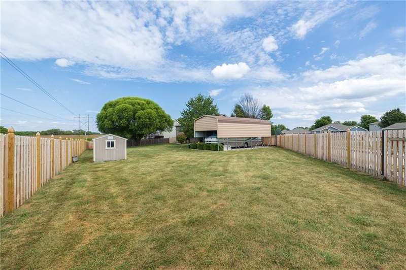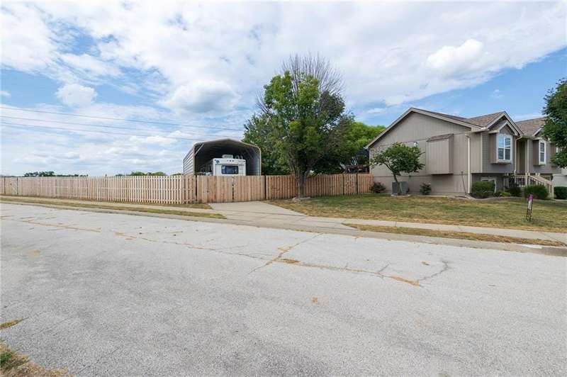 Welcome to this formal model home perfectly situated on a spacious 1/2 acre corner lot backing to peaceful farmland. Designed with families in mind, this property offers a newly built six-foot shadow box privacy fence with reinforced metal gates, a third driveway and a 16x40 carport ideal for RV parking- plus a shed for all of your lawn equipment and storage needs. Inside, you will find a bright and open floor plan featuring a large kitchen with a granite island, pantry, and ample cabinetry, seamlessly flowing into the dining area and living room with a cozy see-through fireplace. Luxury vinyl plank flooring enhances the main level, while tiled bathrooms add a touch of style and durability, plus a large main floor laundry room with built ins. The primary suite offers a walk-in closet, a spacious bathroom with double vanities, a large tiled tub, and a second closet for extra storage. A large recreation room with a half bath provides space for play, hobbies or even the option to create a fourth bedroom. Step outside to enjoy the private fenced backyard with mature trees and a deck overlooking serene views- perfect for morning coffee or family gatherings. The deep garage easily accommodates two vehicles and a workshop area, making it as functional as it is inviting.