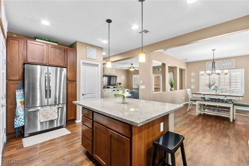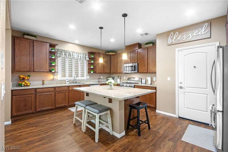Stunning two-story home featuring 5 spacious bedrooms, 3 full bathrooms, a den/office, large loft, and a 3-car garage. Located in the quiet and highly desirable neighborhood of Providence. Offering nearly 3,000 sqft of living space on a 5,227 sqft lot, this home has been beautifully upgraded throughout. The gourmet kitchen boasts granite countertops, an oversized island, ample cabinetry, and stainless steel appliances (all included). Enjoy upgraded wood laminate flooring throughout the main living areas and most bedrooms, along with a well-designed floor plan that includes a generously sized bedroom on the first floor as well as a full bathroom. The layout is functional and inviting, with modern finishes that elevate the overall aesthetic. Conveniently located near top-rated schools, parks, shopping, and dining, with easy access to the 215 freeway. Must see it in person! Schedule a tour at your convenience! Virtual tour available at your fingertip.