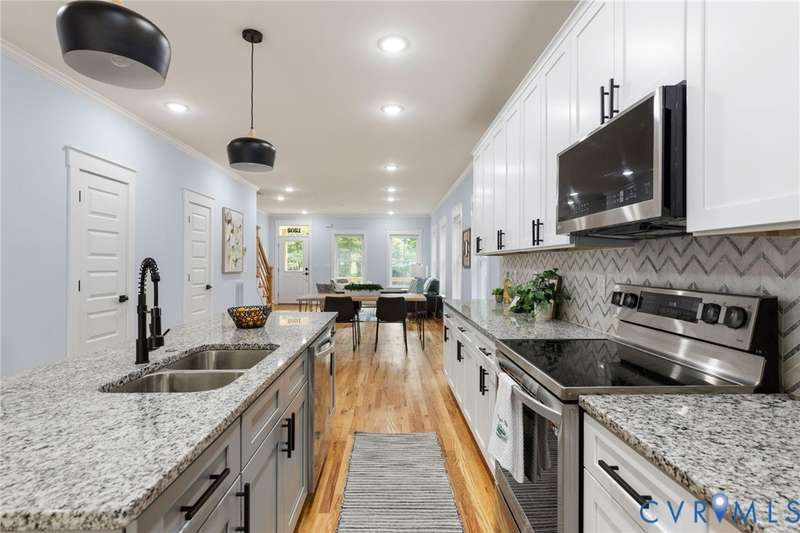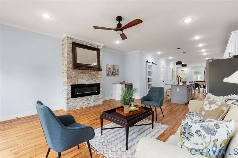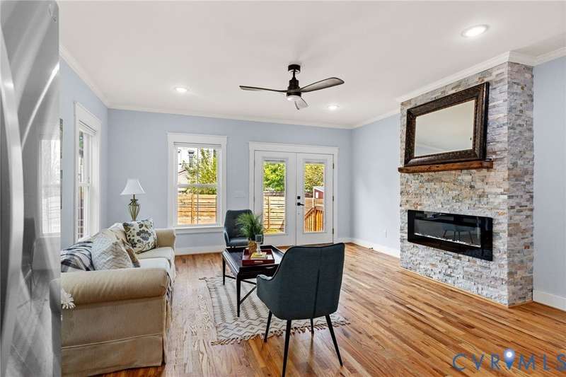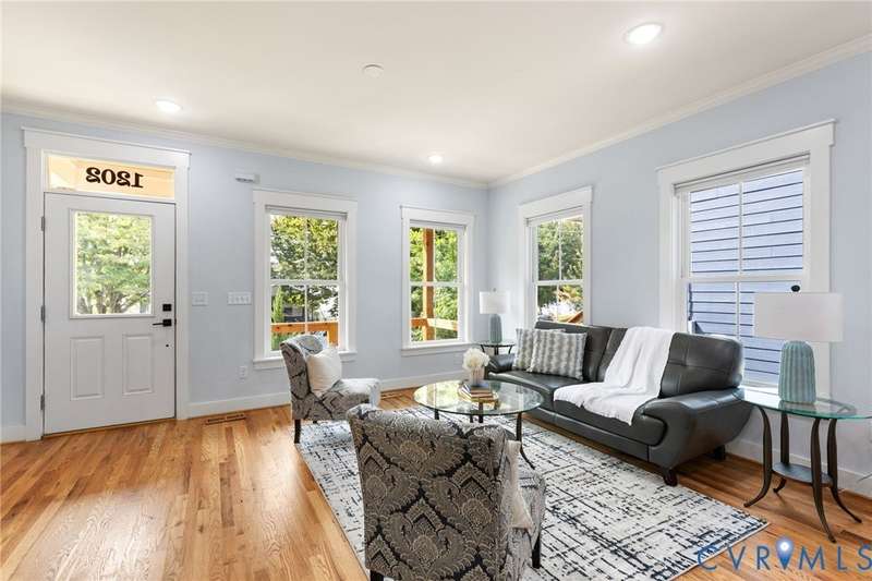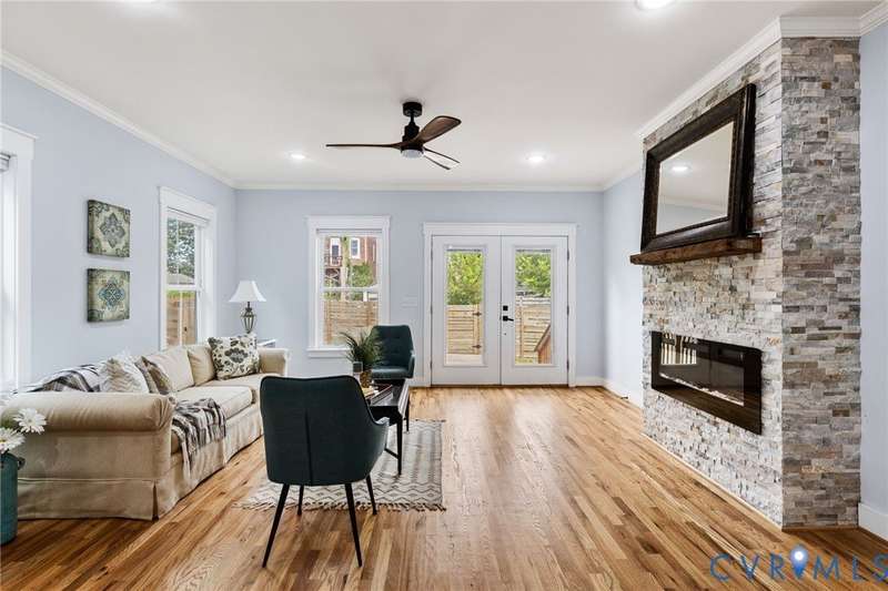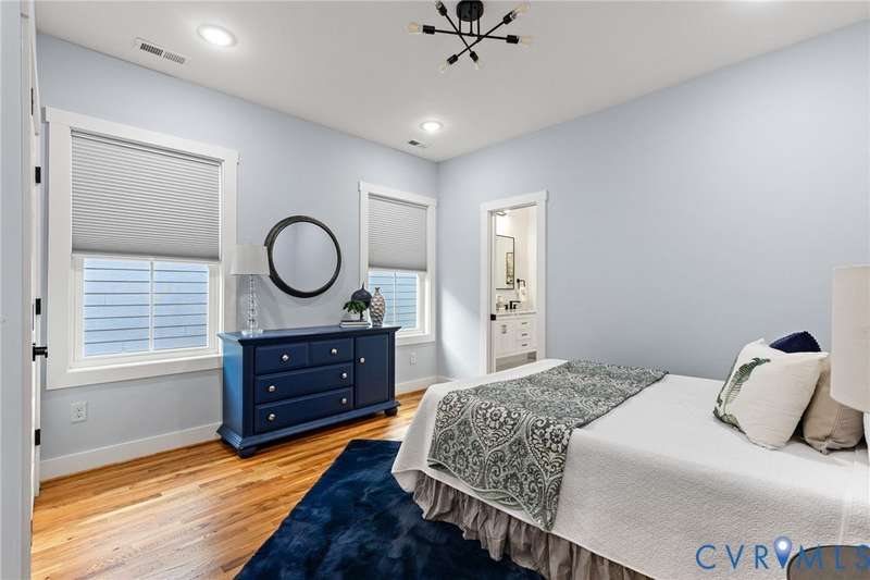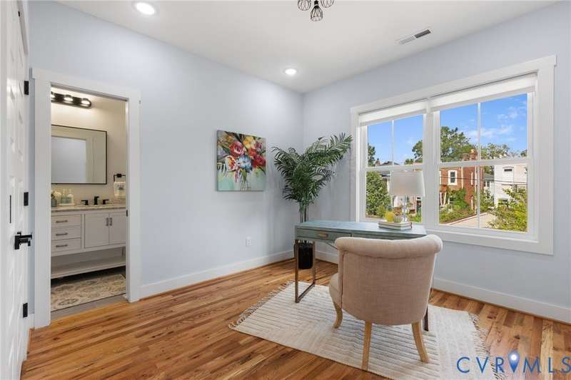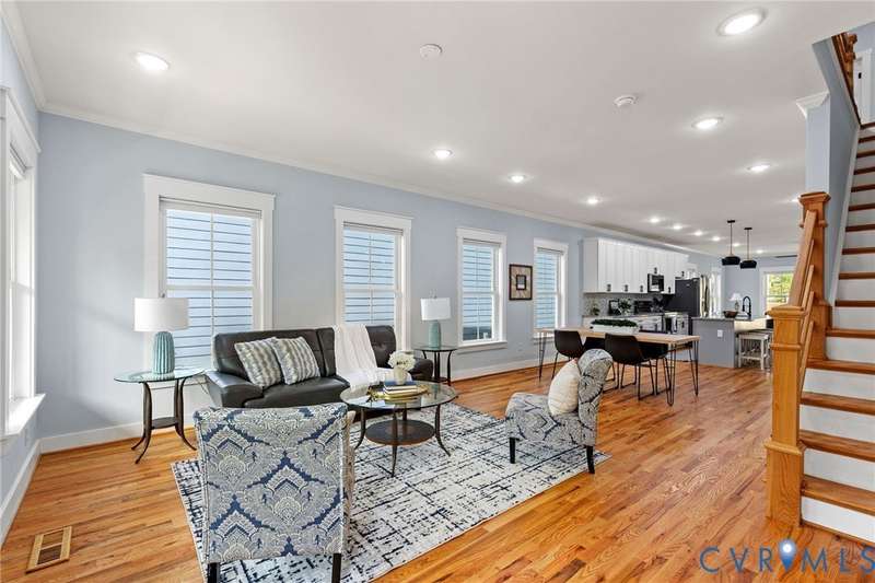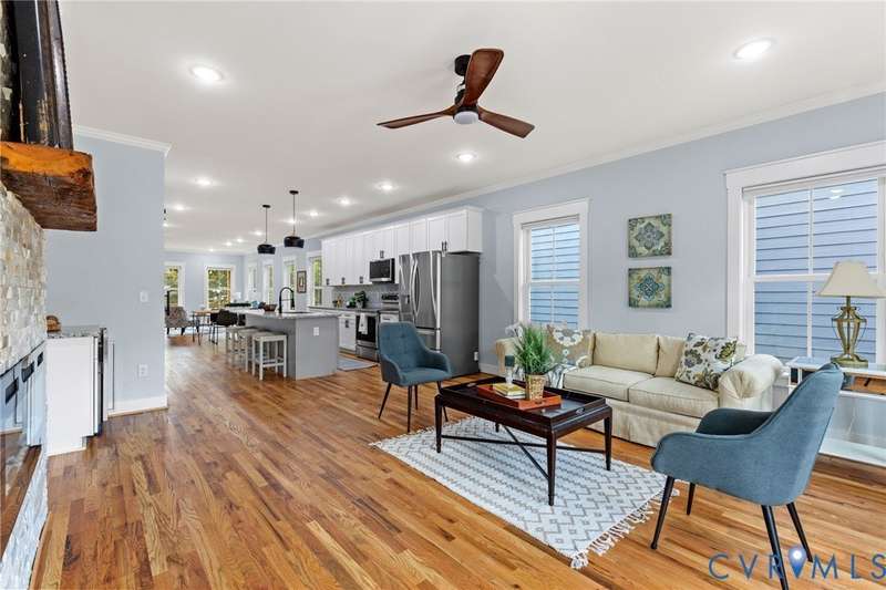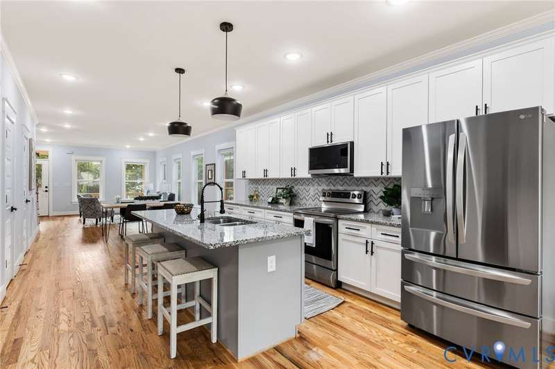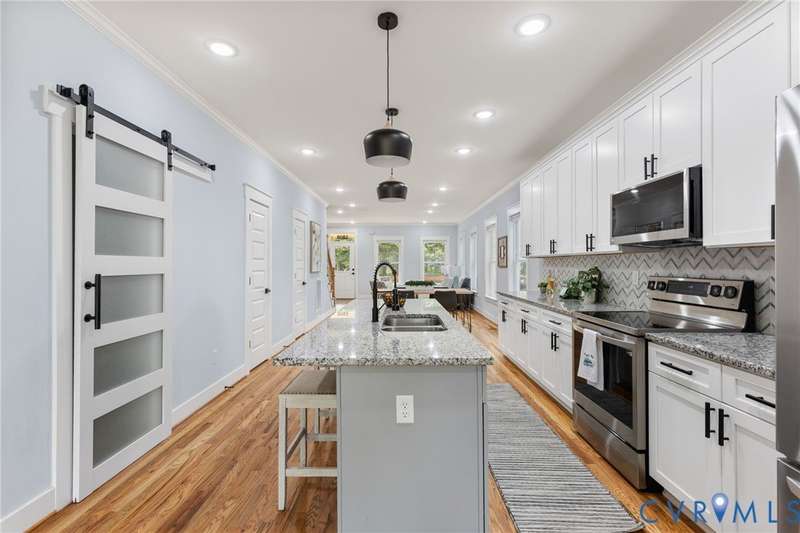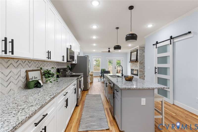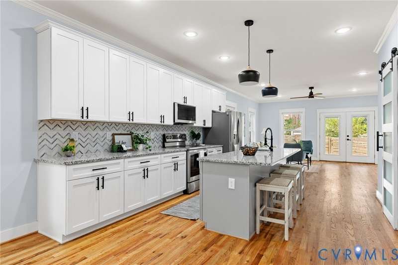 Priced below recent appraisal, this property offers the best of everything: a great home on a quiet street in a thriving neighborhood! A short walk to the area's famous parks, restaurants, co-working, ice cream, yoga, & so much more, this is the ideal spot to call home. This 2023 gem blends modern style w/Church Hill charm from the morning porch to the custom patio. Inside, experience an open layout w/ hardwoods & 9ft ceilings throughout, loaded w/natural light from ample windows & 4-zone lighting. Head to the sleek kitchen to find soft-close cabinetry, granite countertops, custom backsplash, spacious island, stainless appliances, barn-door pantry, & stylish finishes. Upstairs is a spacious primary w/ a walk-in & ensuite bath & matching finishes. Down the hall, past the convenient 2nd floor laundry, are two more bedrooms, connected to an impressive Jack-&-Jill bath. Back downstairs, head to a large rear living area w/stone fireplace & built-in wine fridge, & through the double-entry doors to your backyard, ideal for entertaining or quiet evenings in, complete w/custom ground-level patio deck, gated privacy fence, gated pet run (or garden!), & parking. With modern features & flexible design, this home is a true Church Hill treasure!