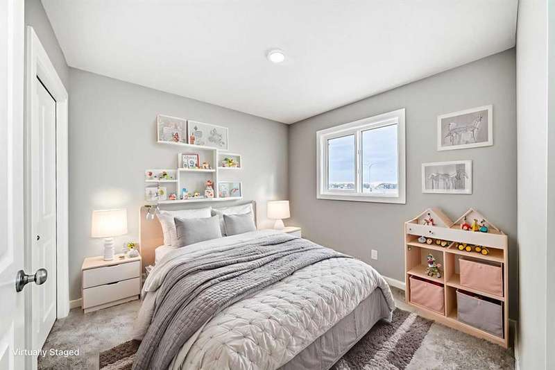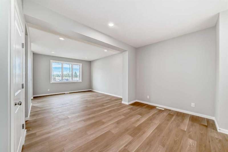 ON A CORNER LOT WITH NO NEIGHBOURS TO ONE SIDE, THIS HOME FEELS LIKE BREATHING ROOM. 1,608 square feet of balanced design—bright where you want it, private where you need it. The main floor opens with intention: a POCKET OFFICE tucked near the entry, a living area that feels natural to gather in, and a kitchen built for everyday rhythm. The ISLAND WITH BREAKFAST BAR draws people in, while QUARTZ COUNTERS and a CHIMNEY HOOD FAN over the electric range add quiet refinement. A window over the sink catches morning light from the east, and a rear deck off the mudroom makes stepping outside effortless. FRONT YARD SOD IS ALREADY IN, so there’s nothing left to finish—just move in and start living. Upstairs, a BONUS ROOM sits between the bedrooms, offering separation without distance. The master is calm and bright, the laundry’s upstairs (where it should be), and the layout just flows. In the basement, a SEPARATE SIDE ENTRY and bathroom rough-in keep future options open—whether that means guests, income, or expansion. And then there’s the setting. RANGEVIEW BY GENSTAR IS DESIGNED AROUND CONNECTION and calm—tree-lined boulevards, planned parks, and pathways that will eventually link every pocket of the neighbourhood. On this stretch of Bartlett Crescent, the street’s already quiet, the sun sets to the west, and the whole place feels like the kind of new community people will want to stay in. Everything’s finished, the keys are ready, and the timing couldn’t be easier. • PLEASE NOTE: Kitchen appliances are included, and will be installed prior to possession.