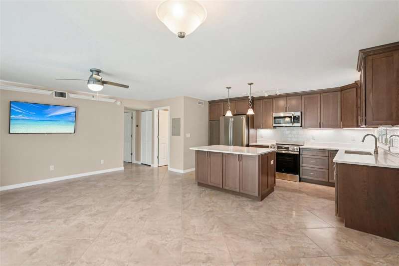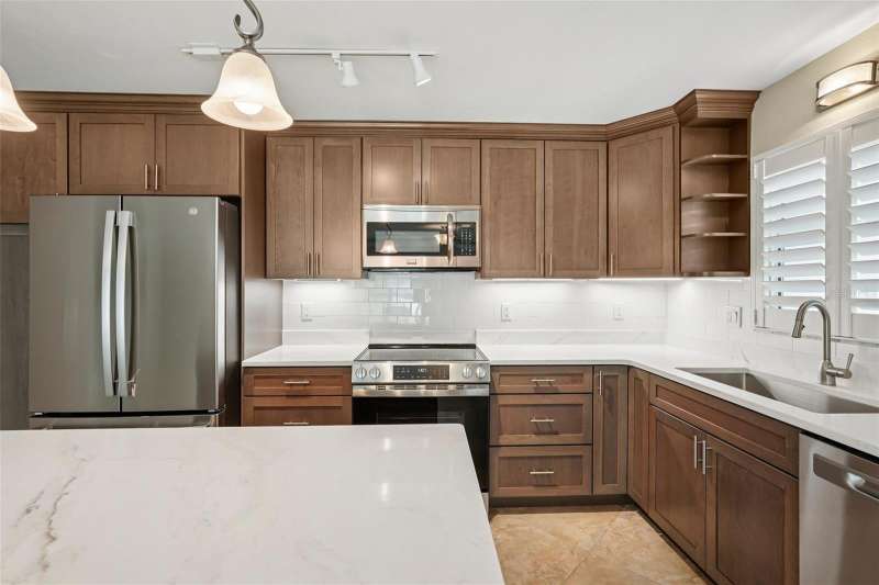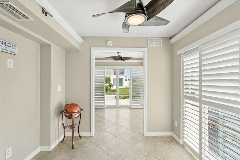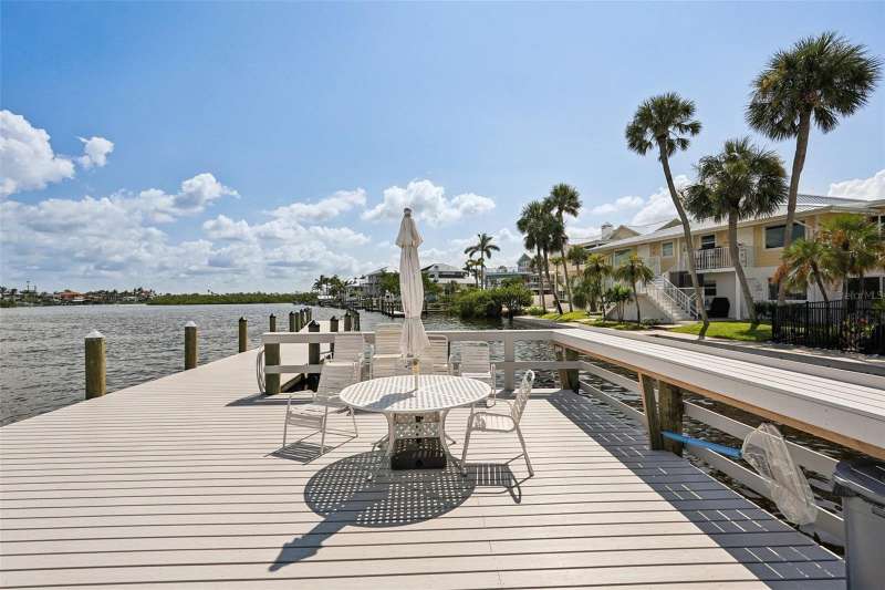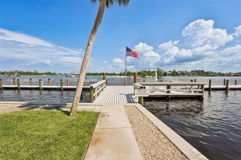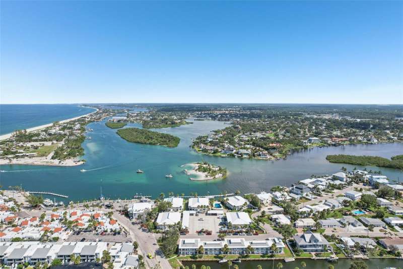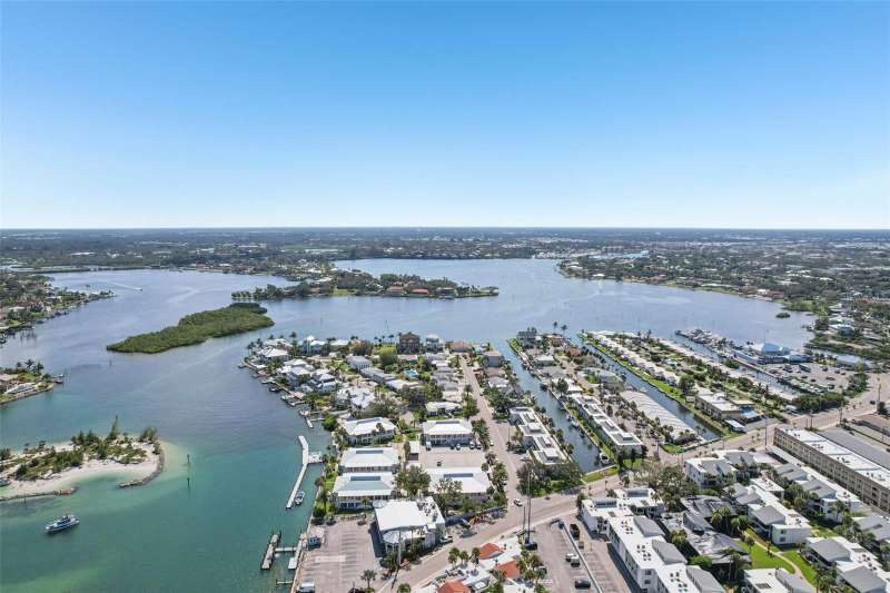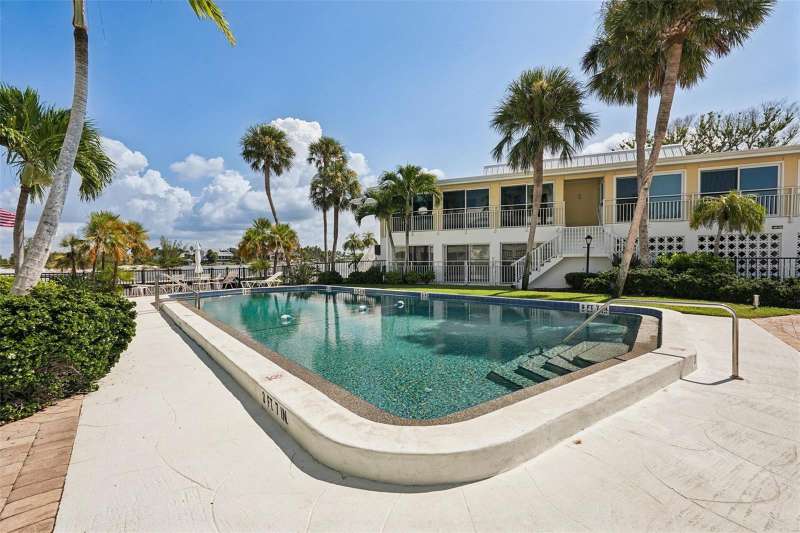 One or more photo(s) has been virtually staged. Enjoy the best of coastal living in this beautifully updated 2-bedroom, 2-bath condo on the coveted Island of Venice. With a private community dock, you can be out on the water and fishing in the Gulf within minutes. Plus, you'll love the peek-a-boo views of the Intracoastal Waterway right from your home. Inside, you'll find tile flooring throughout, all-new electrical and plumbing, hurricane-rated windows, and plantation shutters for a polished coastal feel. This new and modern kitchen boasts KraftMaid cabinets, quartz countertops, abundant storage, and a brand-new GE refrigerator, stove, and dishwasher. The spacious primary suite offers his-and-her closets, a cozy sitting area, and an updated en-suite bathroom with plenty of counter space. This waterfront community also features a sparkling pool and deeded beach access just steps away. Walk to the Crow's Nest for lunch or dinner, or spend the day on the sand—it’s all right at your doorstep. Your dream island lifestyle awaits—schedule your private showing today!