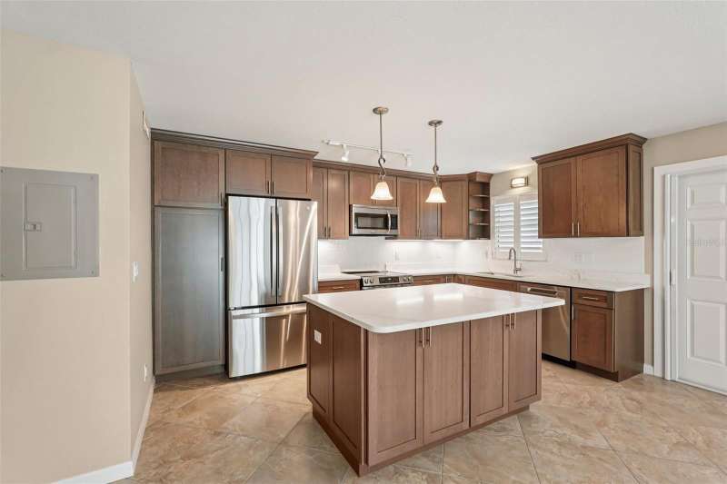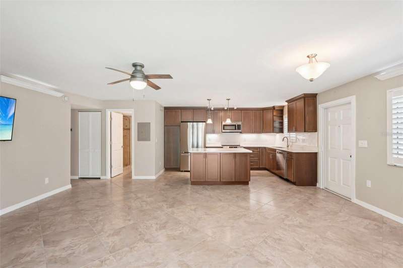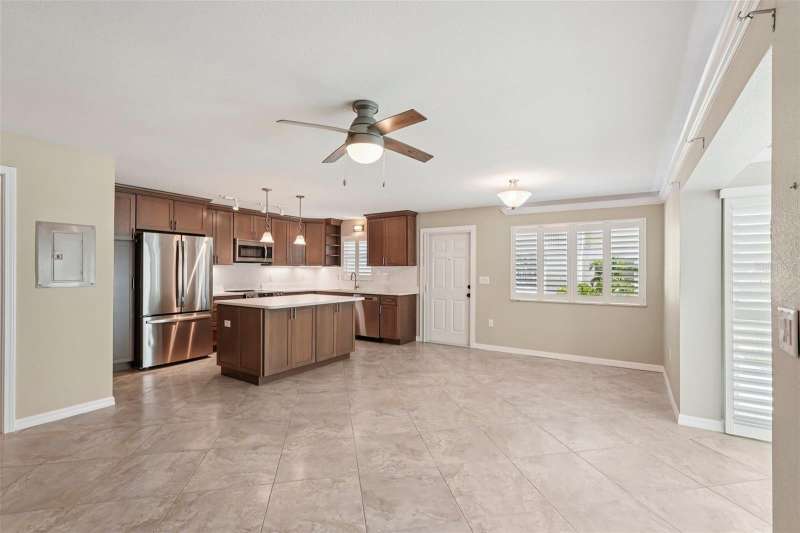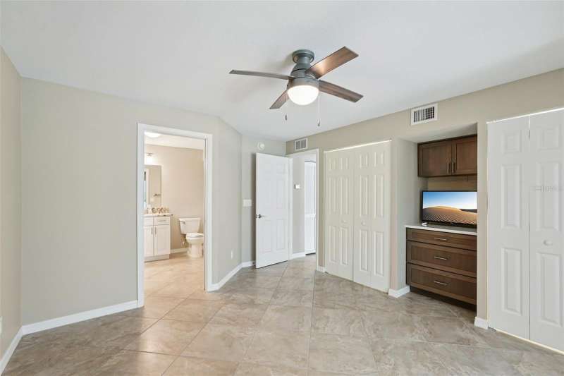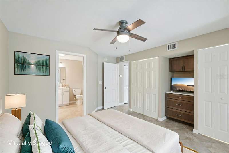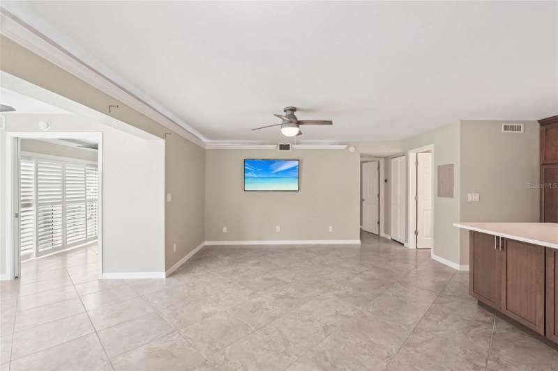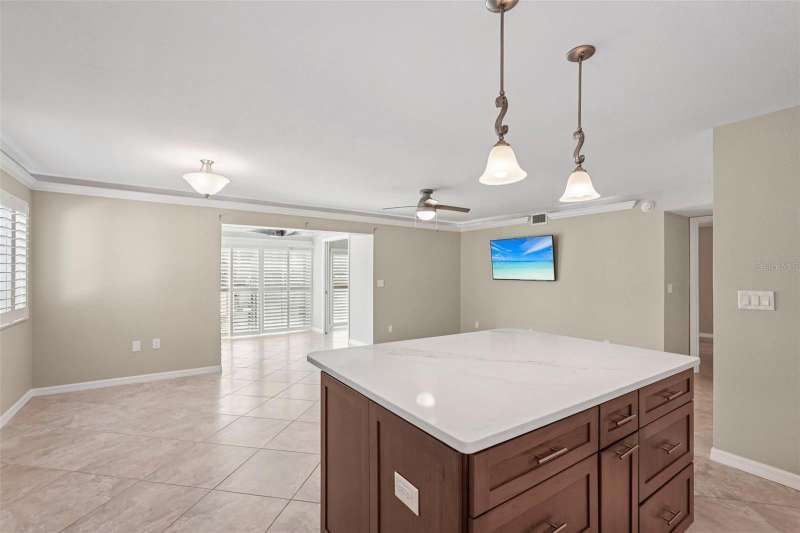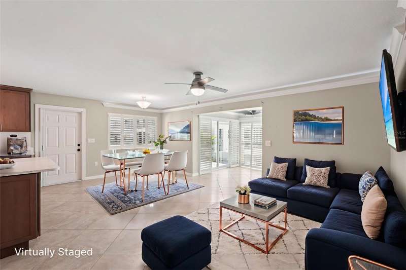 One or more photo(s) has been virtually staged. Enjoy the best of coastal living in this beautifully updated 2-bedroom, 2-bath condo on the coveted Island of Venice. With a private community dock, you can be out on the water and fishing in the Gulf within minutes. Plus, you'll love the peek-a-boo views of the Intracoastal Waterway right from your home. Inside, you'll find tile flooring throughout, all-new electrical and plumbing, hurricane-rated windows, and plantation shutters for a polished coastal feel. This new and modern kitchen boasts KraftMaid cabinets, quartz countertops, abundant storage, and a brand-new GE refrigerator, stove, and dishwasher. The spacious primary suite offers his-and-her closets, a cozy sitting area, and an updated en-suite bathroom with plenty of counter space. This waterfront community also features a sparkling pool and deeded beach access just steps away. Walk to the Crow's Nest for lunch or dinner, or spend the day on the sand—it’s all right at your doorstep. Your dream island lifestyle awaits—schedule your private showing today!