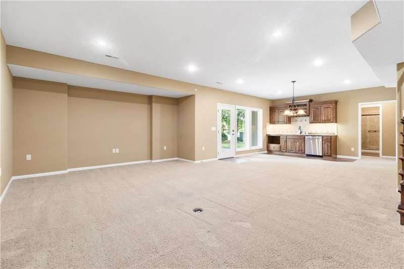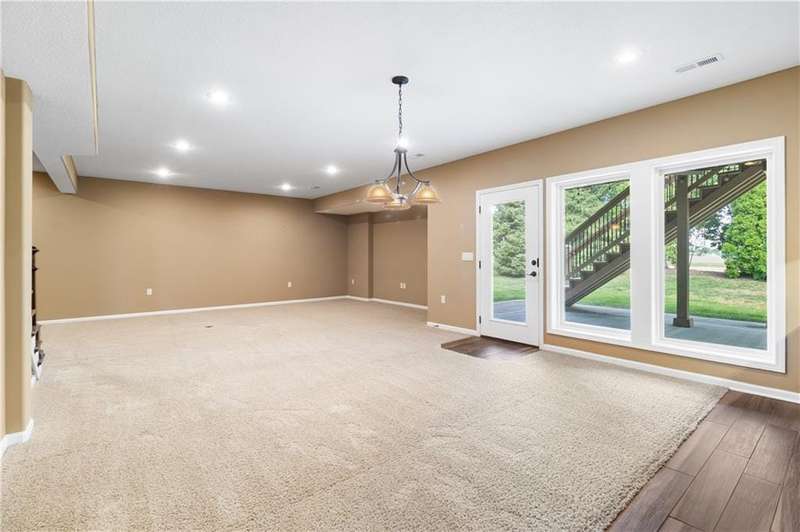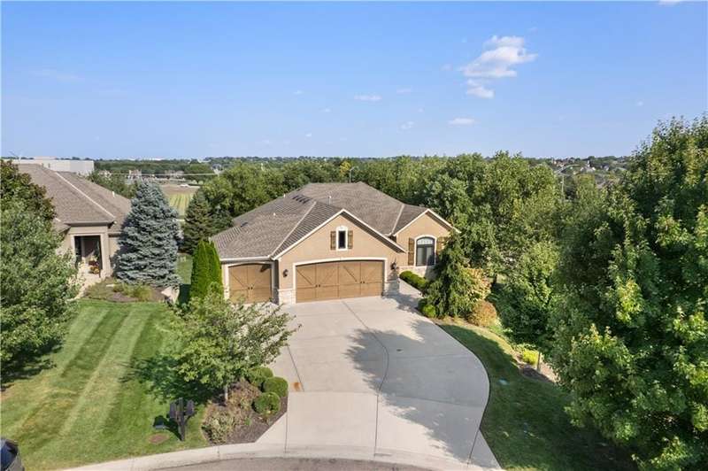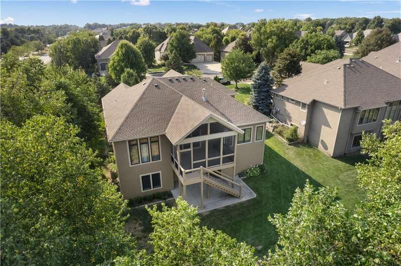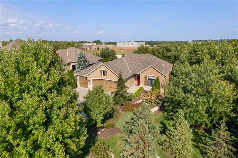 Welcome to this stunning reverse 1.5 sty home nestled in a maintenance-provided community in the heart of South Johnson County. Thoughtfully designed for comfort and accessibility. Nestled at the end of a quiet cul-de-sac this home blends high end finishes with functional design. Featuring wide hallways/doorways and zero entry master shower. Home boasts master suite plus second bedroom on main along with two full baths on main floor. The open-layout concept layout flows effortlessly, with natural light pouring into every room. A screened in porch is perfect for morning coffee or evening relaxation. Walk out lower level includes large recreation room, entertainment bar and spacious bedroom/full bath.