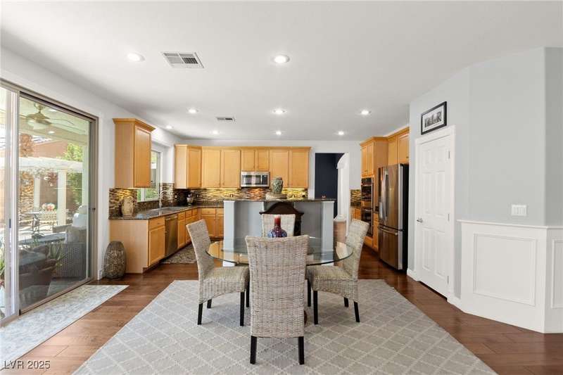 Stunning 5-bedroom, 3.5-bath home in a prime Henderson location, featuring a separate casita-style room perfect for multi-generational living, a guest suite, or pool house. The home offers a grand entrance with soaring ceilings and a striking staircase, while the primary suite includes a sitting area and private balcony. Enjoy separate family and living rooms, a spacious kitchen, a large second-floor loft, and a courtyard entry. Upgrades include a remodeled primary bath (2023, $40K), renovated upstairs bathroom, 42-inch maple cabinets, plantation shutters, engineered hardwood and tile flooring, and Anderson sliding doors upstairs. Additional features include a 75-gallon water heater, upgraded electrical panel, custom iron gates, and freshly painted interior and exterior (3 years ago). Water-smart landscaping with synthetic turf and a recently redone roof underlayment complete this thoughtfully upgraded home! Don't wait! Schedule your tour today!