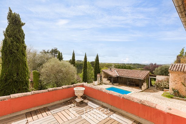 A large entrance hall, two living rooms, the kitchen and an office as well as a room dedicated to billiards. The upper floor offers six bedrooms, each with an en-suite shower room, which gives them rare comfort and perfect autonomy. The noble materials, the meticulous finishes and the open views onto the garden underline the authentic character of this residence. Outside, the landscaped park, punctuated by cypresses, cedars and various species, surrounds a generously sized swimming pool, the true heart of the property. A stone staircase leads to a raised terrace offering panoramic views of the surrounding countryside.