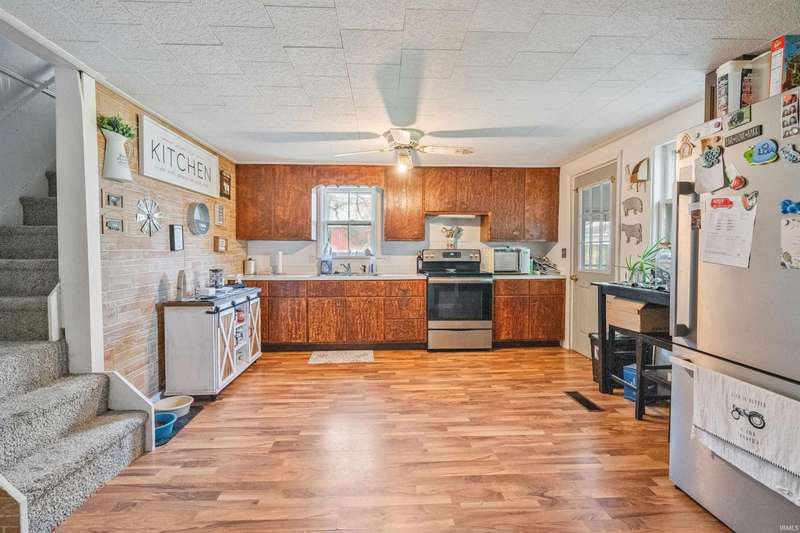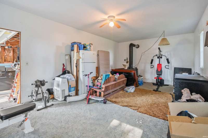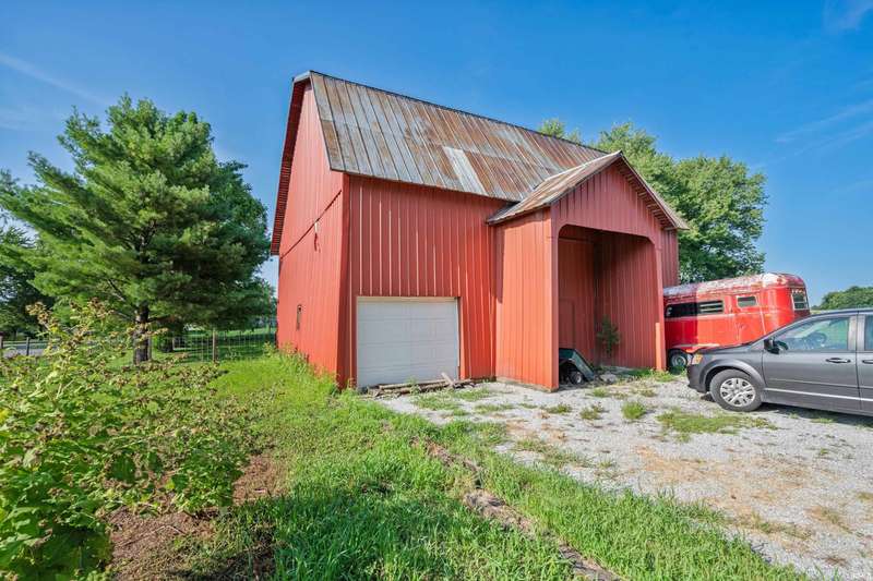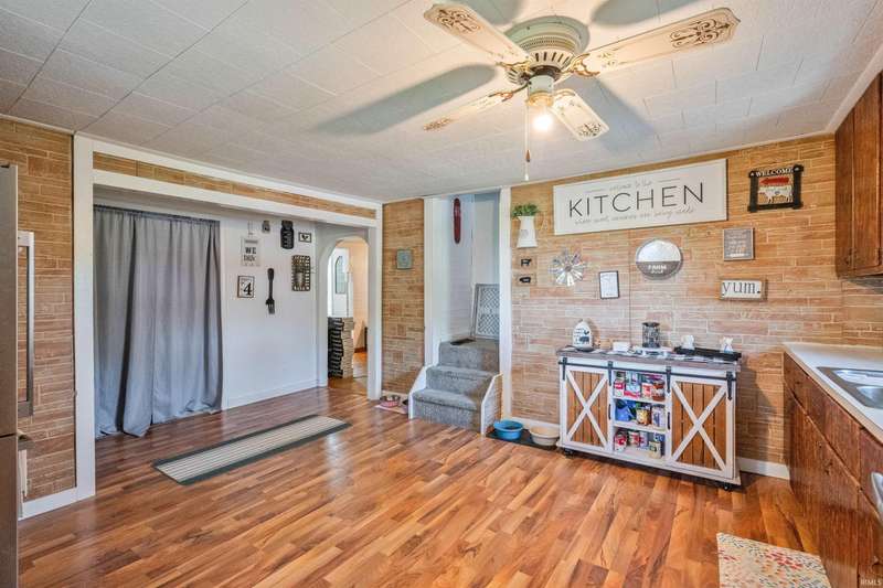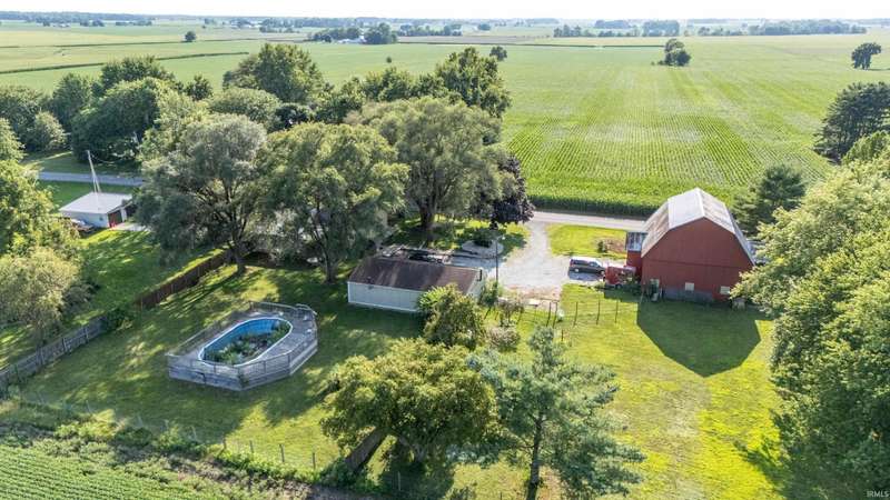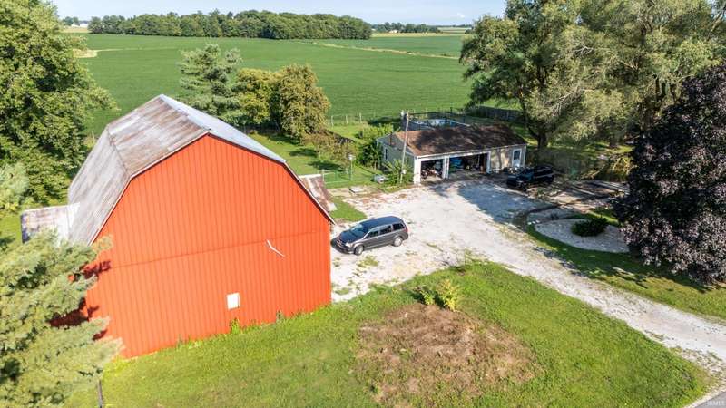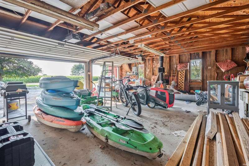 Enjoy peaceful country living on this partially wooded lot, ideally located just minutes from Kokomo and Greentown. This spacious home offers fresh interior paint and new laminate flooring in the kitchen, blending modern updates with rustic charm. You'll fall in love with the stunning steel Amish barn, built in 1920 and still in excellent condition—perfect for storage, hobbies, or future projects. Most rooms in the home are generously sized, and the convenient main-floor laundry room adds to the ease of daily living. The oversized 3-car garage features an attached finished 13x25 recreation room complete with a cozy wood-burning stove—ideal for year-round entertaining or a home gym. Step outside to your private backyard retreat with a privacy fence, making for great summer fun and relaxation.