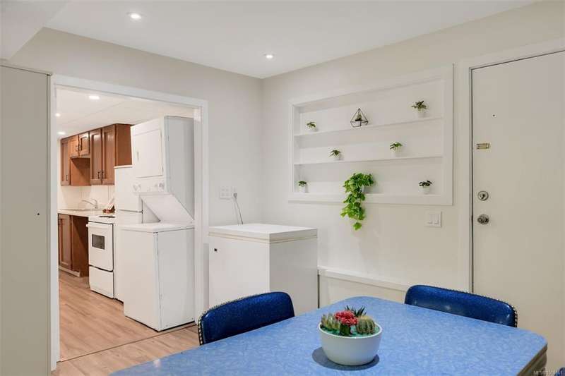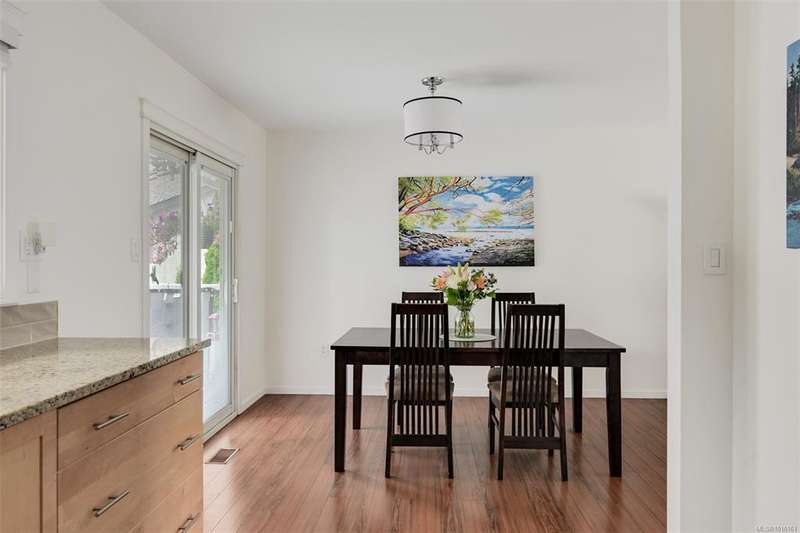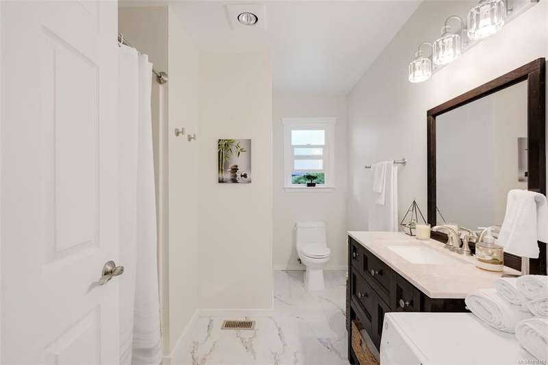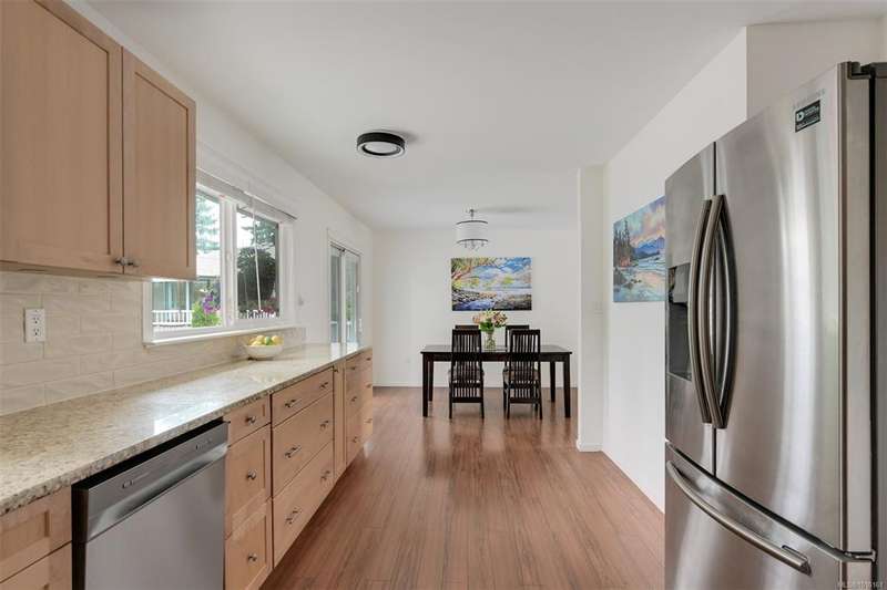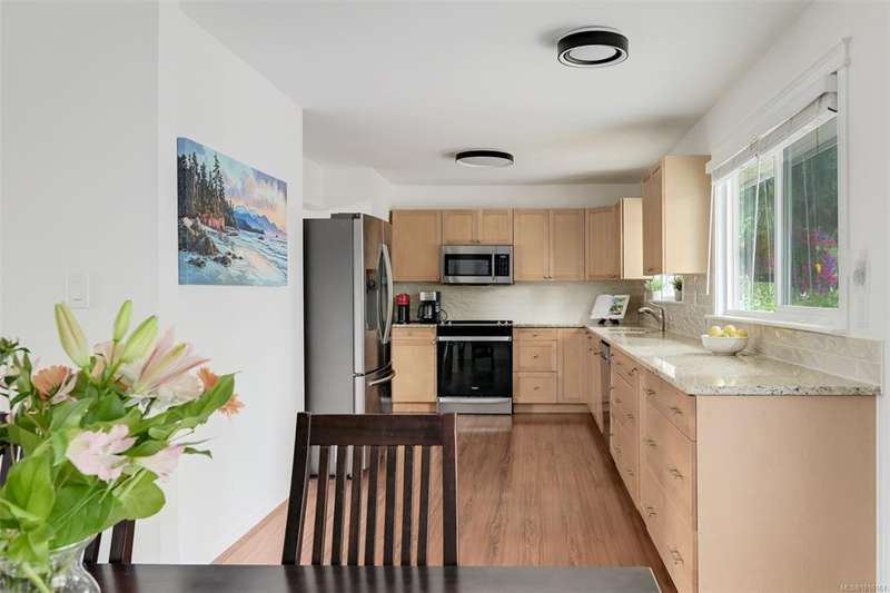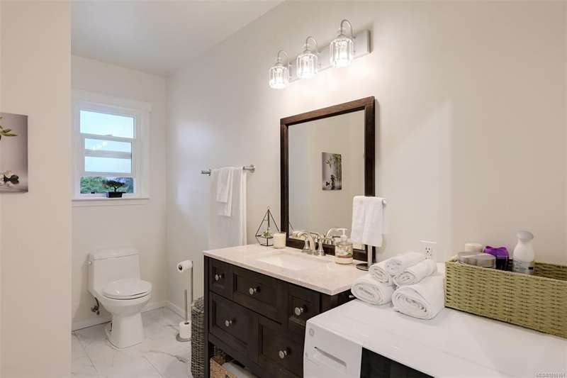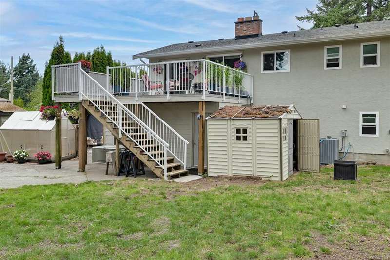 Welcome home to this distinguished residence set on 7,810 sq. ft. property in the heart of Colwood. Spanning more than 2,400 sq. ft., this home has been thoughtfully renewed to balance modern comfort with timeless charm. Inside, you’ll find refined finishes including newer flooring, custom trim, and tastefully reimagined bathrooms. High-value upgrades such as a 200-amp electrical service, efficient gas furnace and central air conditioning ensure everyday ease. The lower level features elegant in-law accommodation with private entry, laundry, and storage, anchored by a classic wood-burning fireplace that adds warmth and character. Outdoors, the fully fenced grounds offer a greenhouse, shed, and sprinkler system, complemented by a sun-drenched deck ideal for entertaining or quiet retreat. Close to schools, shops, and parks, this move-in ready property blends sophistication, practicality and location an exceptional opportunity in one of Colwood’s most desirable settings.